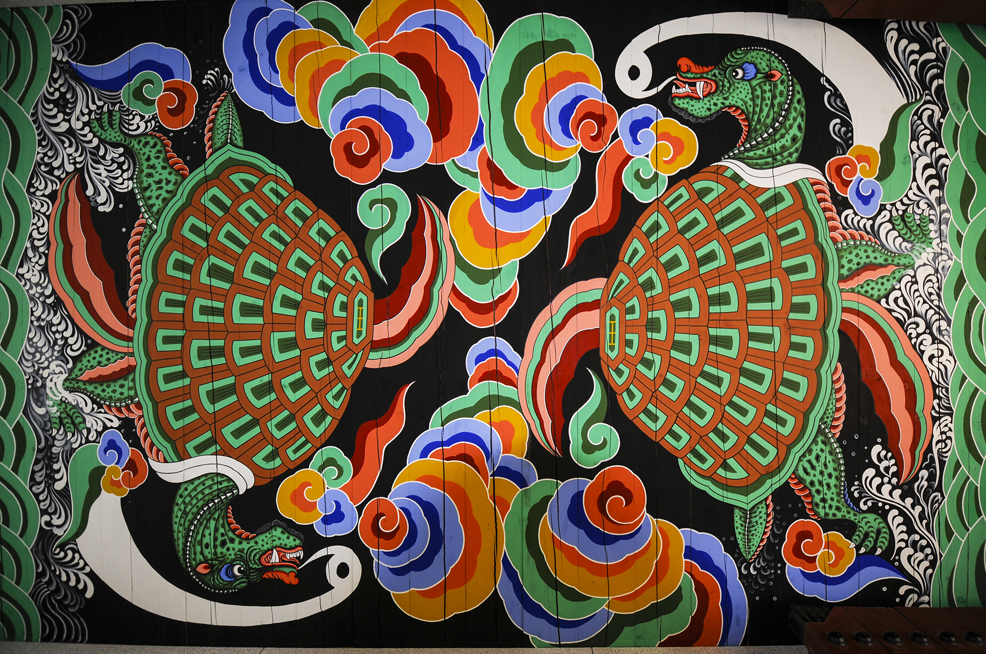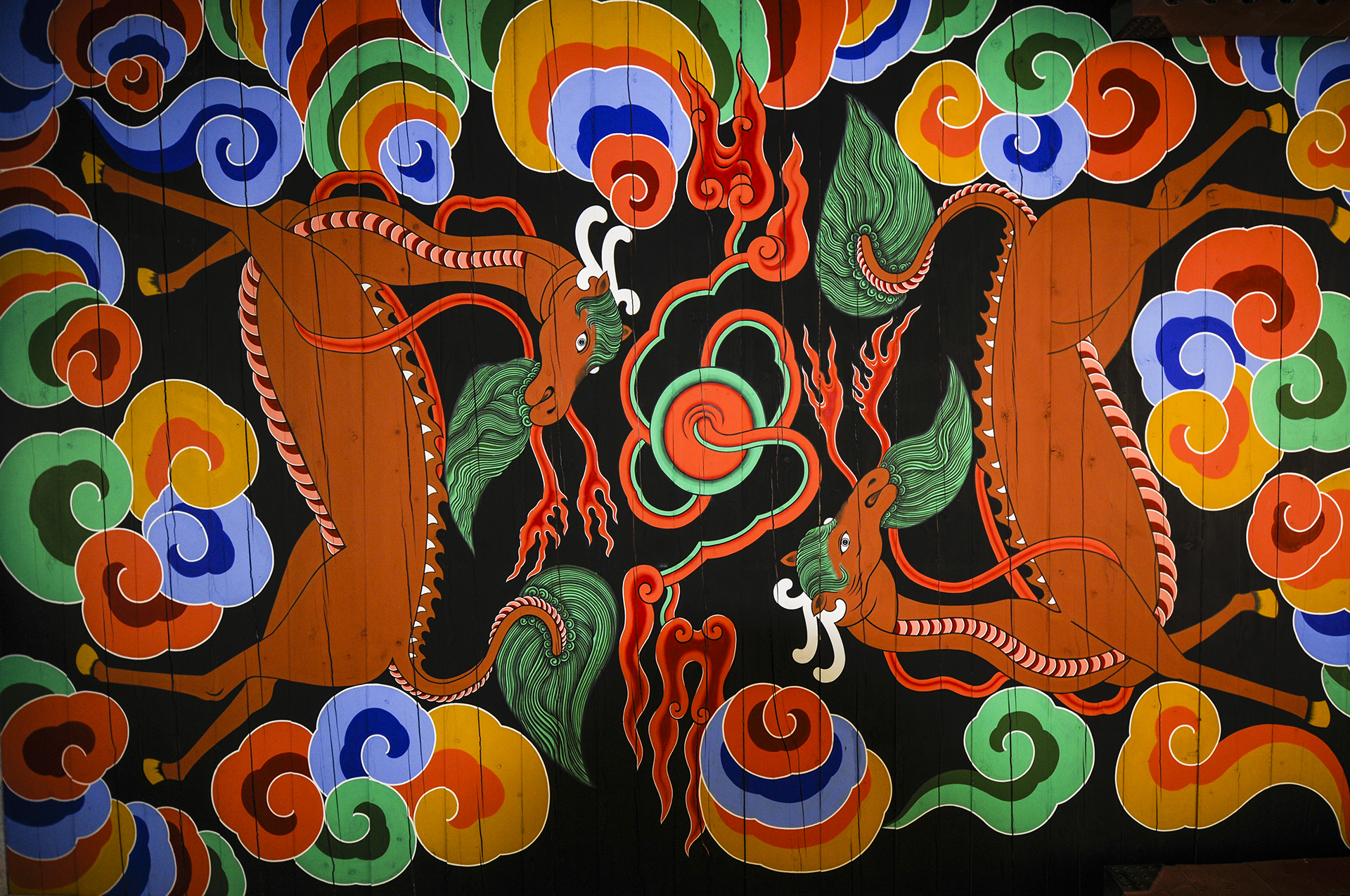 광화문 좌우의 홍예문 천정에도 그려져 있는데, 왼쪽 홍예문에는 거북을, 오른쪽 홍예문에는 천마를 그려 넣었다.