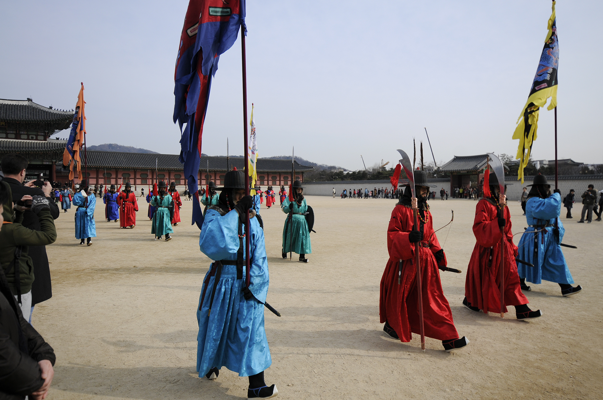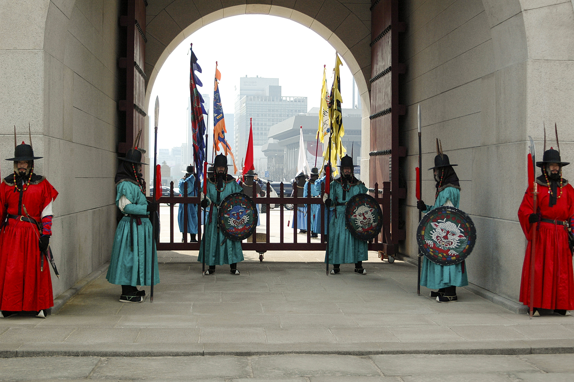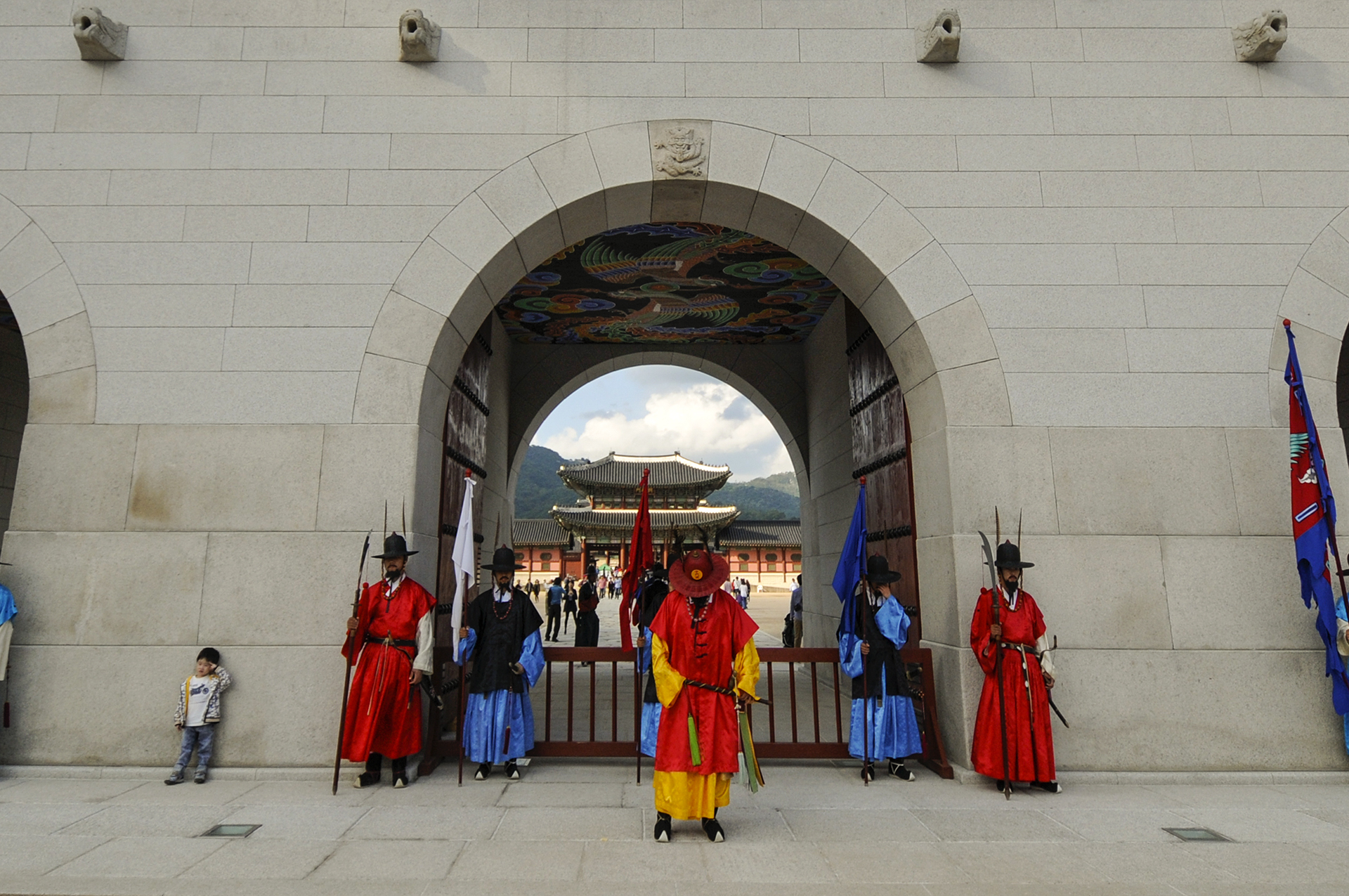 수문군사들이 궁문을 지키는게 임무라고는 하지만 이것도 일종의 이벤트인데, 관람객들이 옆에서서 팔짱을 끼고, 사진을 찍고, 근거리에서 카메라를 들이대도 꿈쩍도 하지 않는다. 그들의 노고에 박수를 보내고 싶다.