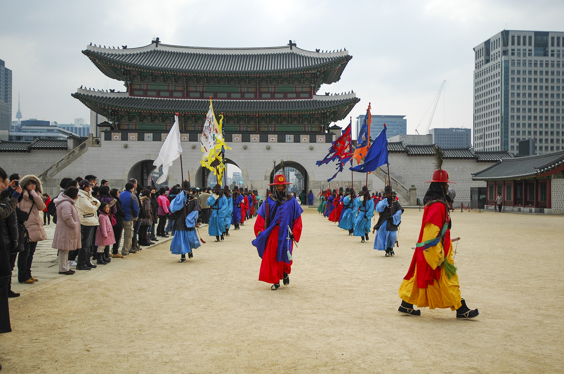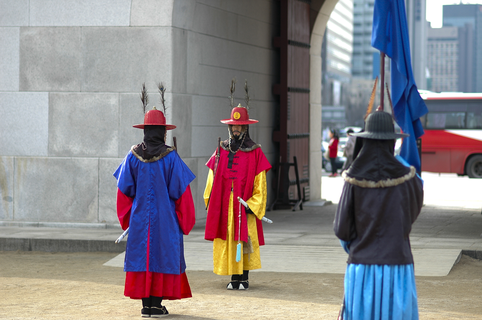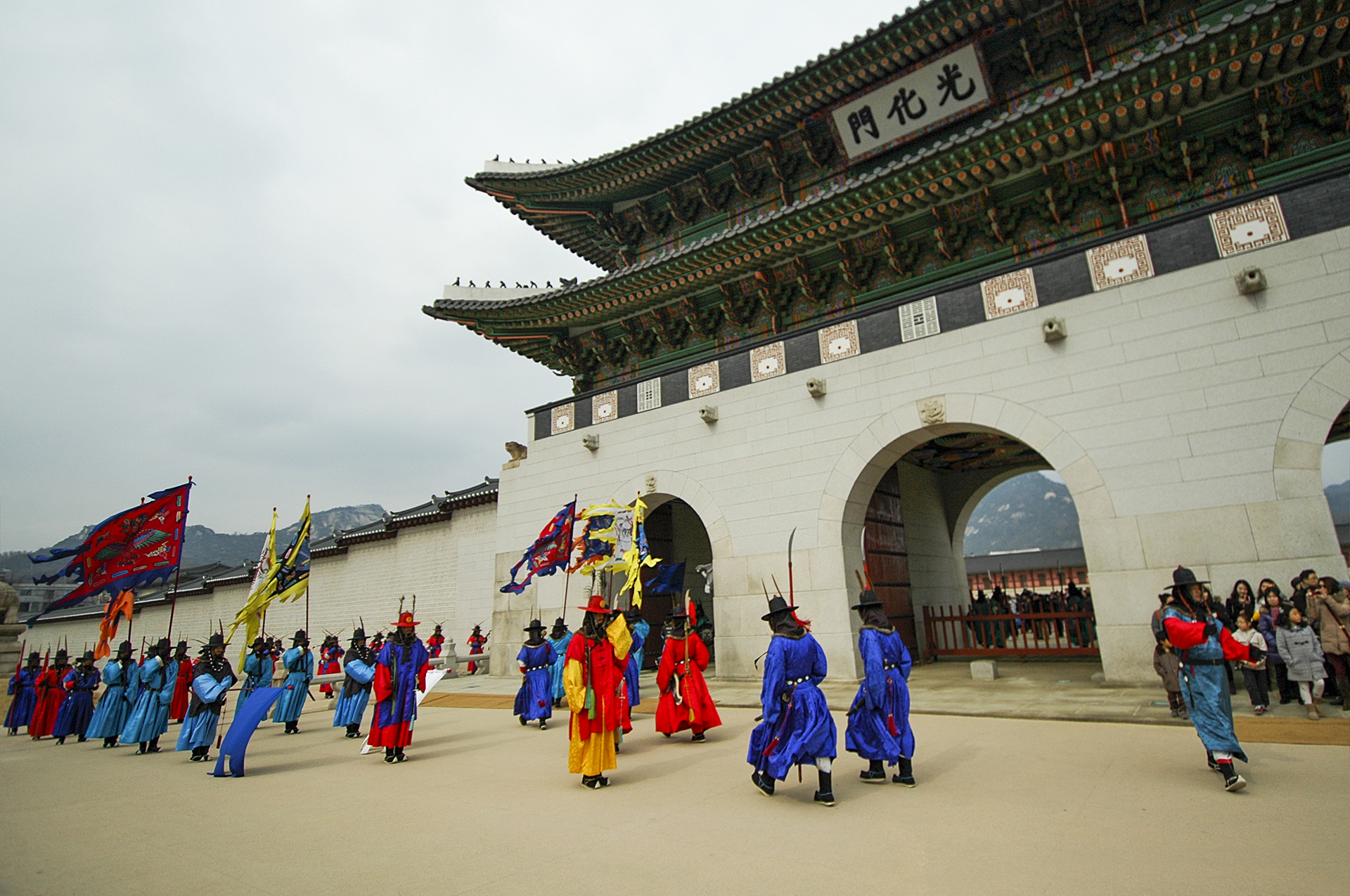 수문군사들이 궁문을 지키는게 임무라고는 하지만 이것도 일종의 이벤트인데, 관람객들이 옆에서서 팔짱을 끼고, 사진을 찍고, 근거리에서 카메라를 들이대도 꿈쩍도 하지 않는다. 그들의 노고에 박수를 보내고 싶다.