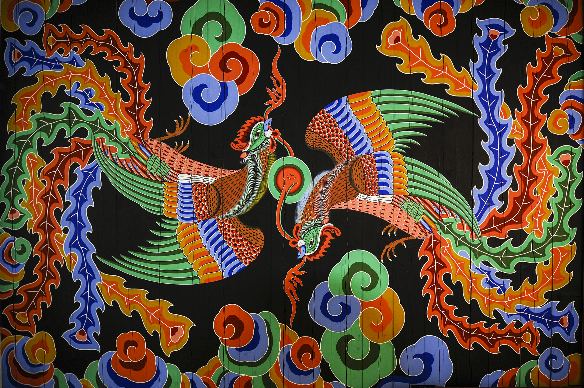 근정전의 것처럼 이것도 봉황인지는 잘모르겠다. 주위에는 당초문을 그려넣었다.