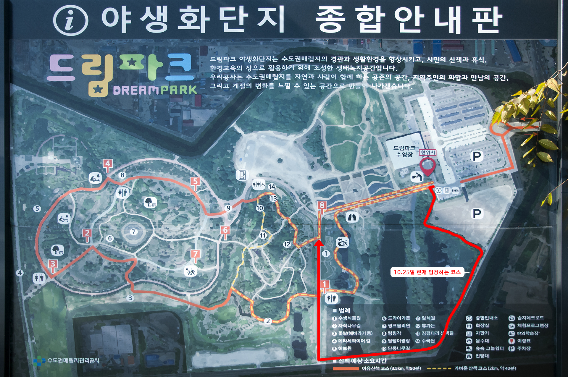 찾아가는 방법은 네비에 주소를 직접 검색하거나 드림파크 야생화단지를 찍으면 드림파크 스포츠센터 앞 넓은 주차장에 도착하게 된다.