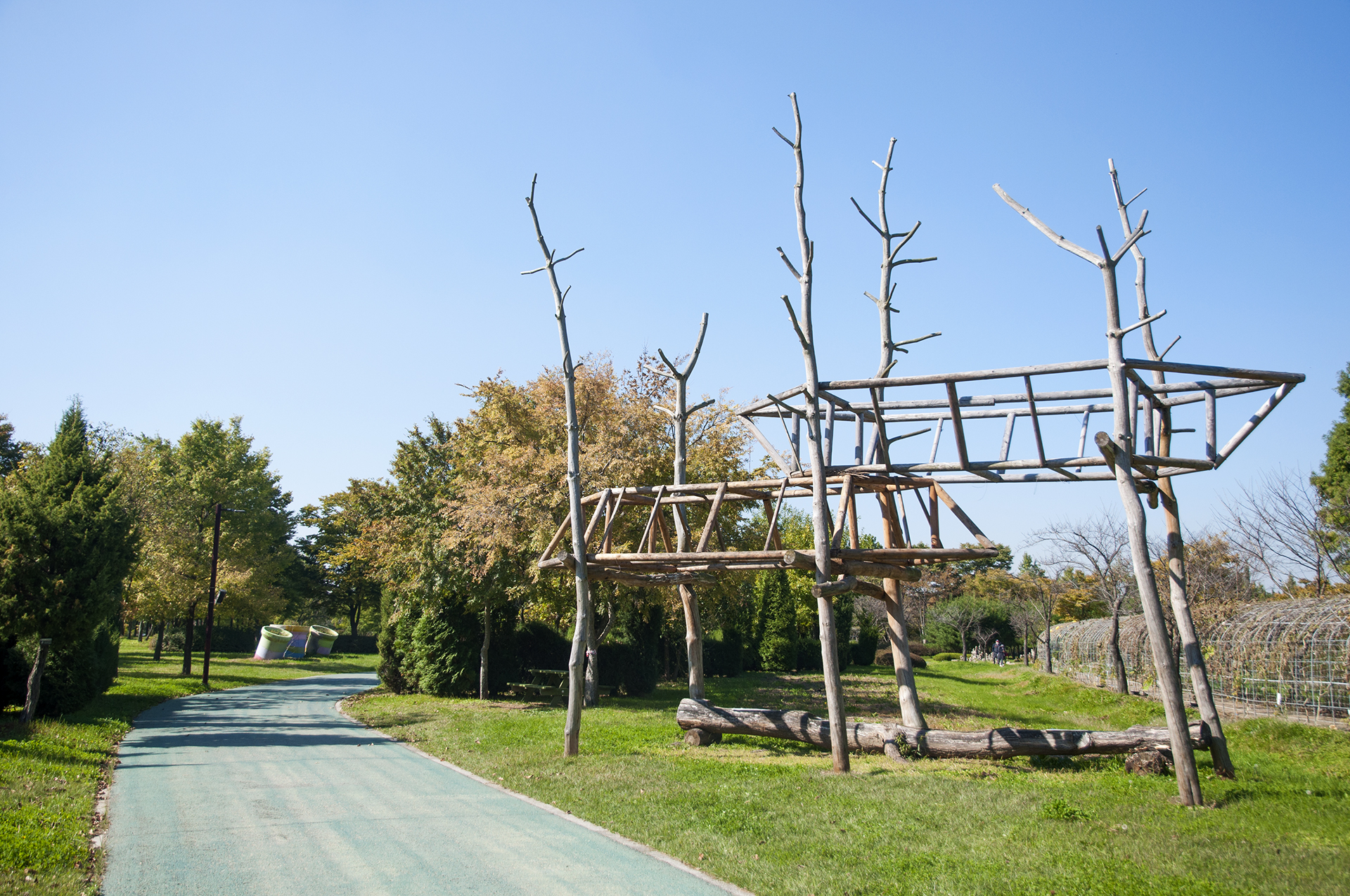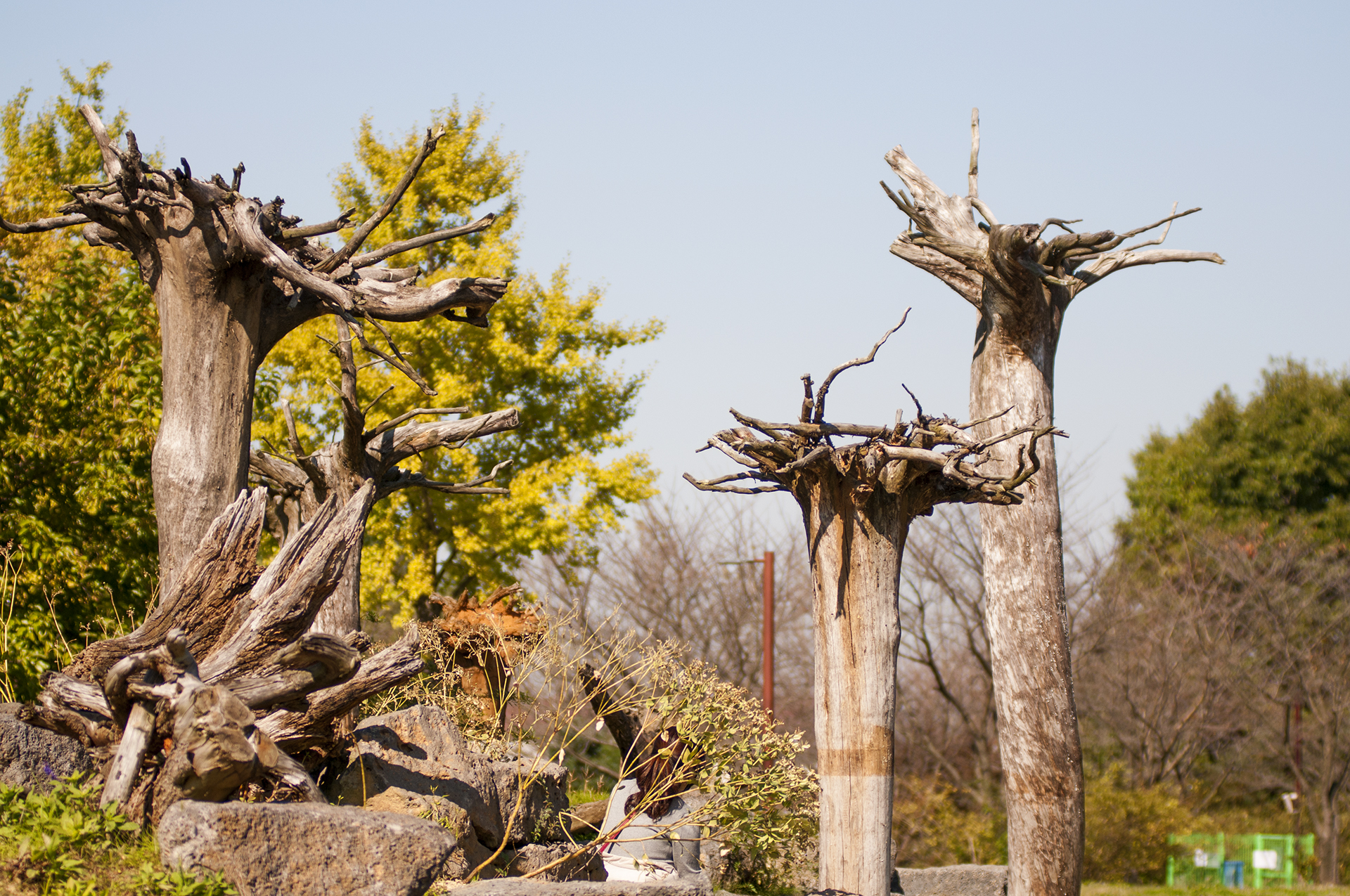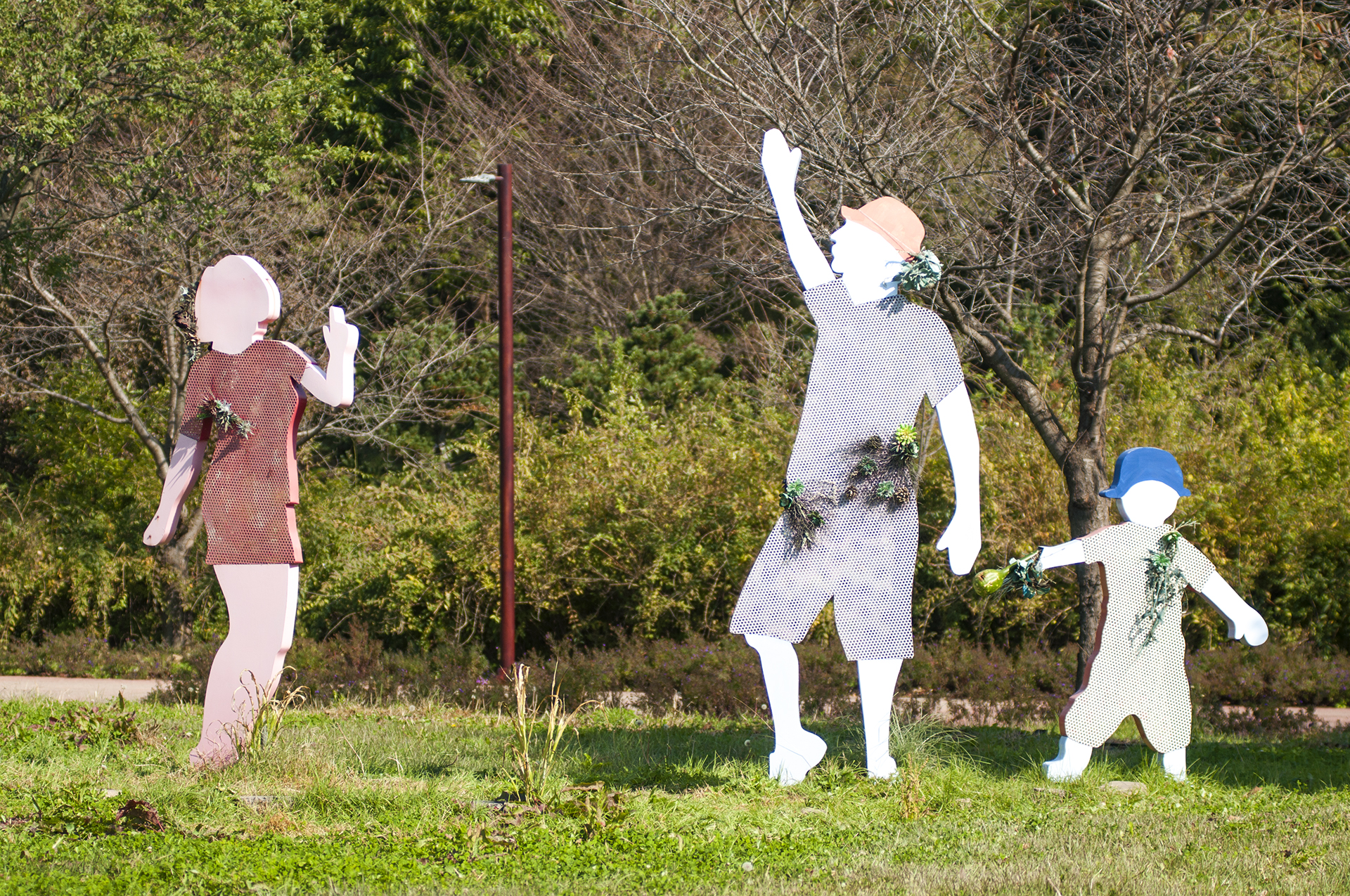 뿌리채 뽑혀진 나무들을 활용하여 만든 작품으로, 이 나무들은 태풍 '링링'의 피해를 입은 수목이라고 한다.