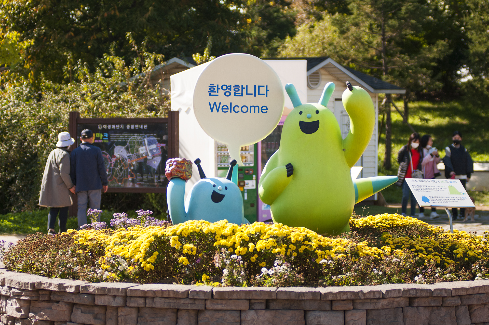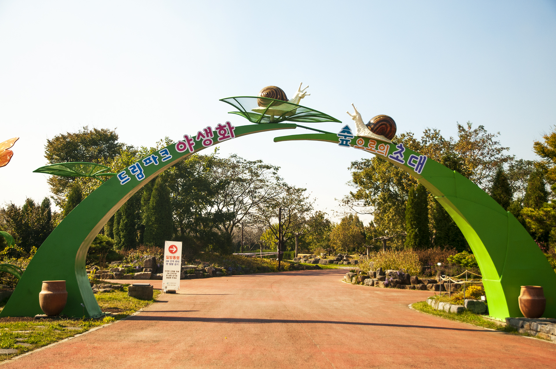 달팽이 두마리가 반겨주는 야생화단지 달팽이광장