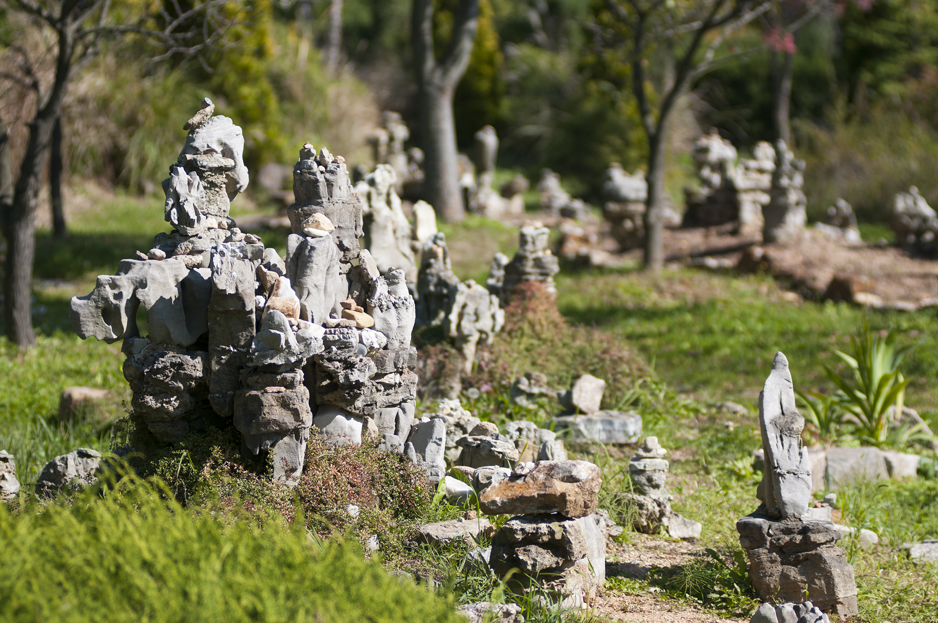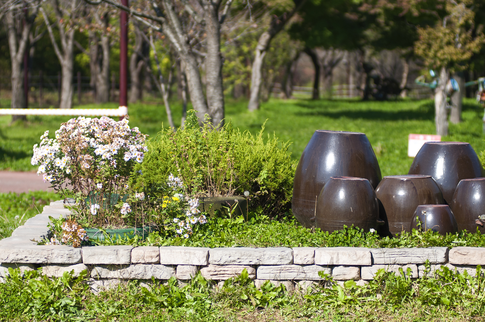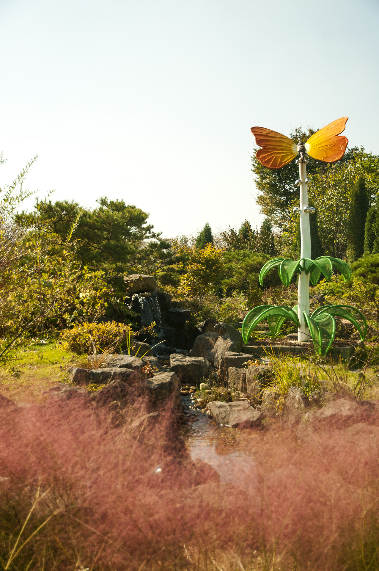 아치 양쪽에는 작은 계곡을 만들고 야생화와 소나무가 멋을 더해준다.