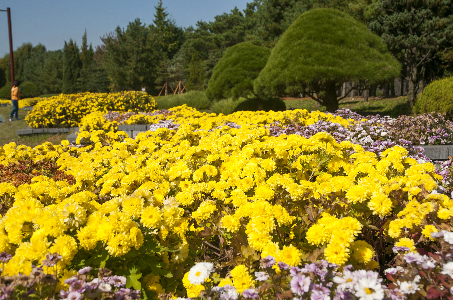 걷다보니 도착하게 된곳, 형형색색의 국화꽃이 다양하게 심어져 있다.