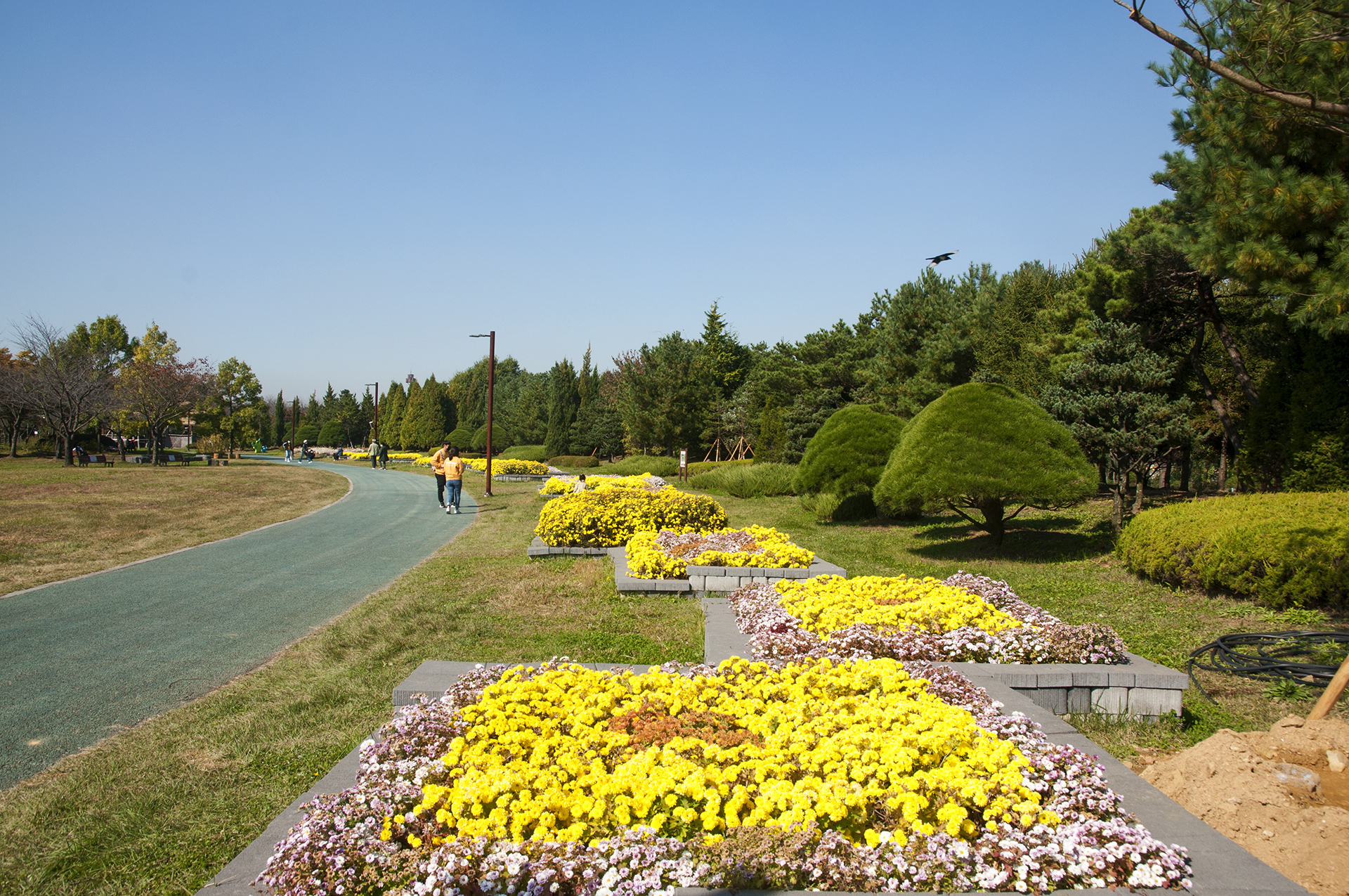 반대쪽에는 국화들이 예쁜길을 만들어준다.