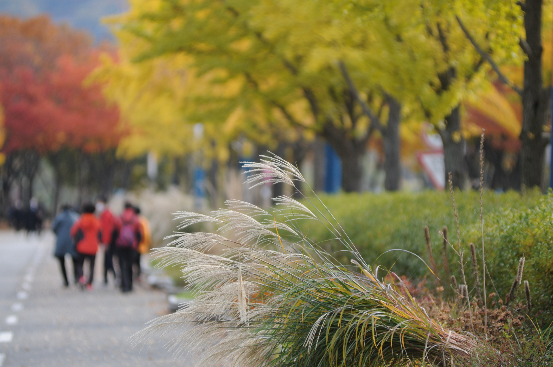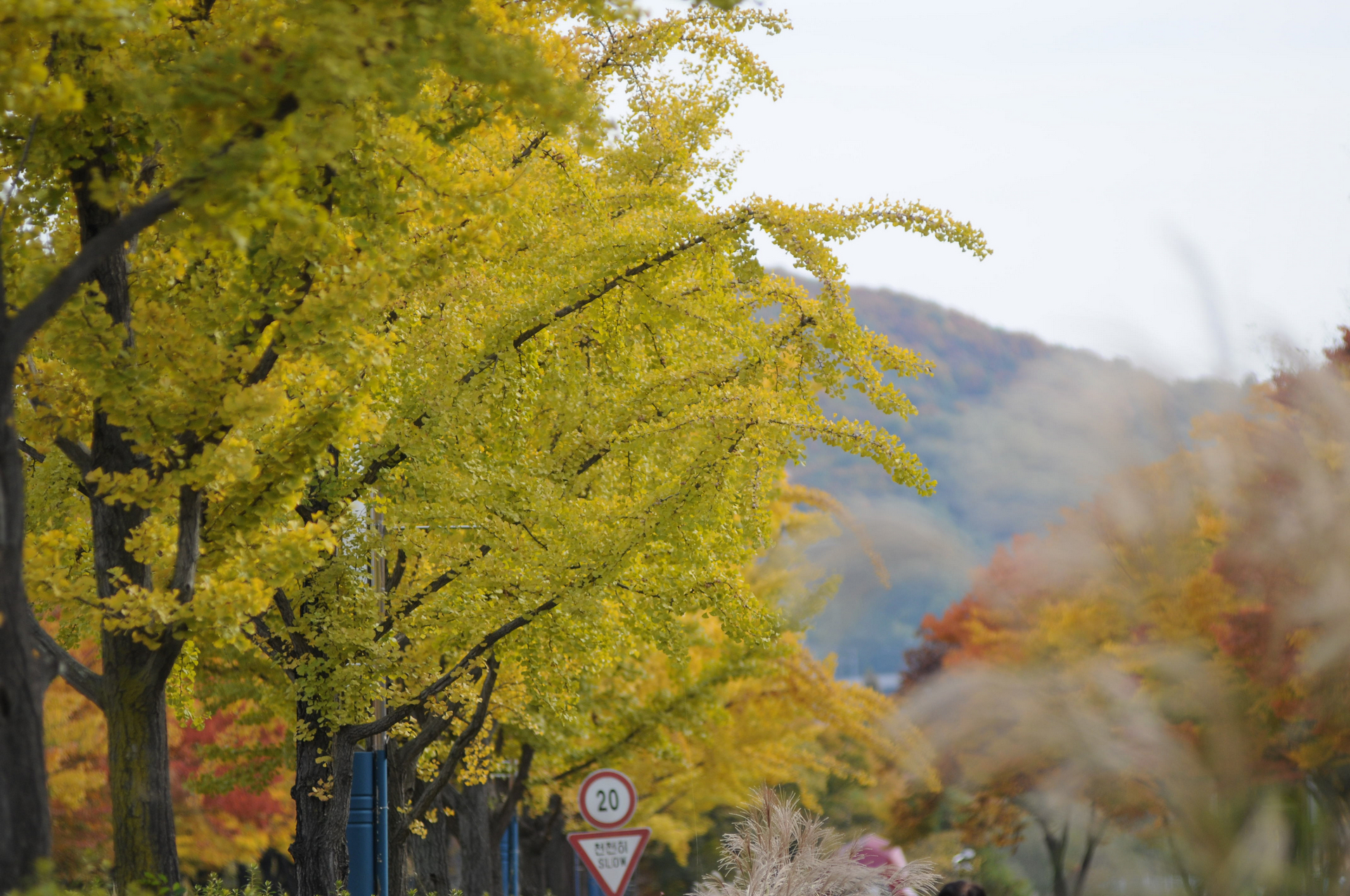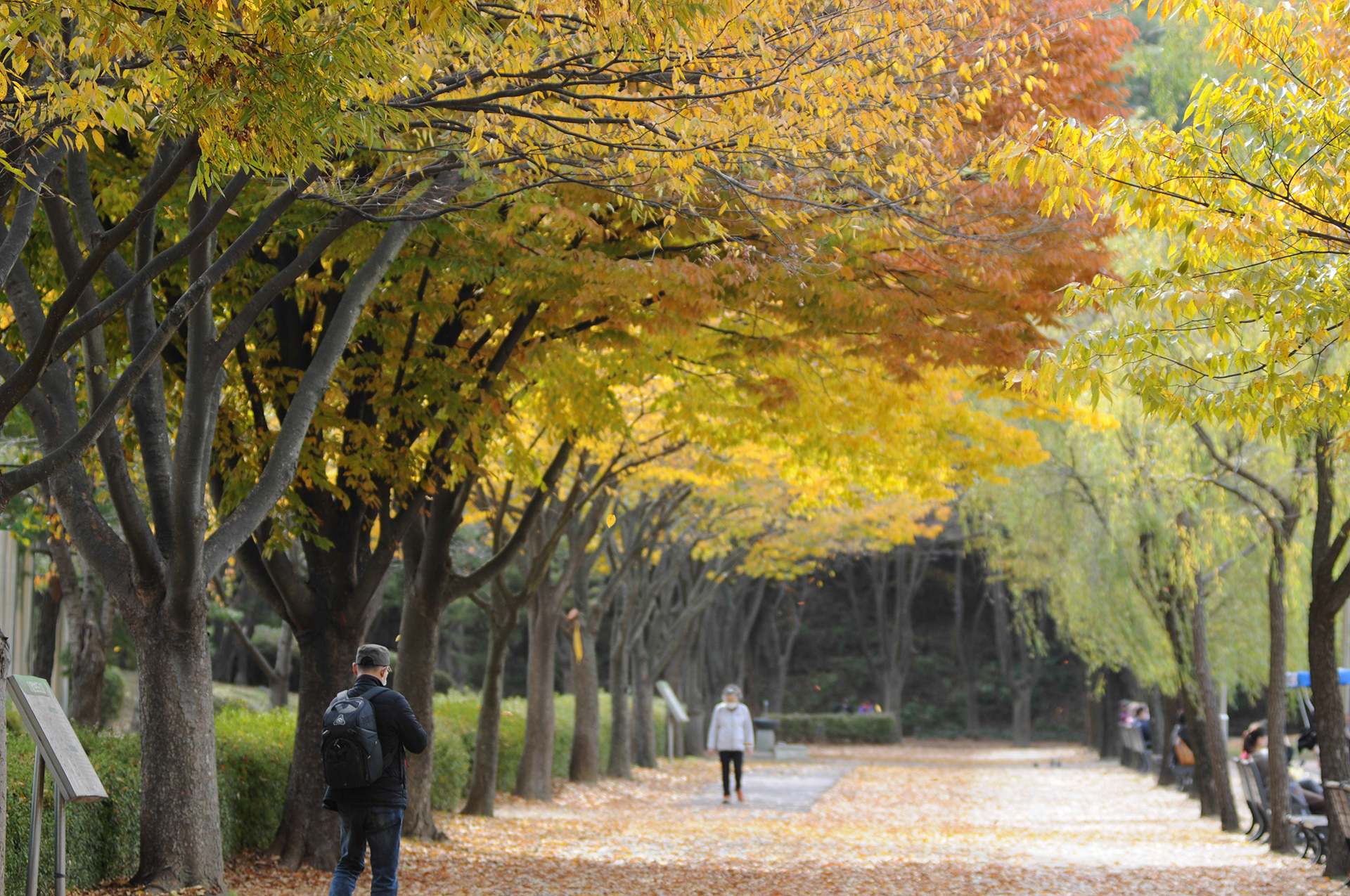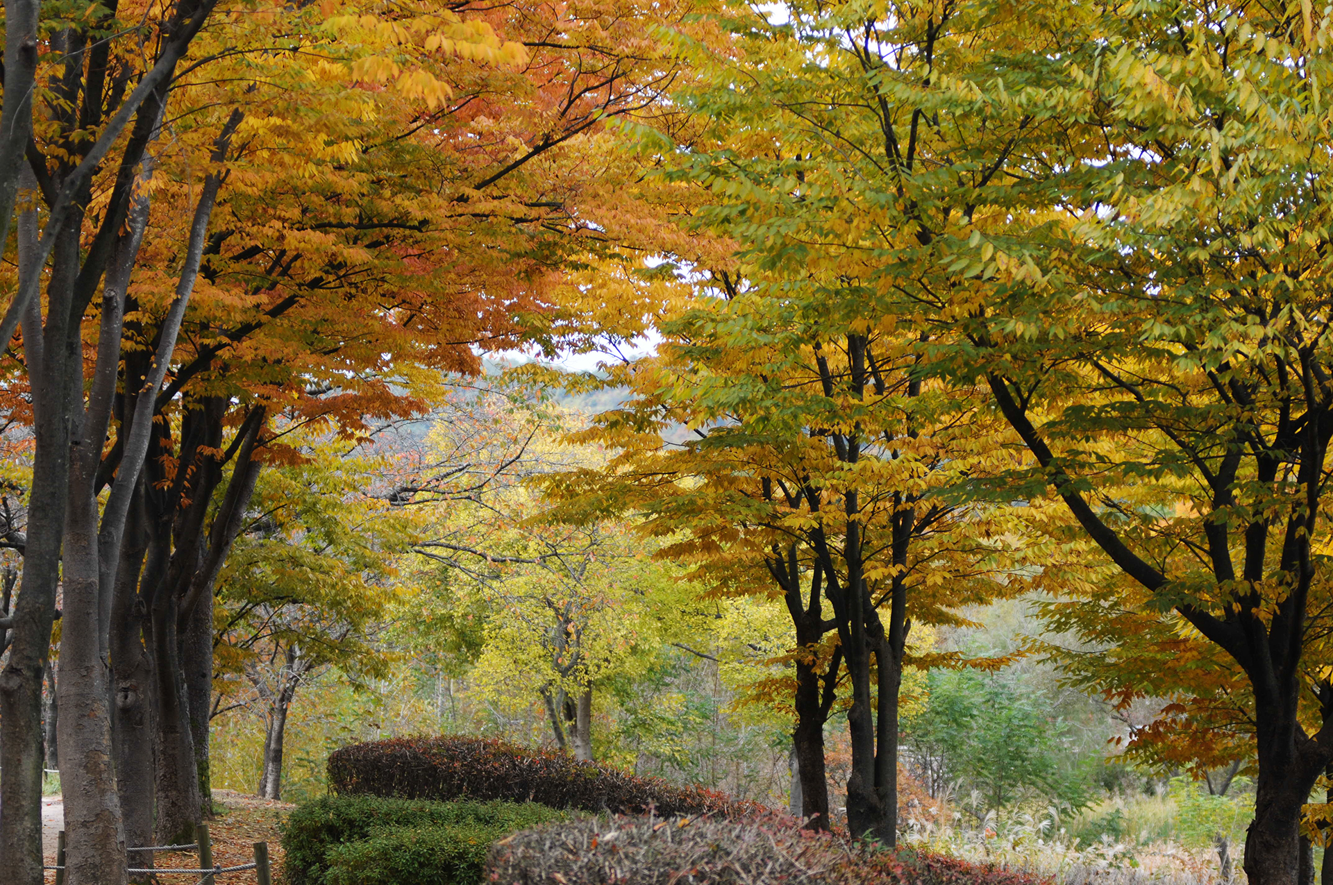 입구에서부터 은행나무는 노랗게 물이 들었고, 느티나무는 노랑과 빨강이 한데 어울려 멋스러운 길을 만들어 준다.