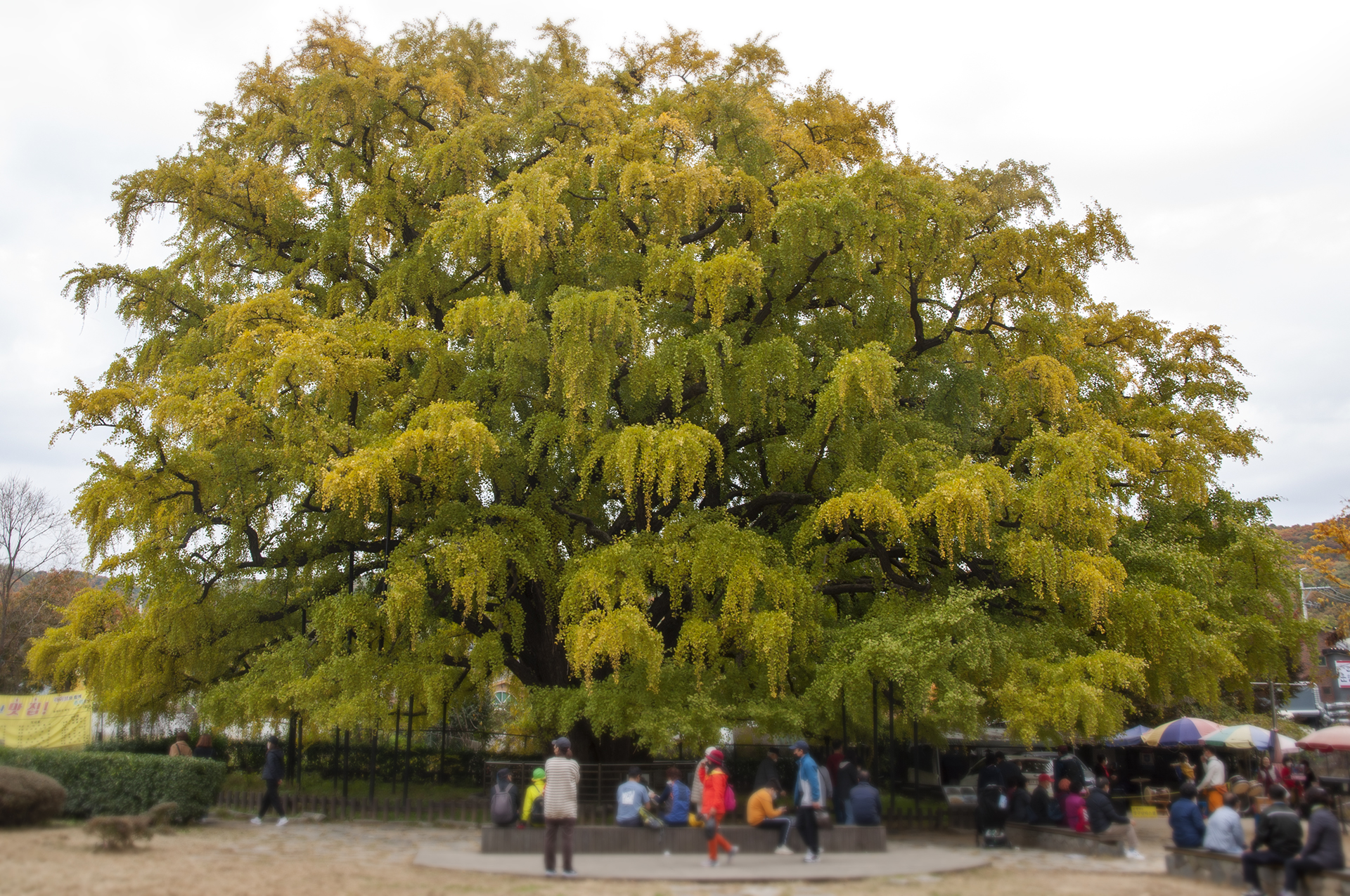 인천대공원 어울정원쪽 동문주차장으로 나가면 천연기념물인 장수동 은행나무가 있는데, 아직 물이 들지는 않았다.