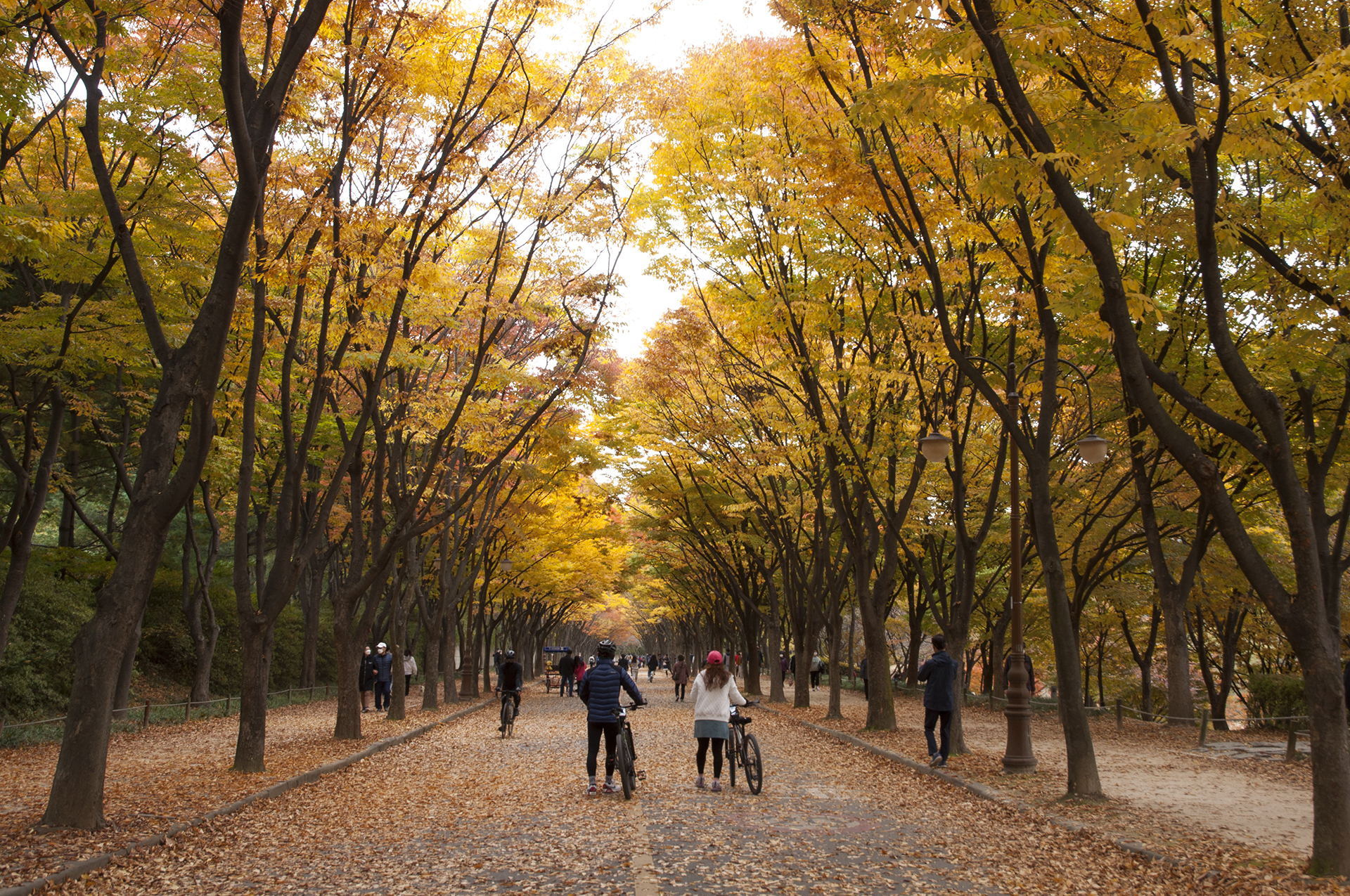 자전거 타던 커플도 잠시 내려 가을길을 걸어보고 있다.