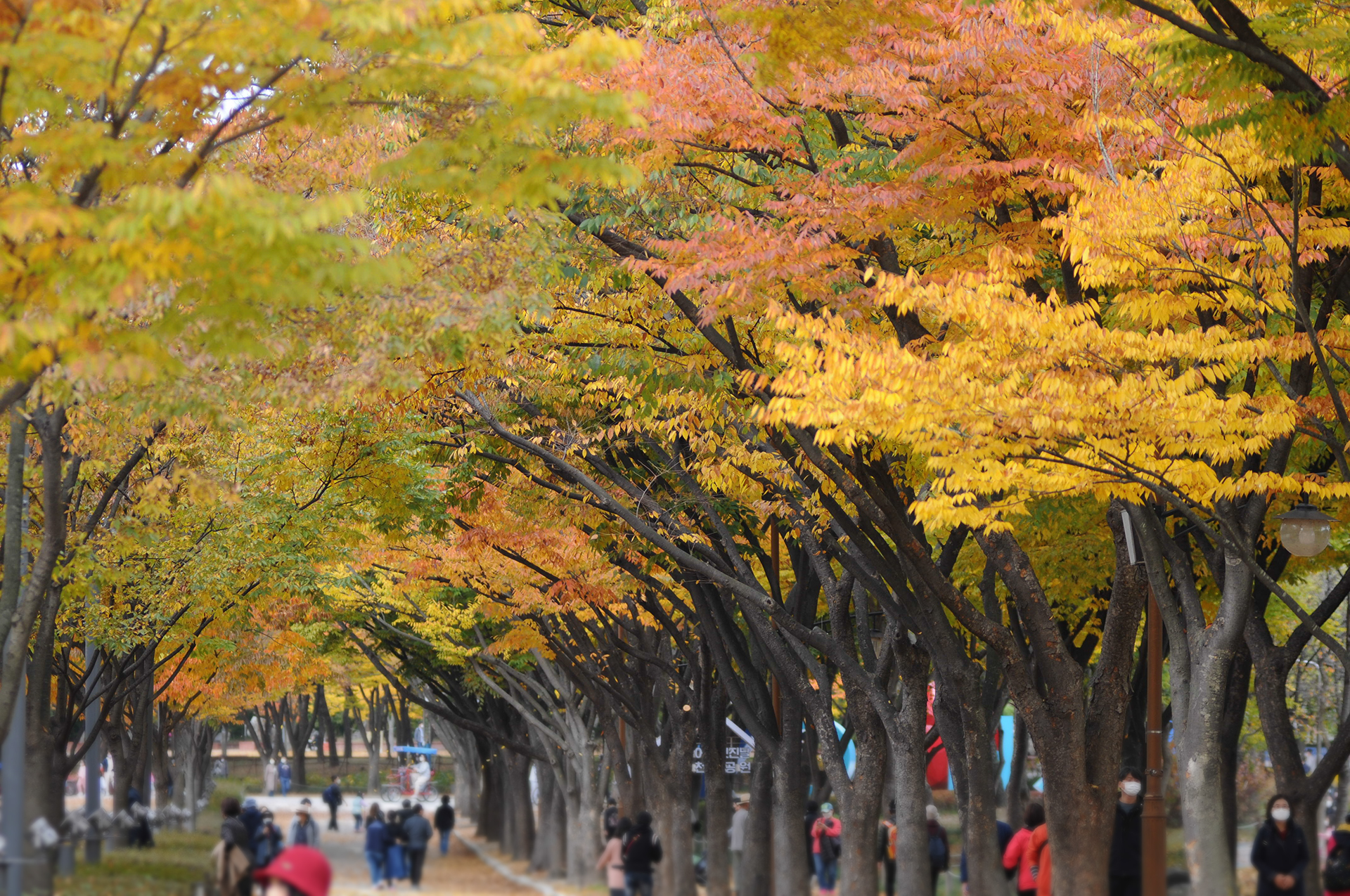 올해는 이상기후로 단풍이 들기도 전에 낙엽이 되어 떨어지거나 썩은것처럼 못난 단풍들을 많이 봤는데 인천대공원의 느티나무는 가을색을 제대로 보여주고 있다.