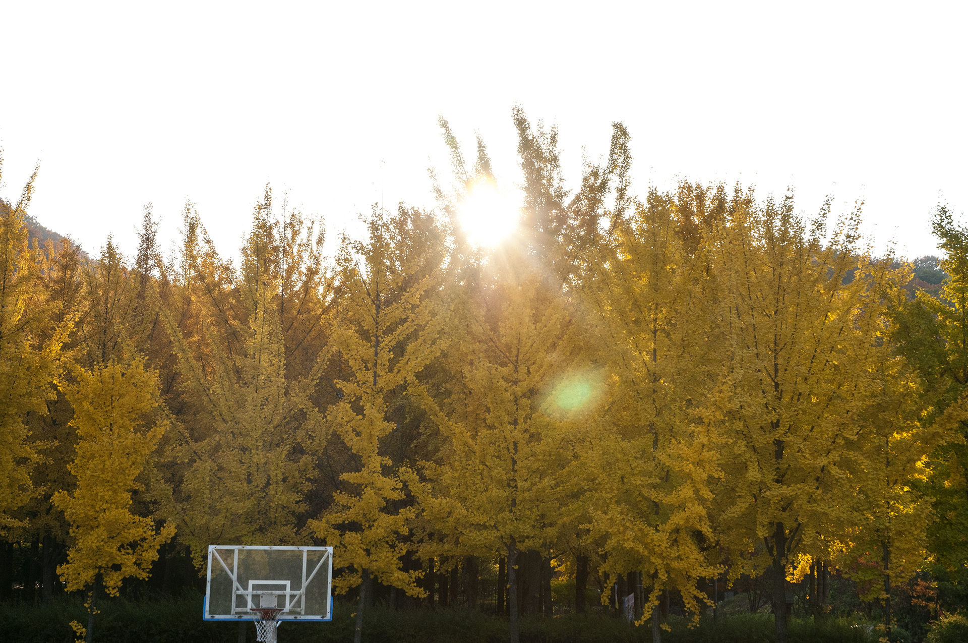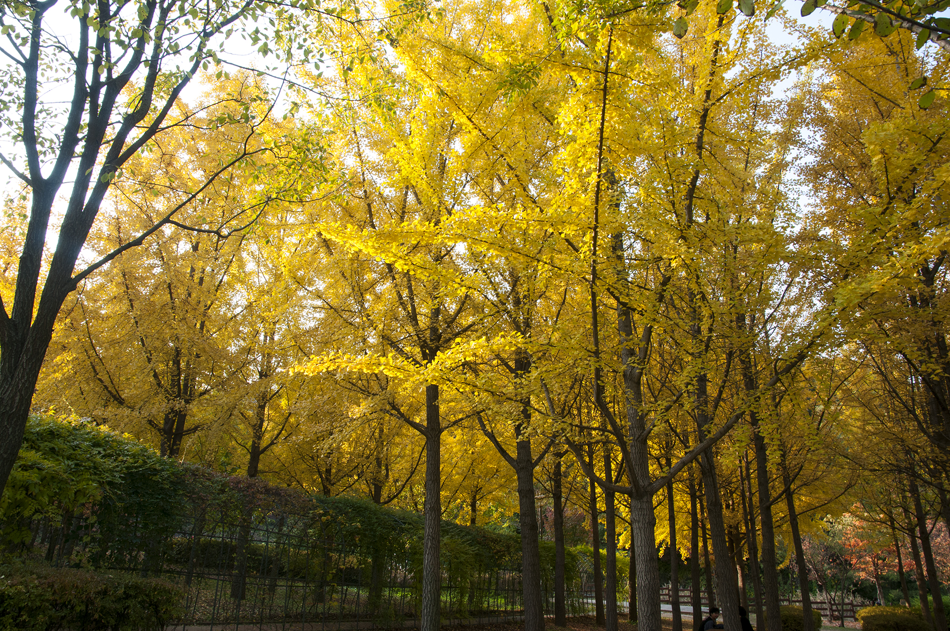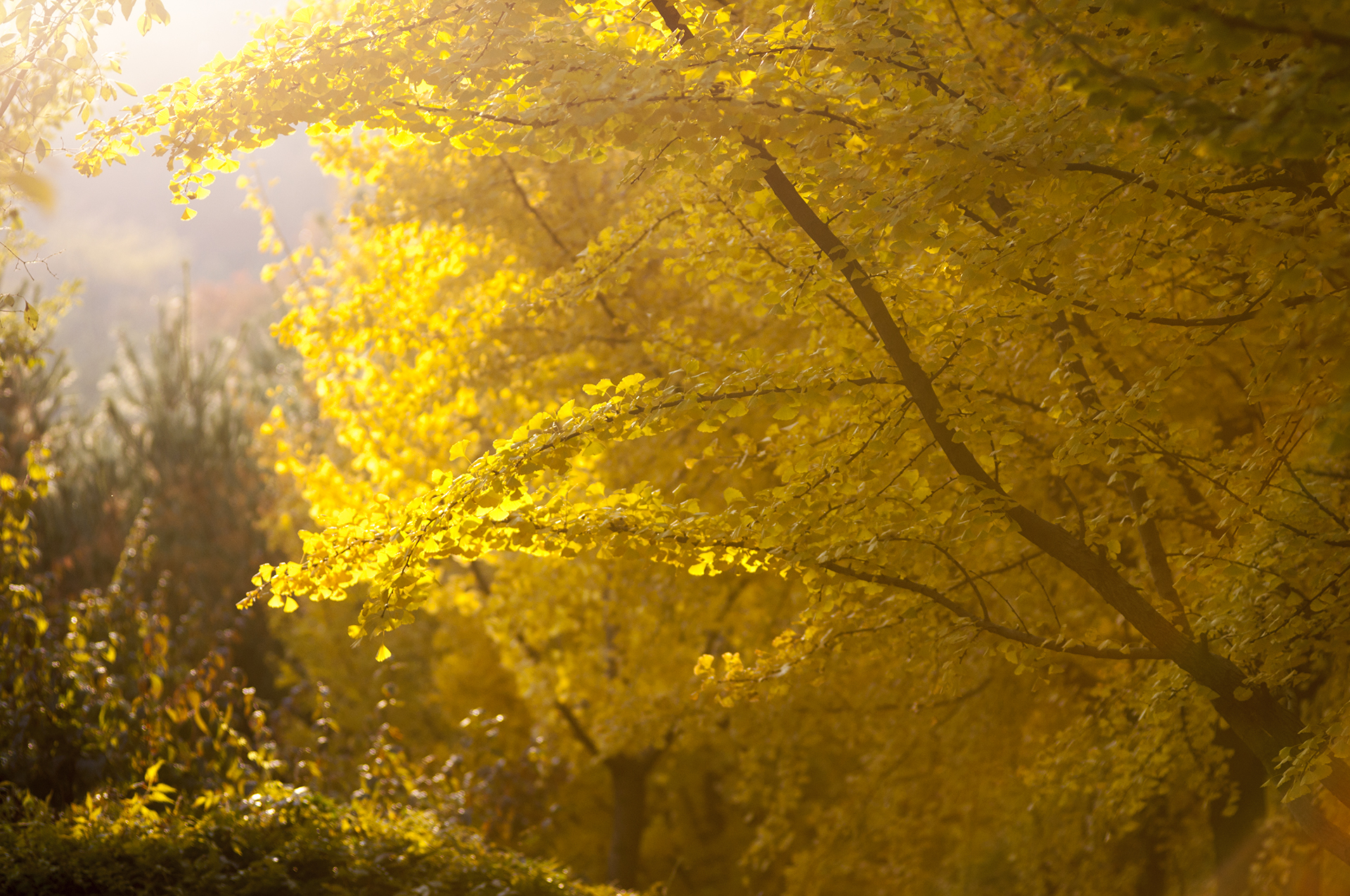 흐린 하늘을 뚫고 햇빛이 쏟아지면 은행나무는 빛이 난다.