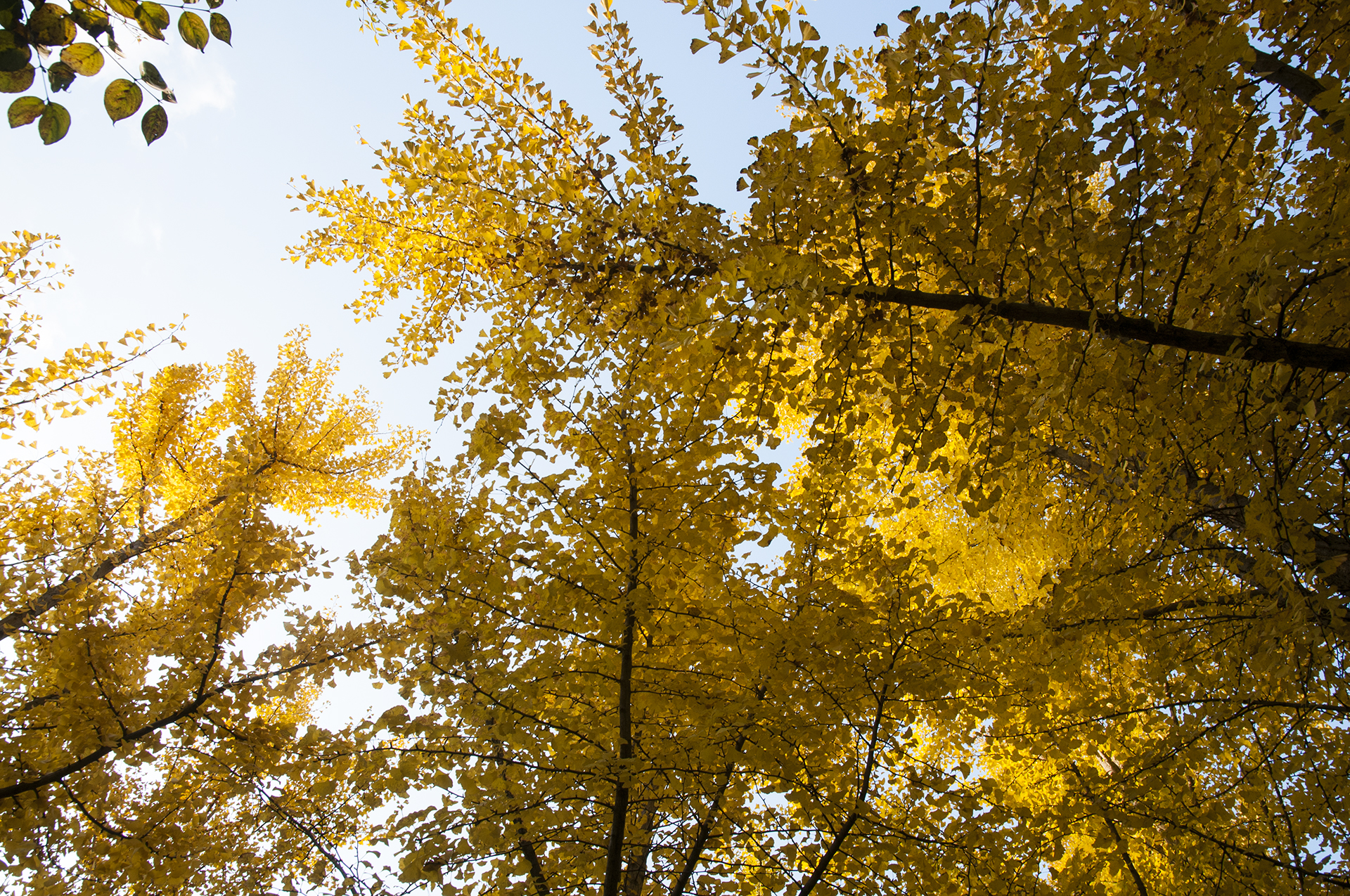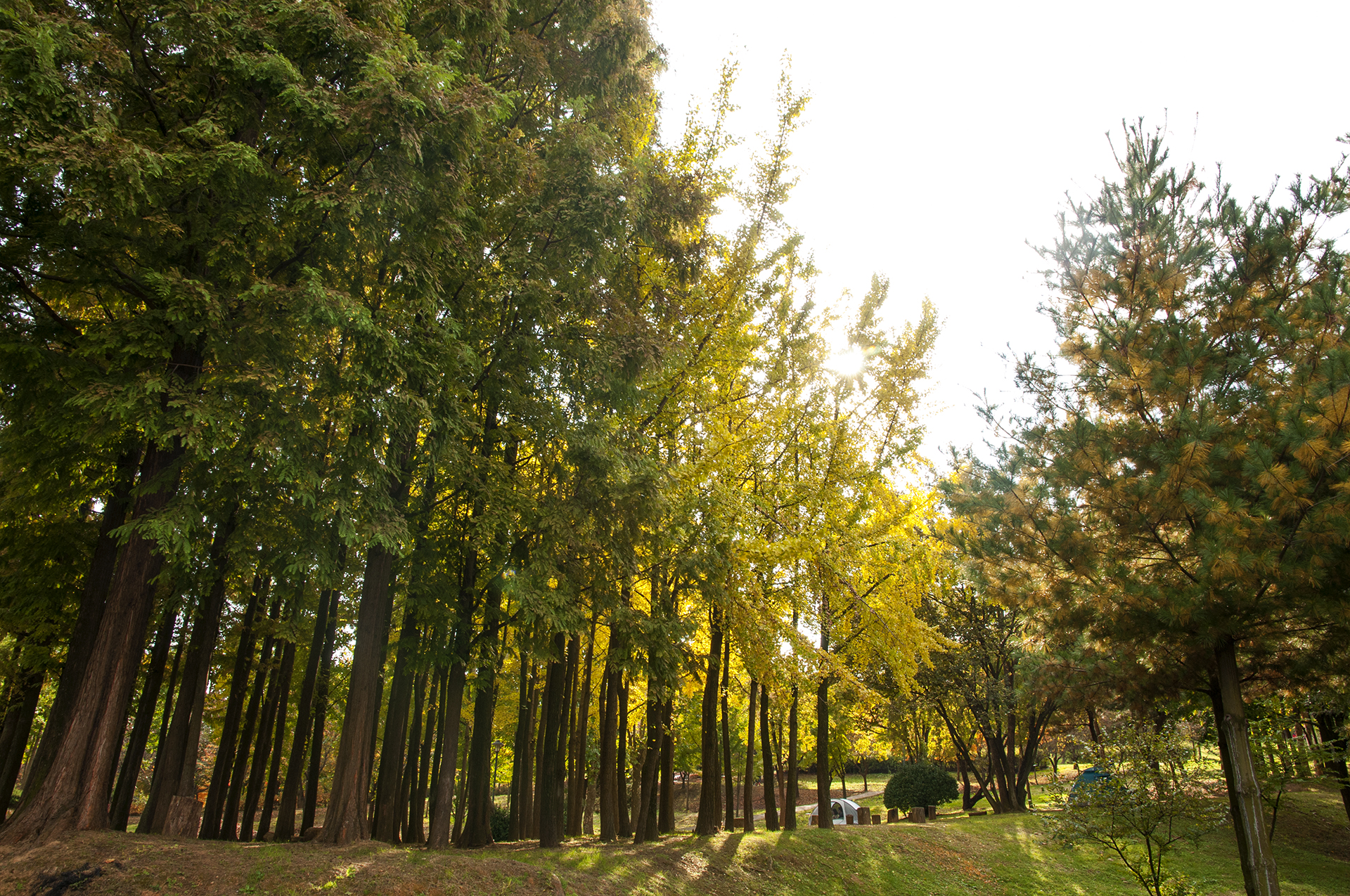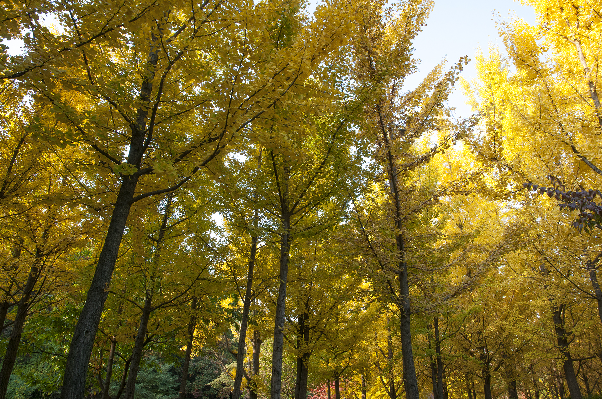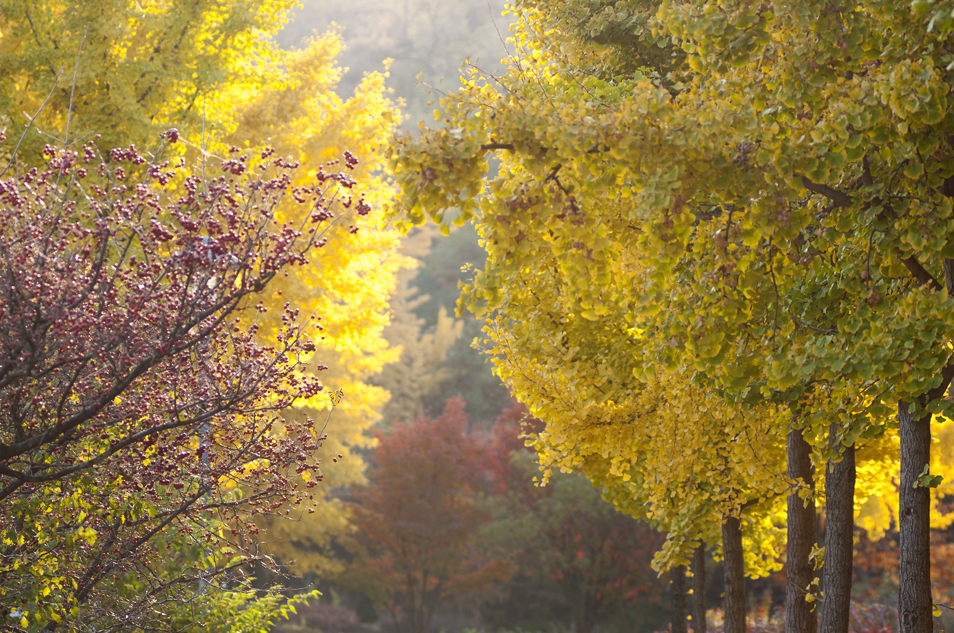 흐린 하늘을 뚫고 햇빛이 쏟아지면 은행나무는 빛이 난다.