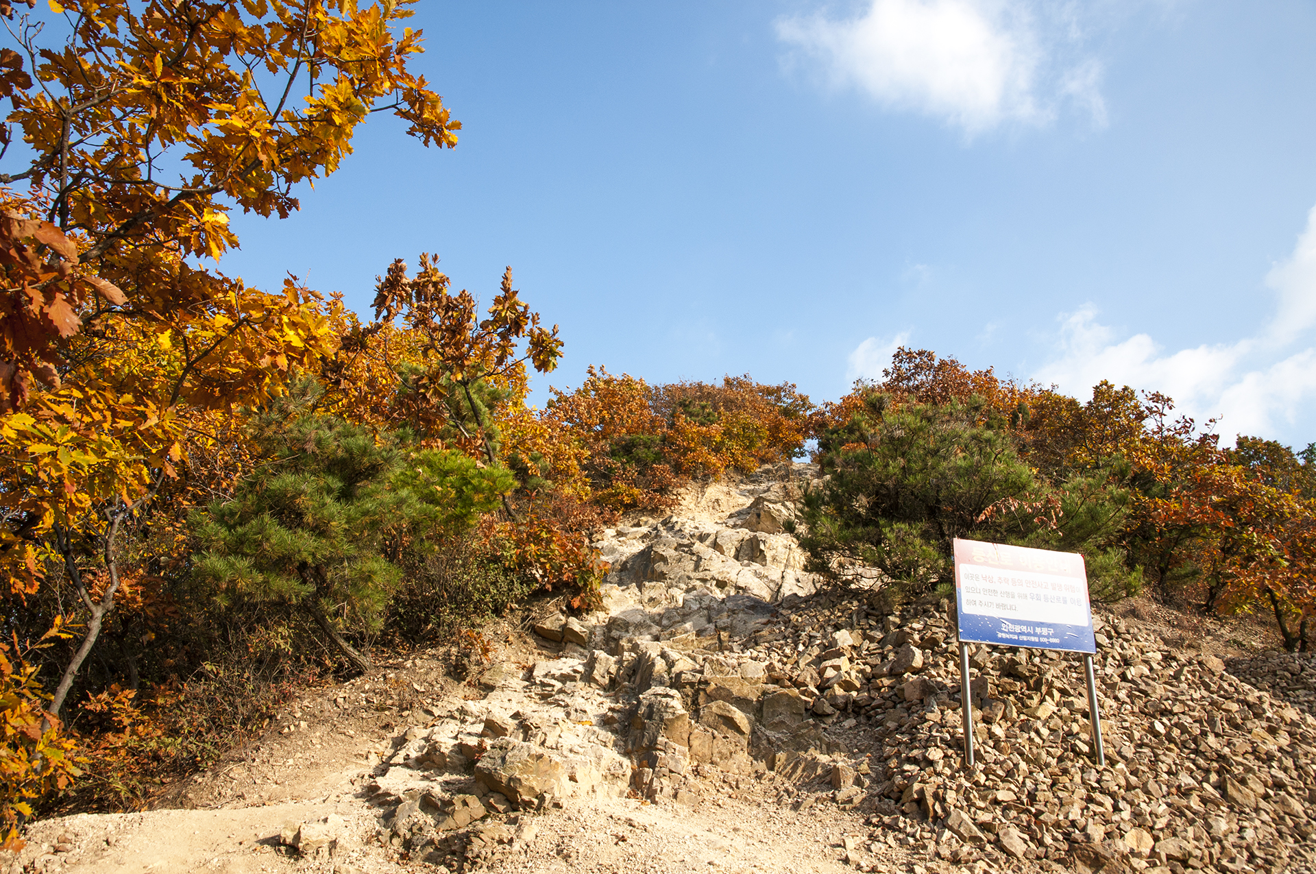 돌부스러기가 많아 미끄러울수 있으니 우측으로 우회해서 올라가면 된다.