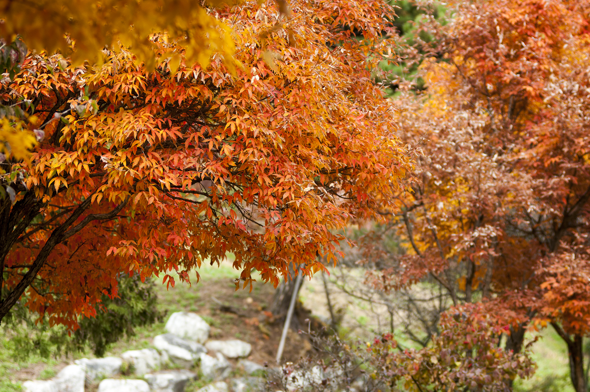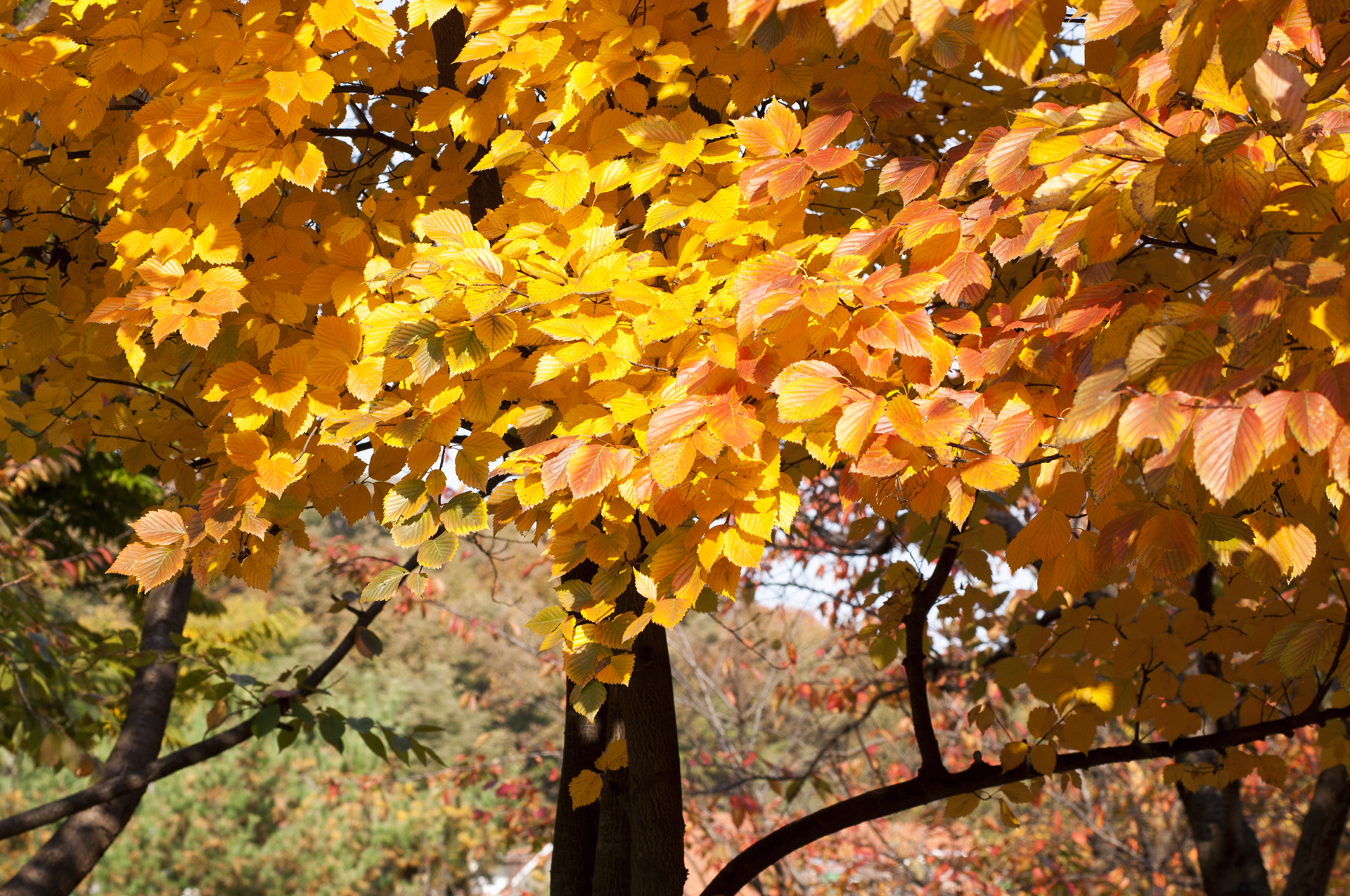 원적산공원에는 은행나무 외에도 예쁜 단풍을 보여주는 나무들이 많다.