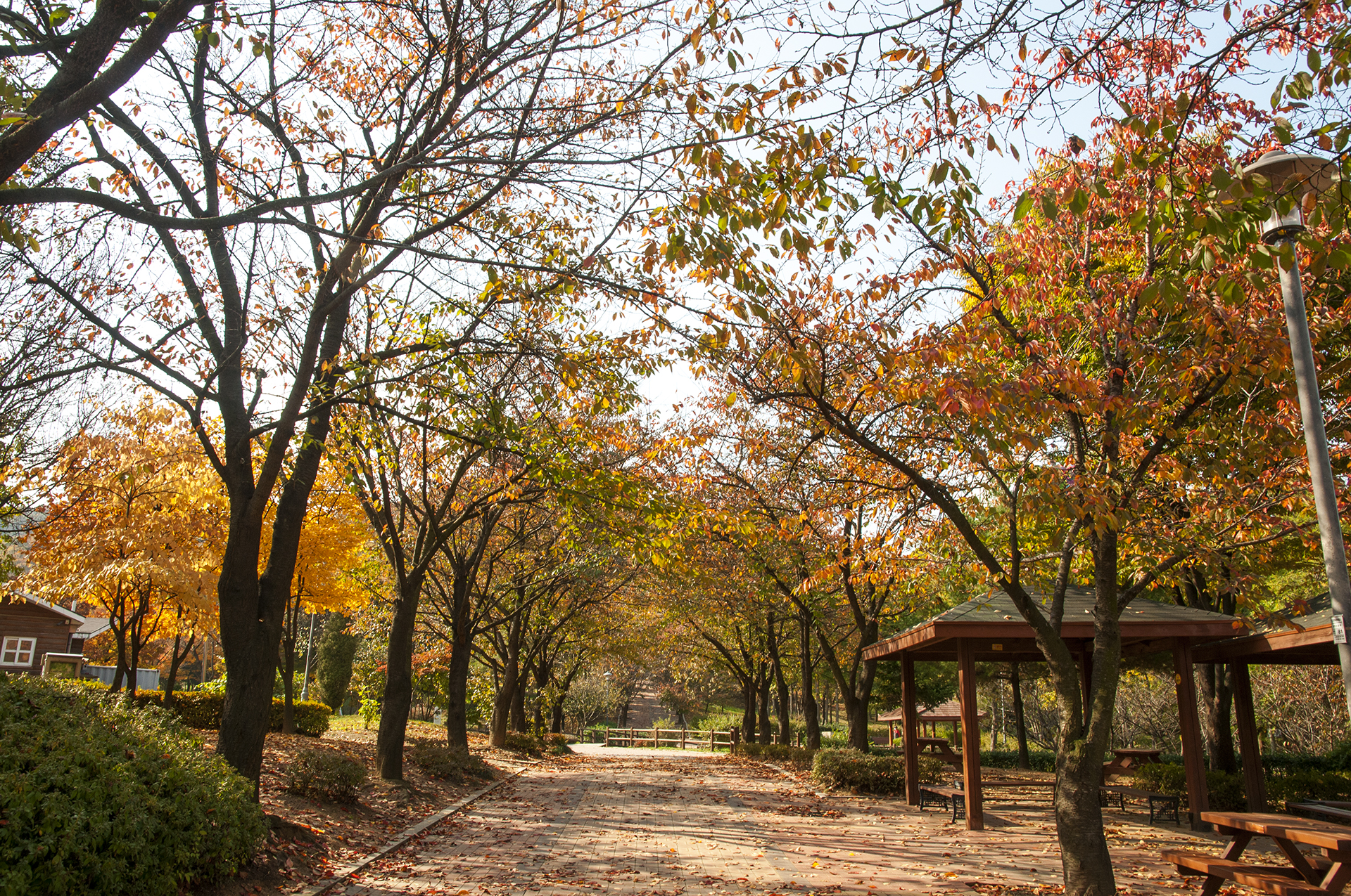 이미 많은 낙엽이 떨어져 가을만의 풍경을 보여준다.