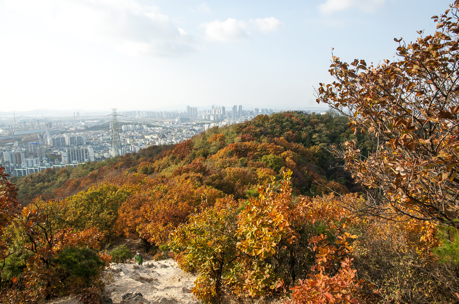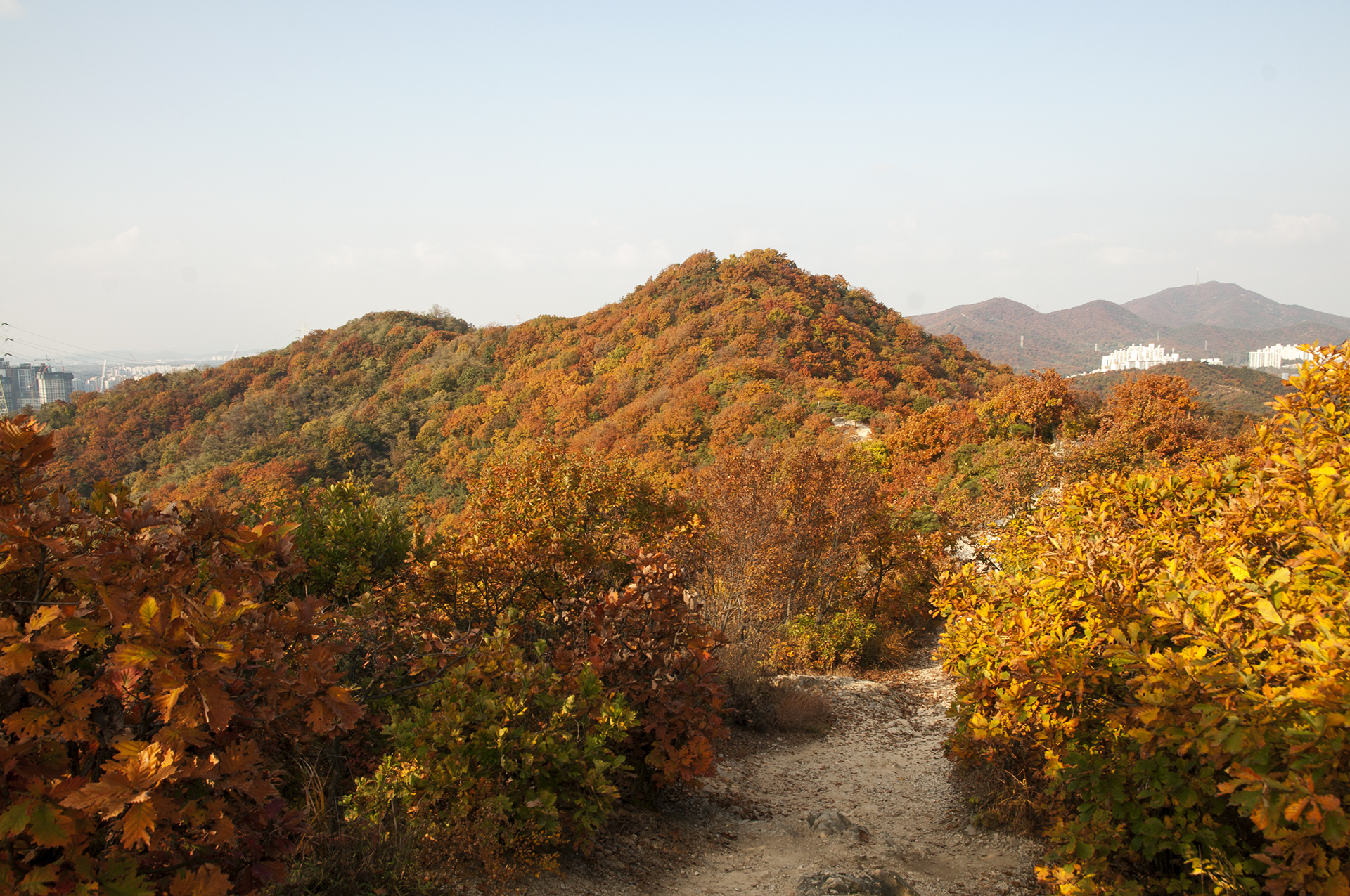 원적산공원 단풍과 원적산 정상의 가을풍경