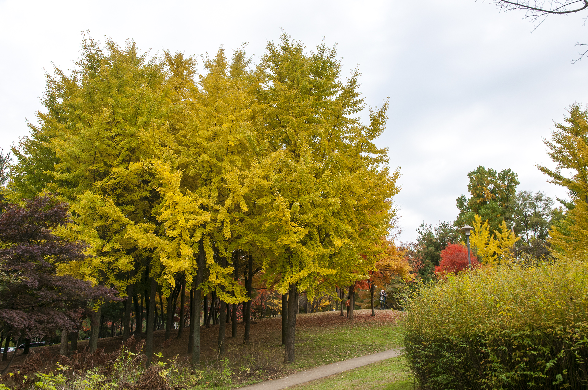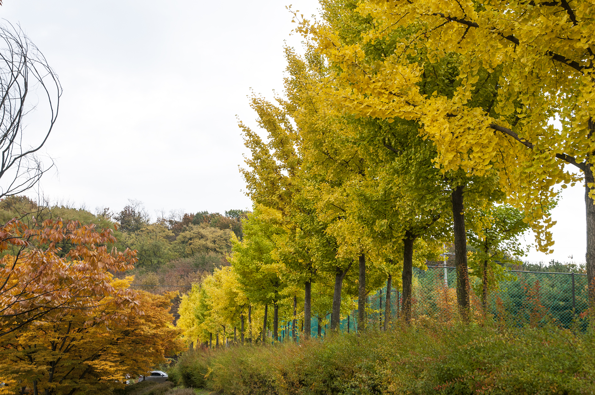 조금더 올라가면 체육공원 근처 은행나무숲이 있다. 소규모지만 나름 멋진 가을을 보여주는 곳이다.