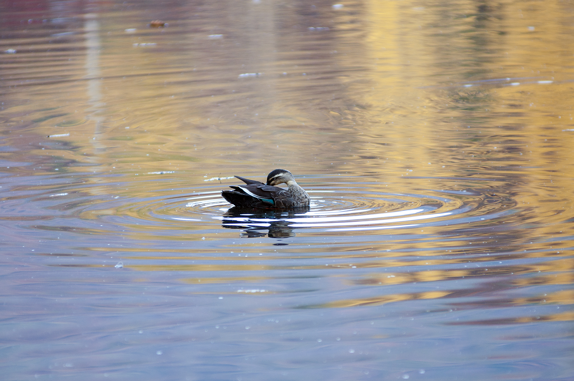 물에 비친 은행나무 빛이 잔잔한 물결에 일렁인다.