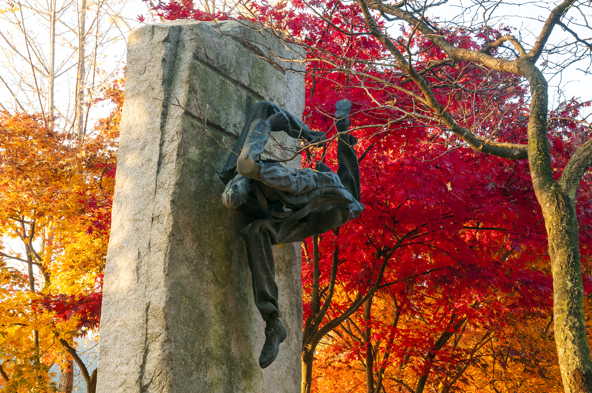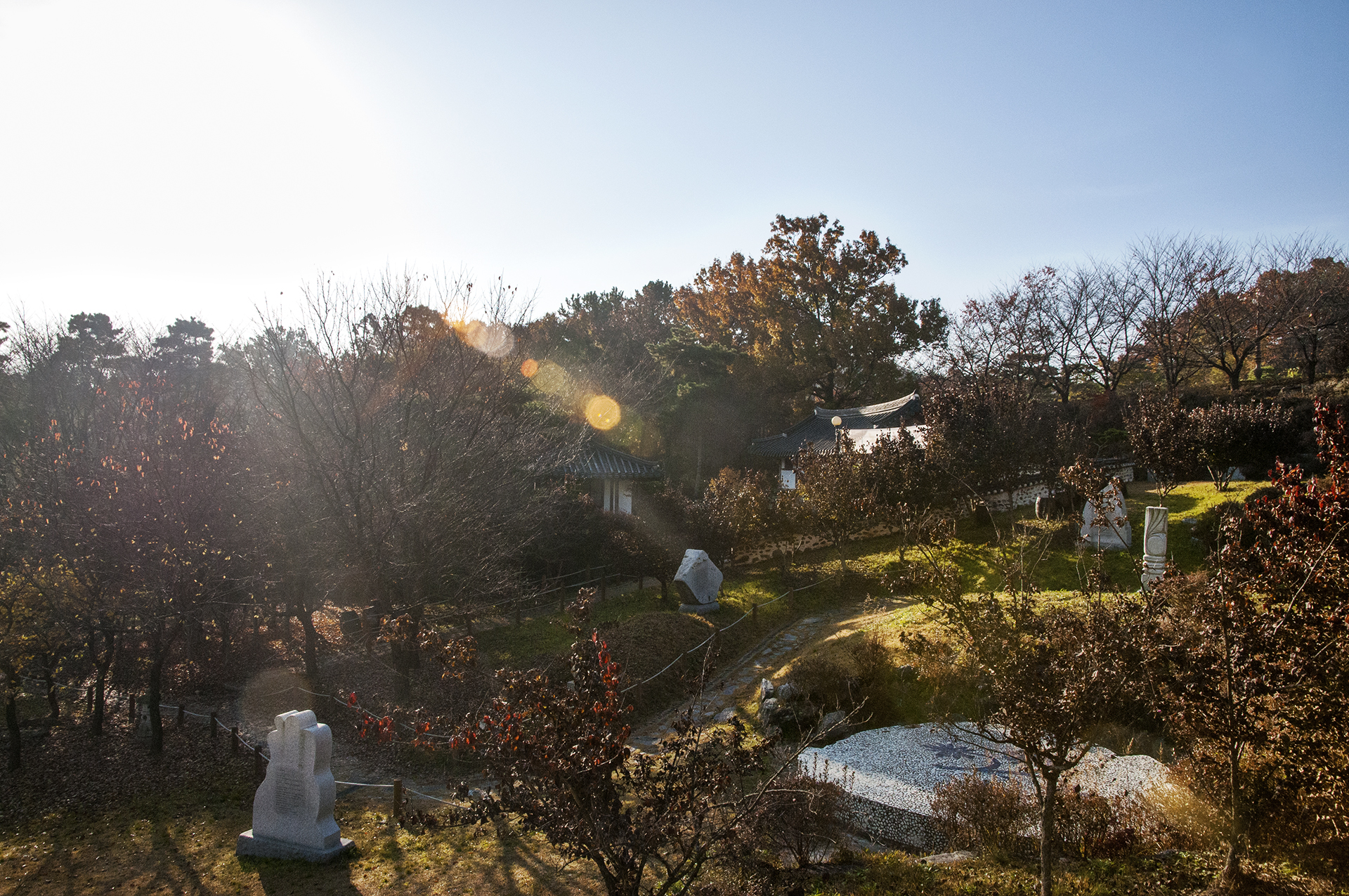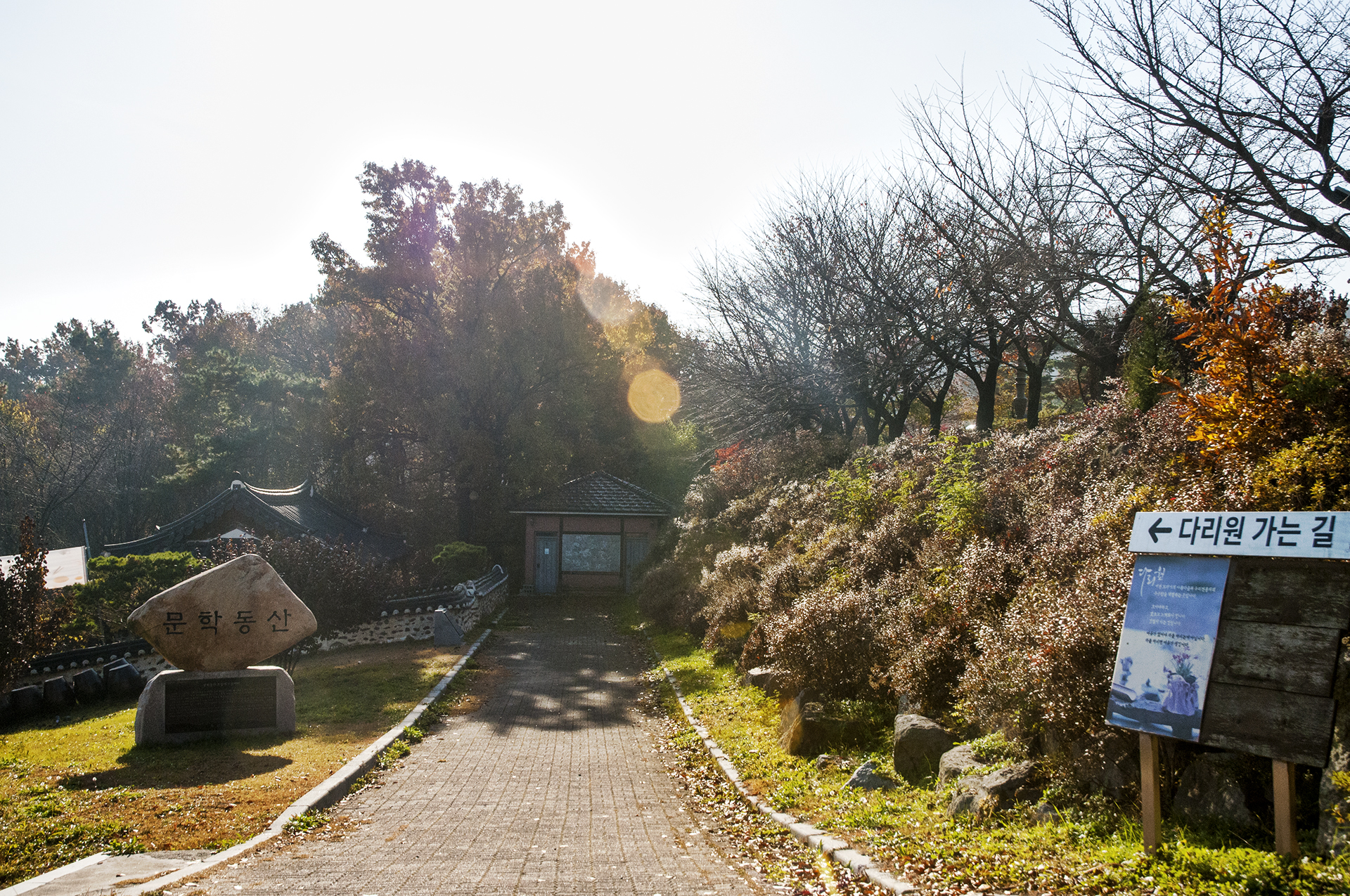 조각작품들을 보며 오르막길을 올라가다 보면 문학동산이 있고,