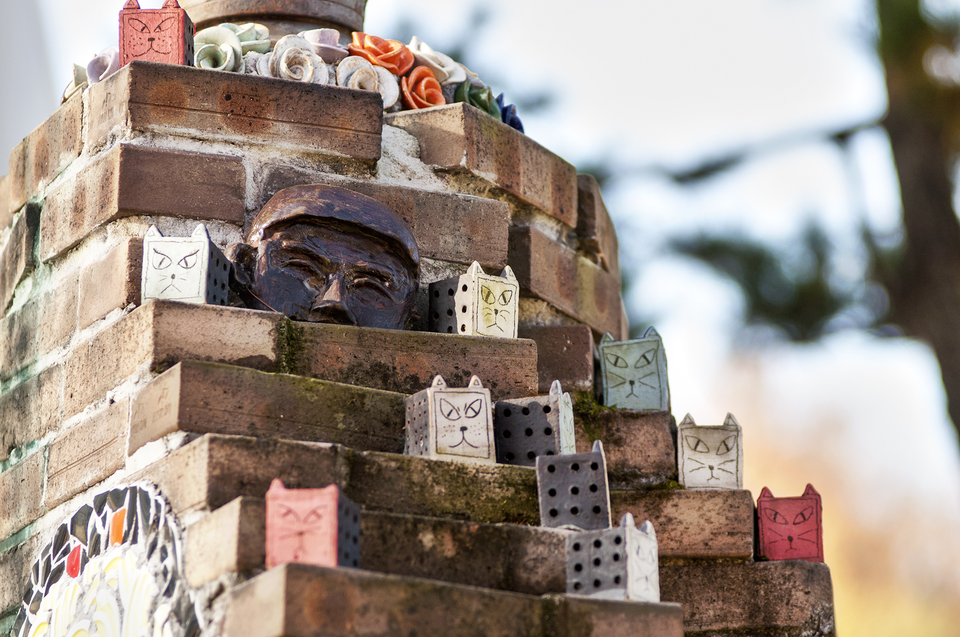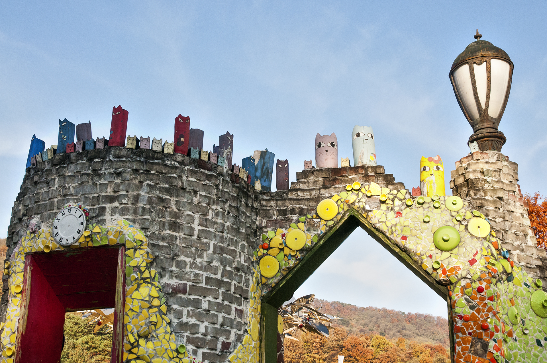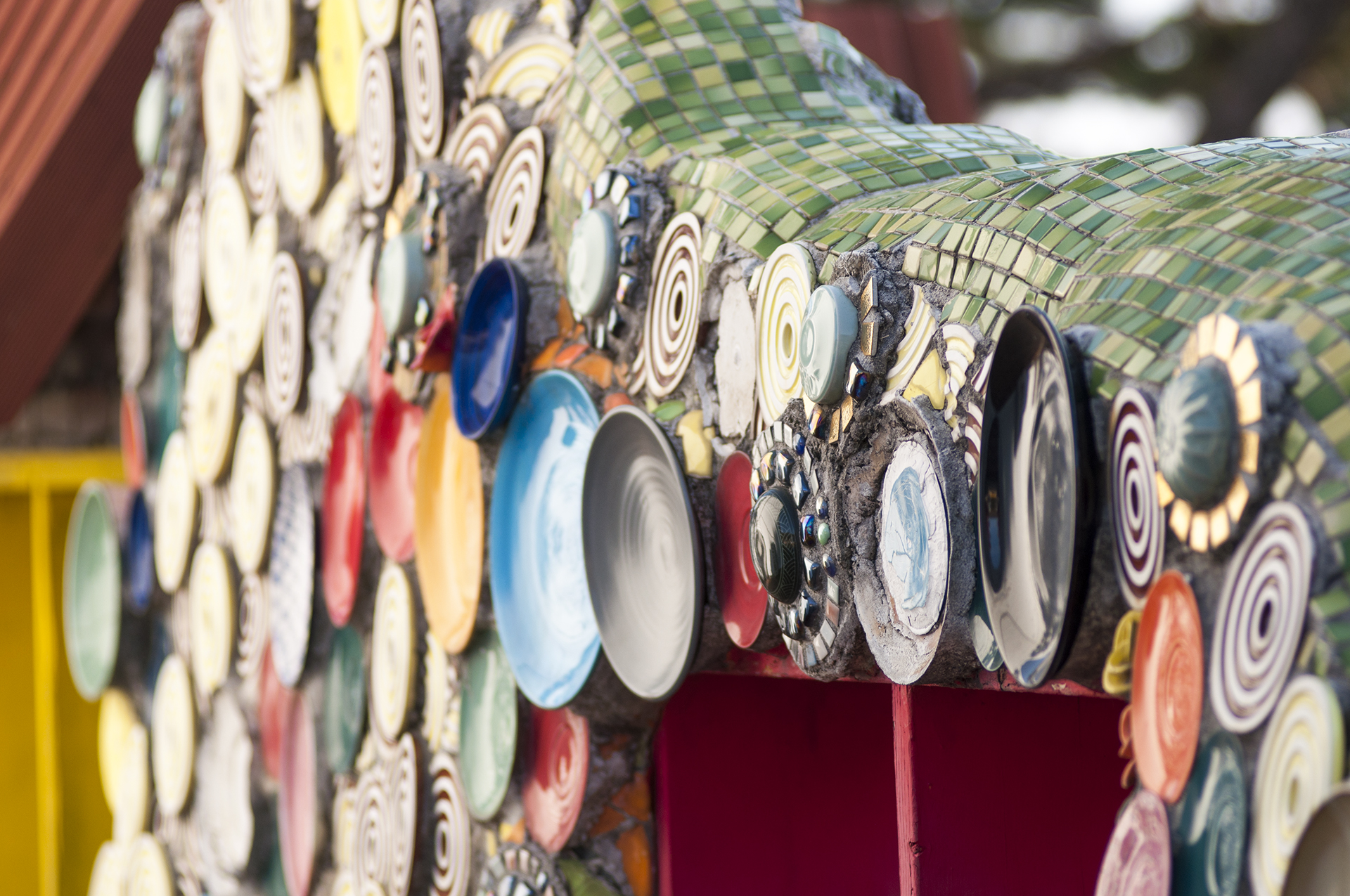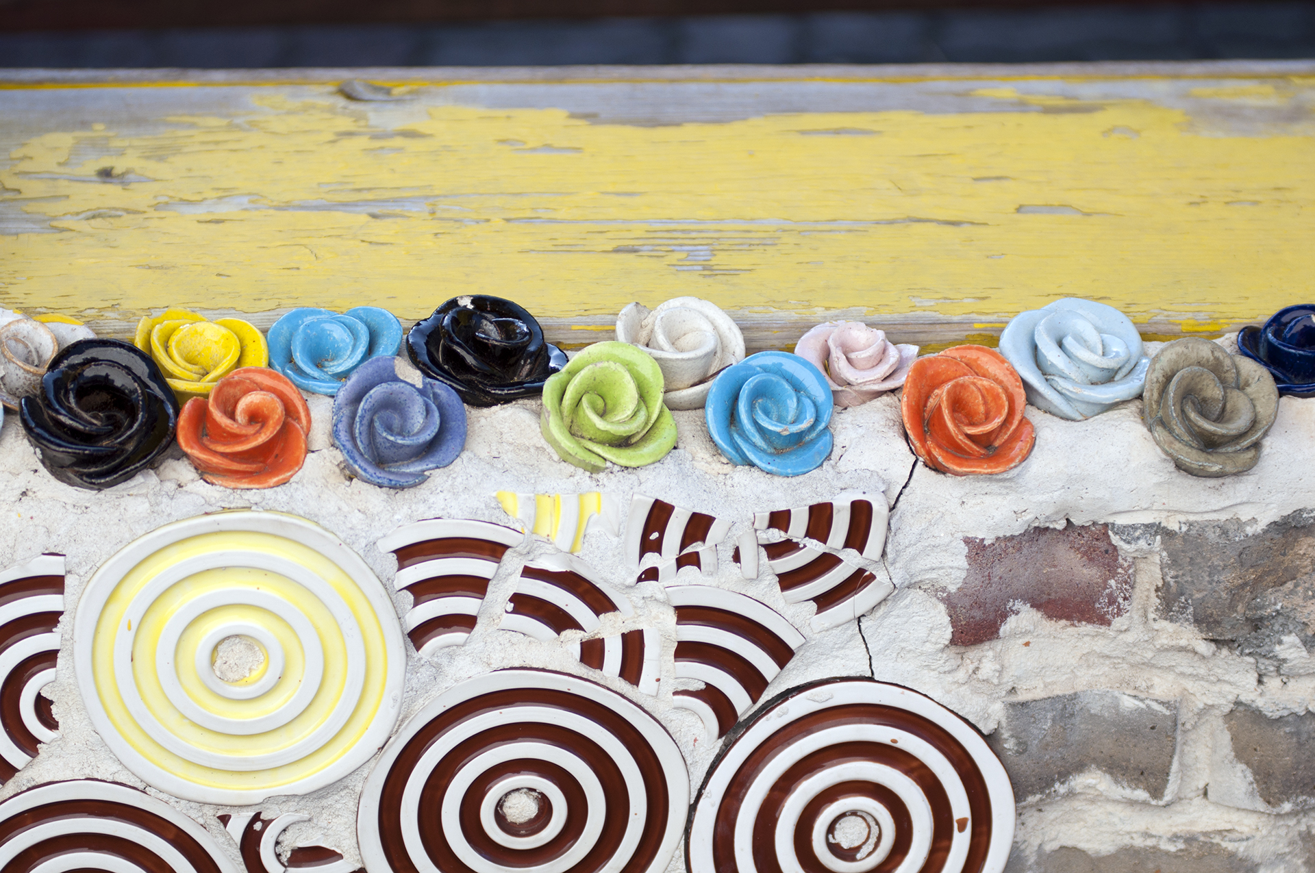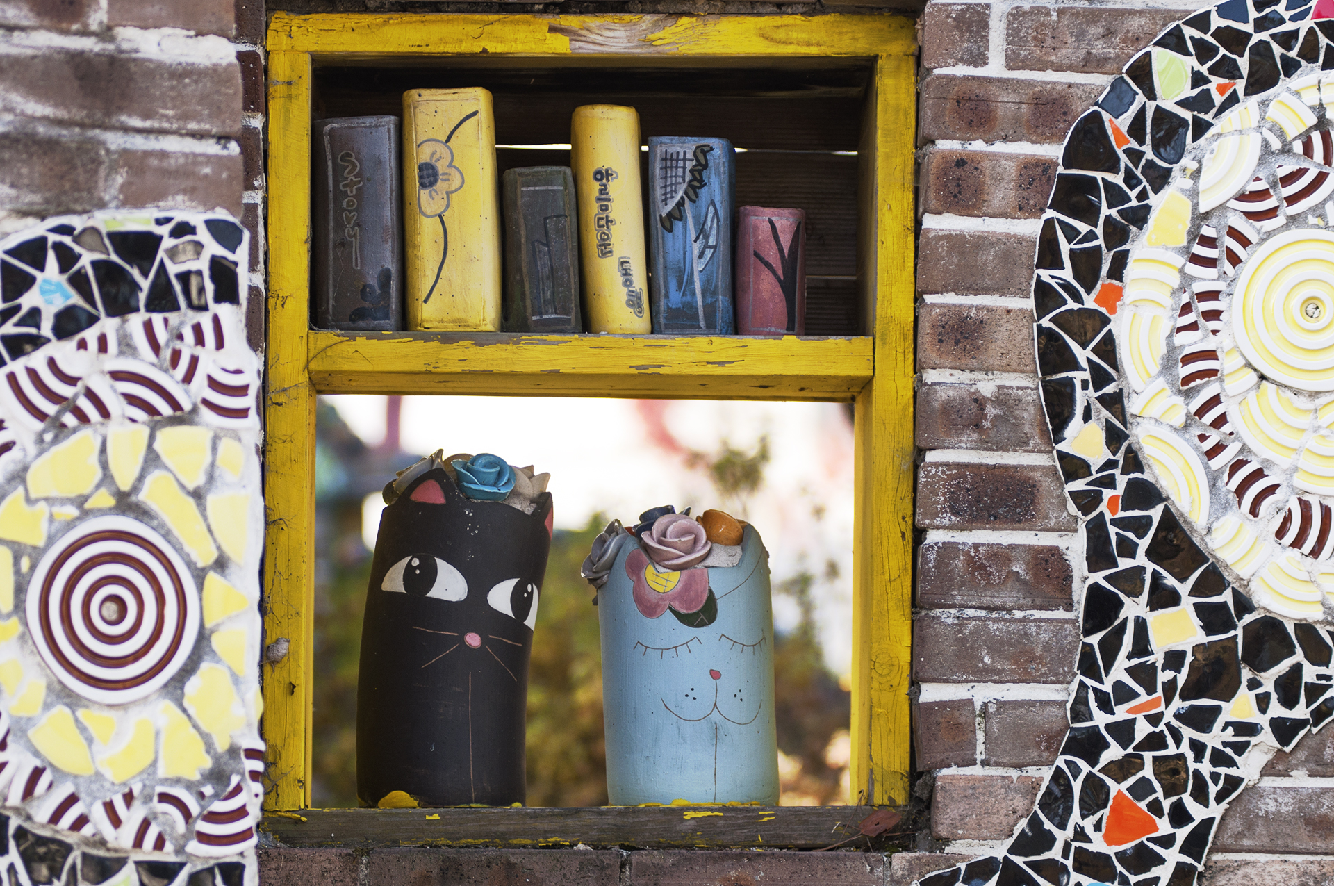 깨진 도자기 조각을 이용해 마치 스테인드글라스처럼 아름답게 꾸며 놓았다.