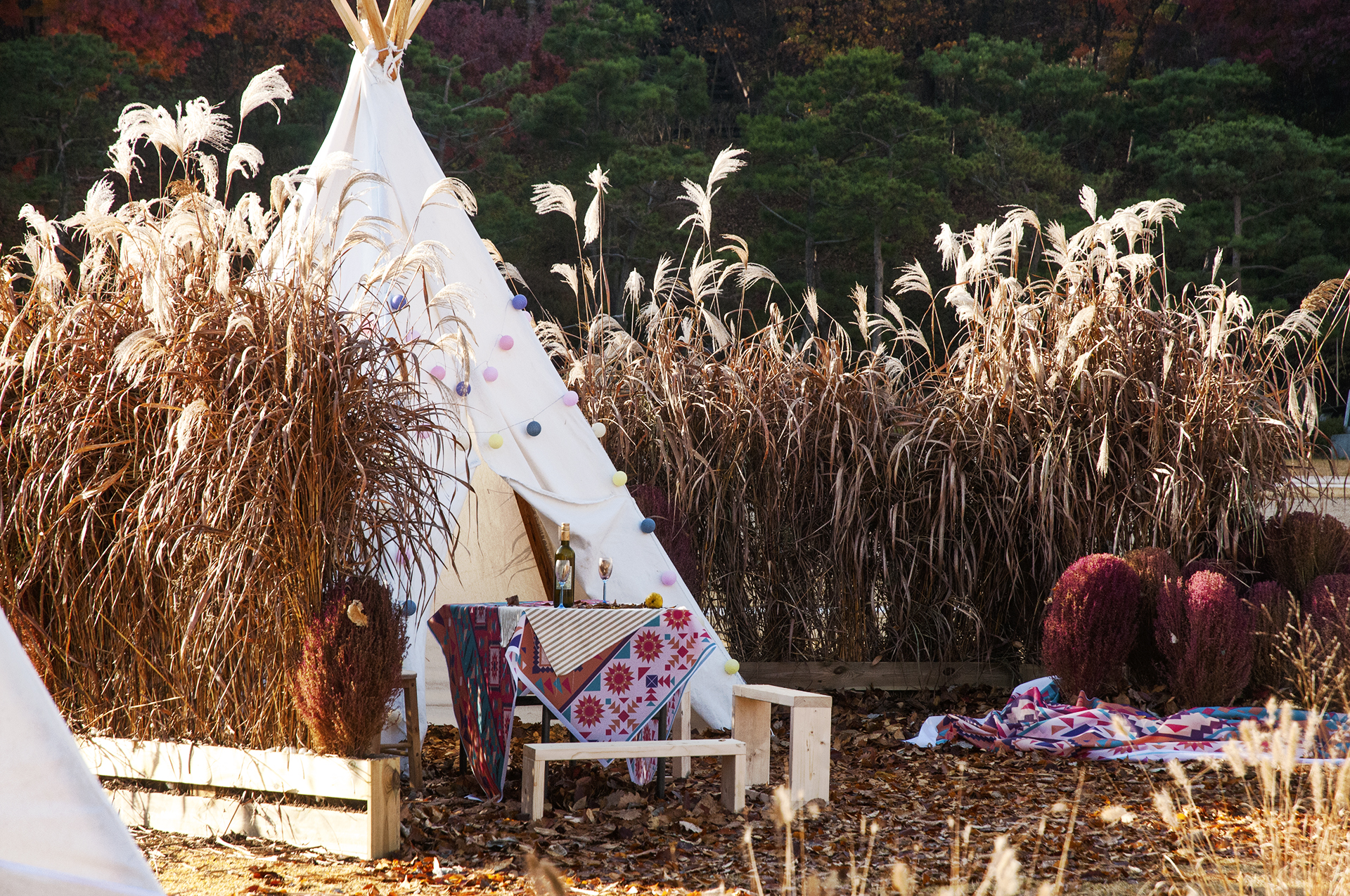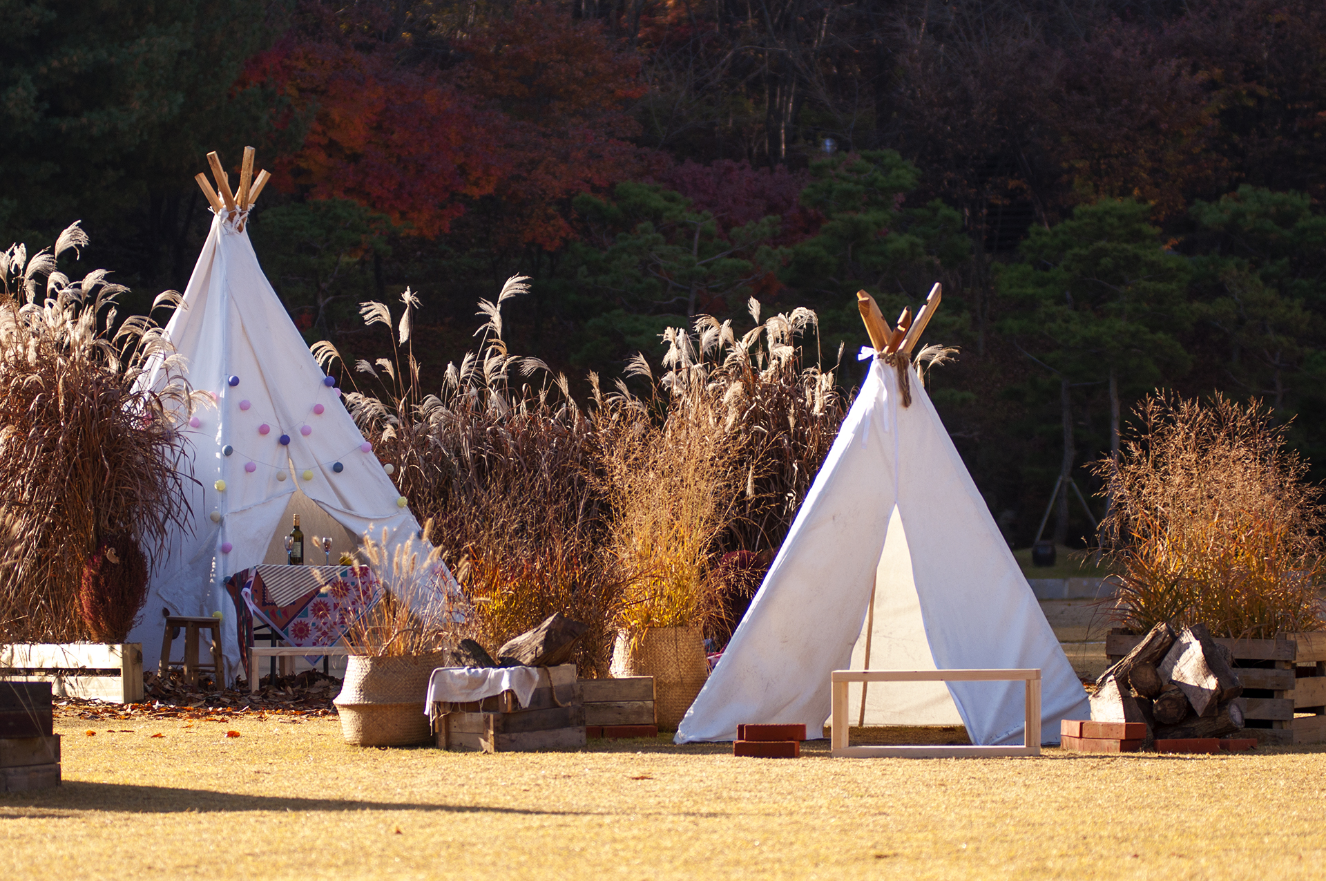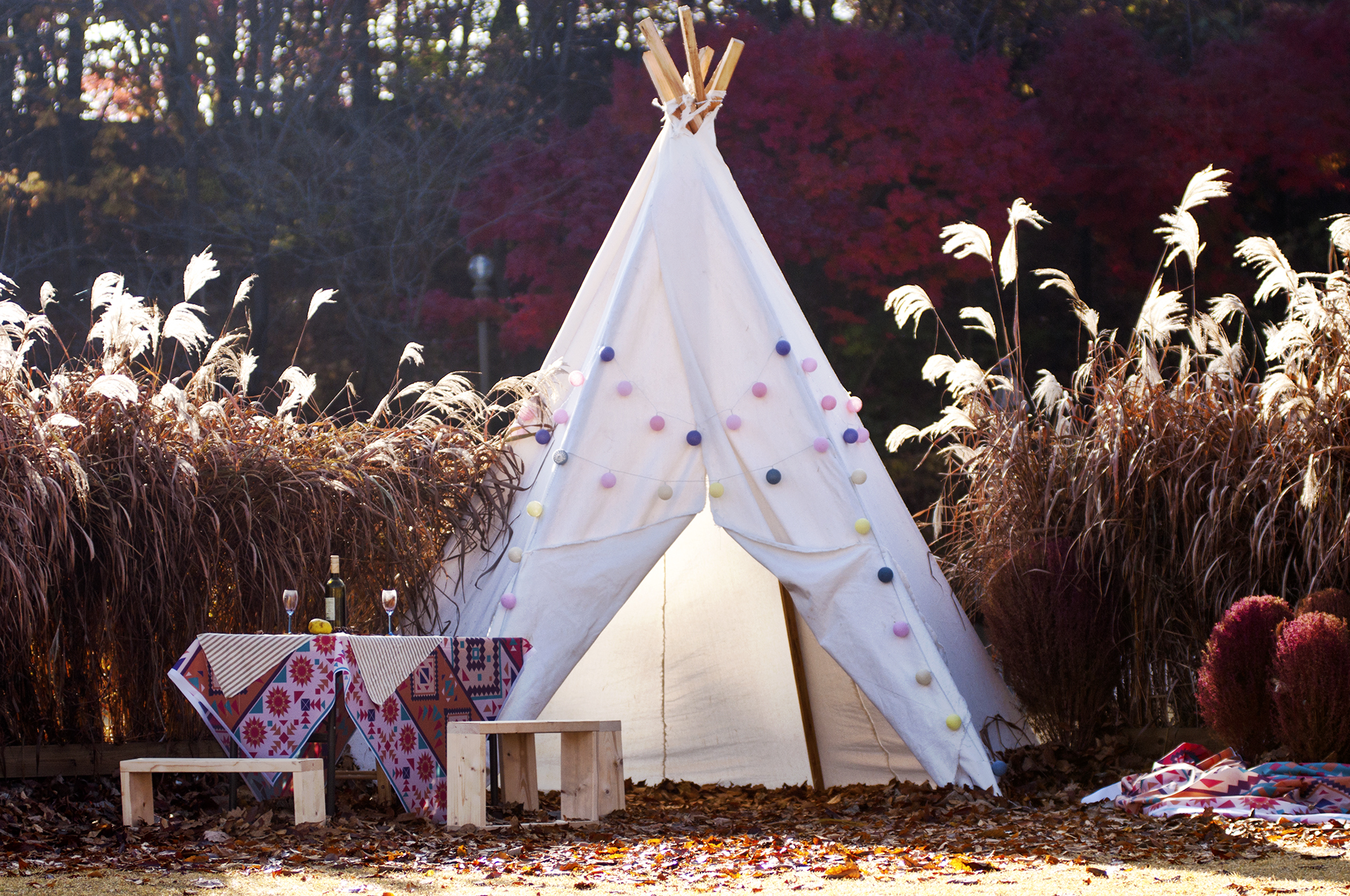 잔디광장에 설치되어 있는 인디언텐트, 버스킹 공연을 하는 곳이라고 한다.