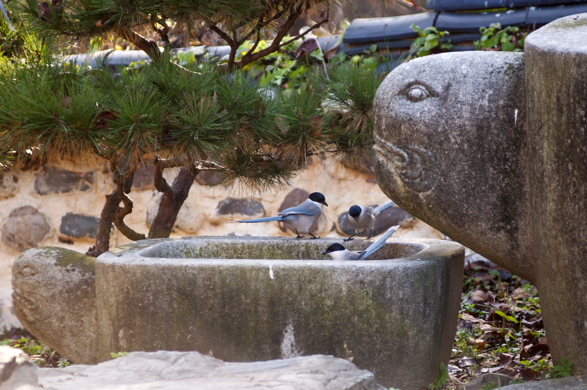 다리원 한쪽 담장 아래 돌수조가 있는데 새들이 날아와 물을 마시는 장소였다.