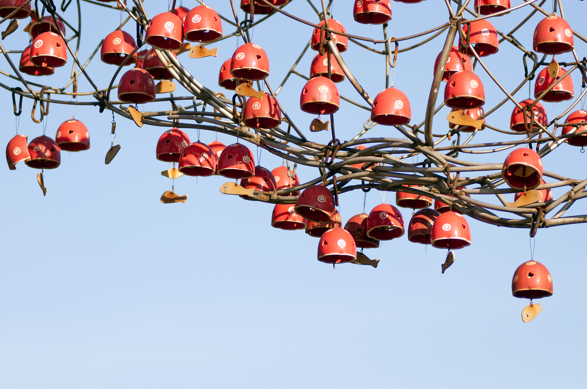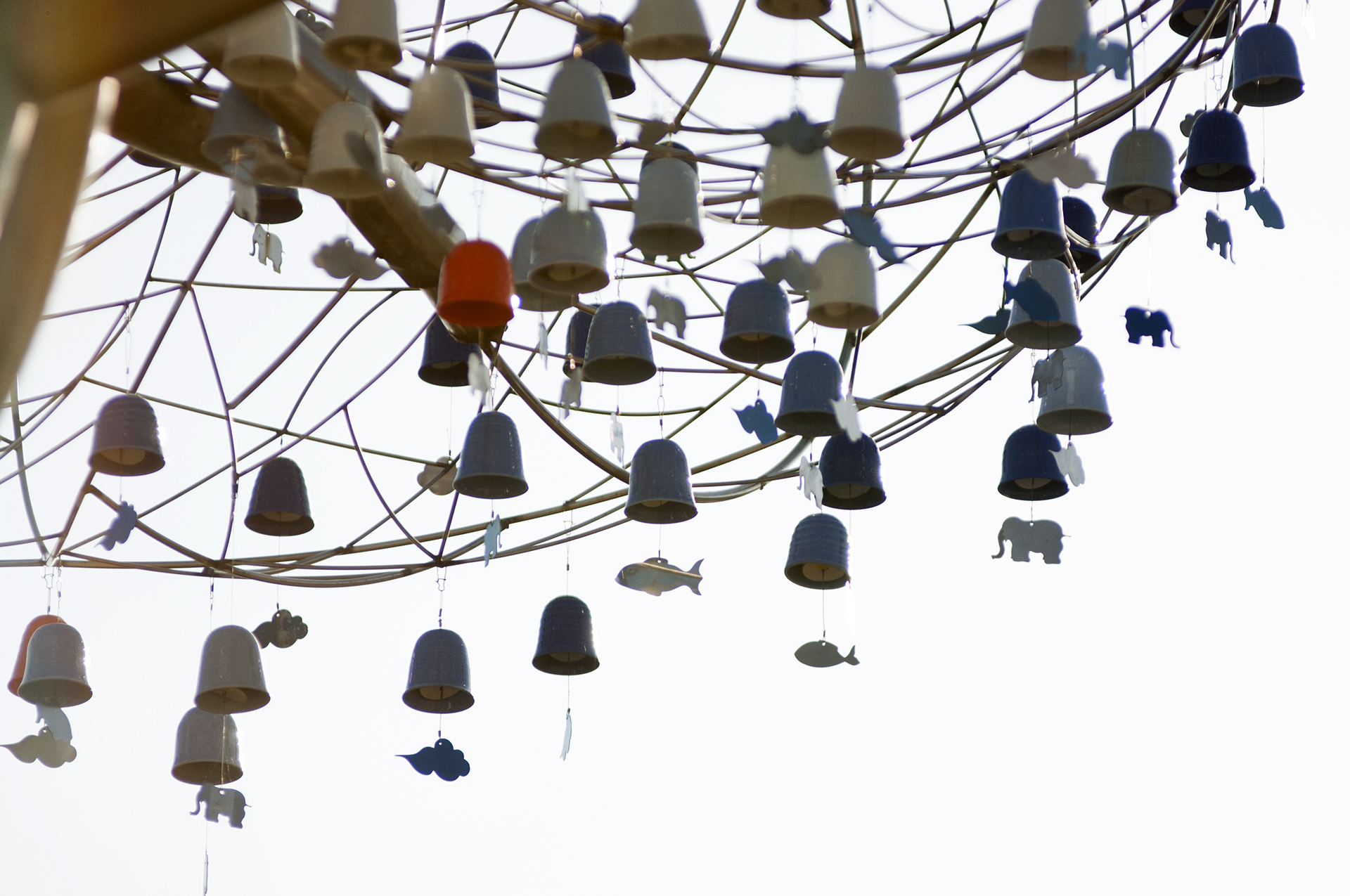 풍경에 연결된 물고기, 코끼리, 구름 모양의 종은 빛과 조명에 의해 반사되어 아름다워 보이고, 바람의 강도에 따라 다양한 음의 리듬을 만들어 낸다.