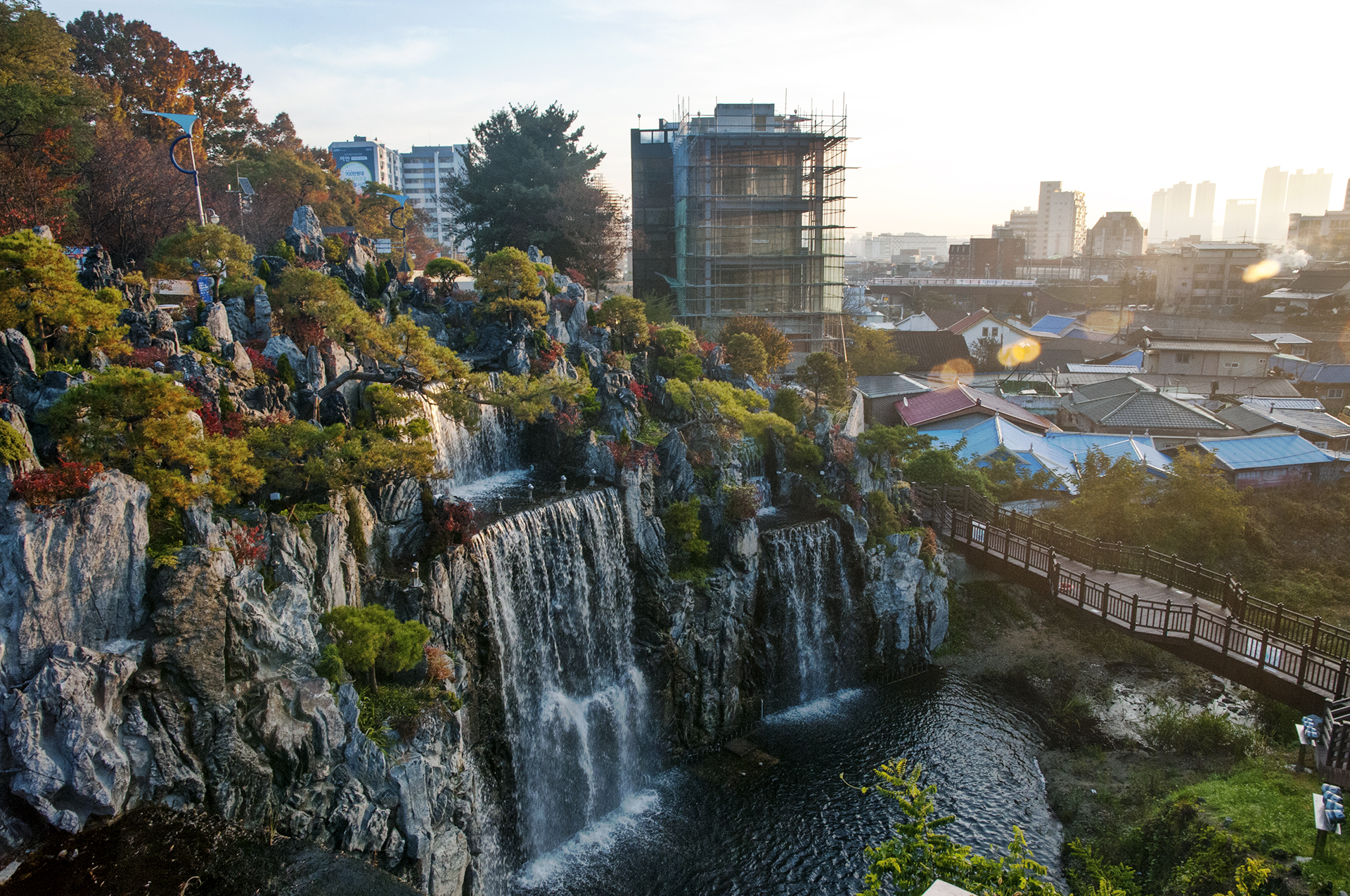 산책로를 돌다보면 아침부터 시원한 물줄기를 쏟아내는 인공폭포를 볼수 있다.