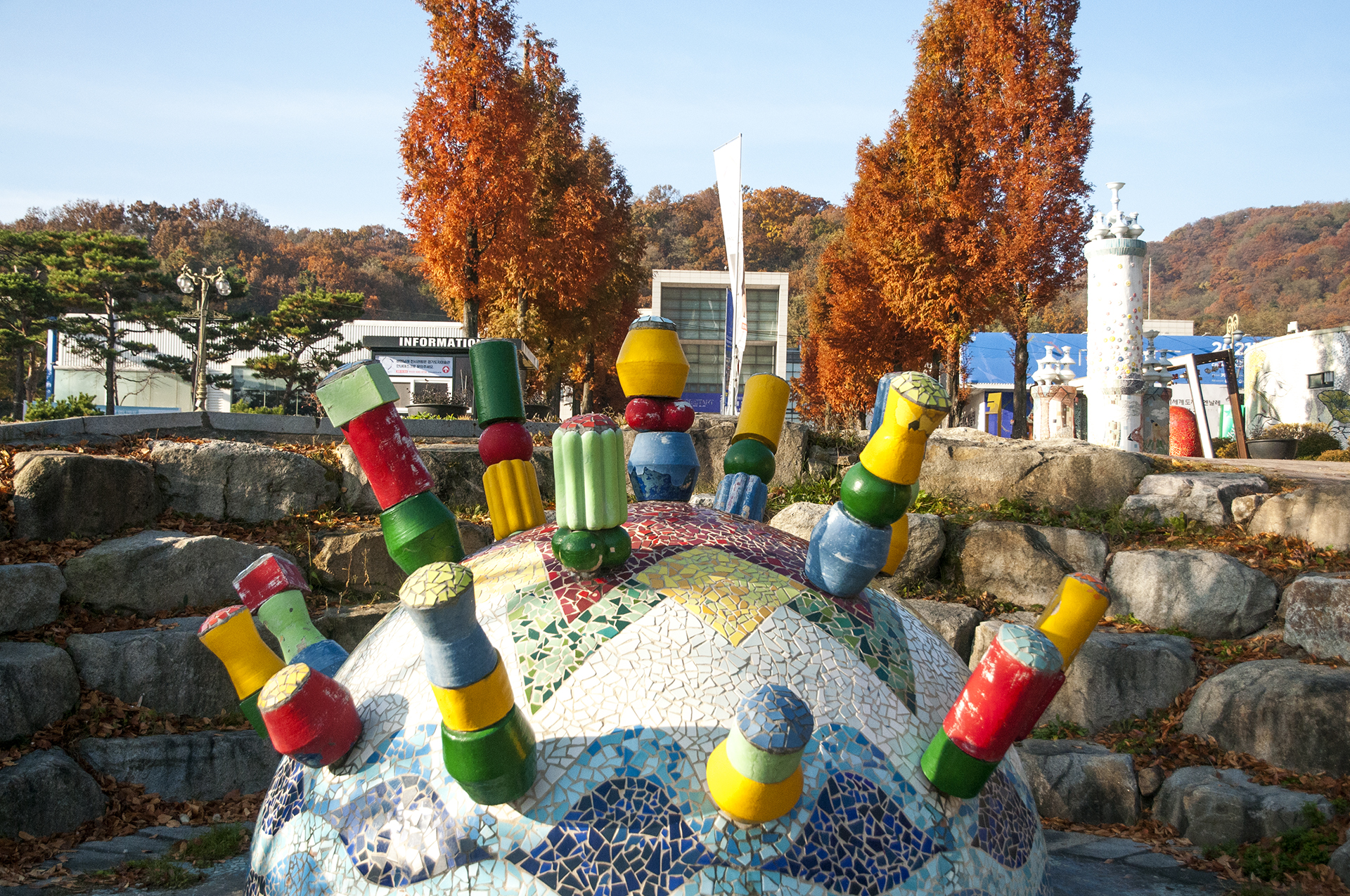 도자축제라 도자기를 이용한 각종 구조물들이 눈에 띈다.