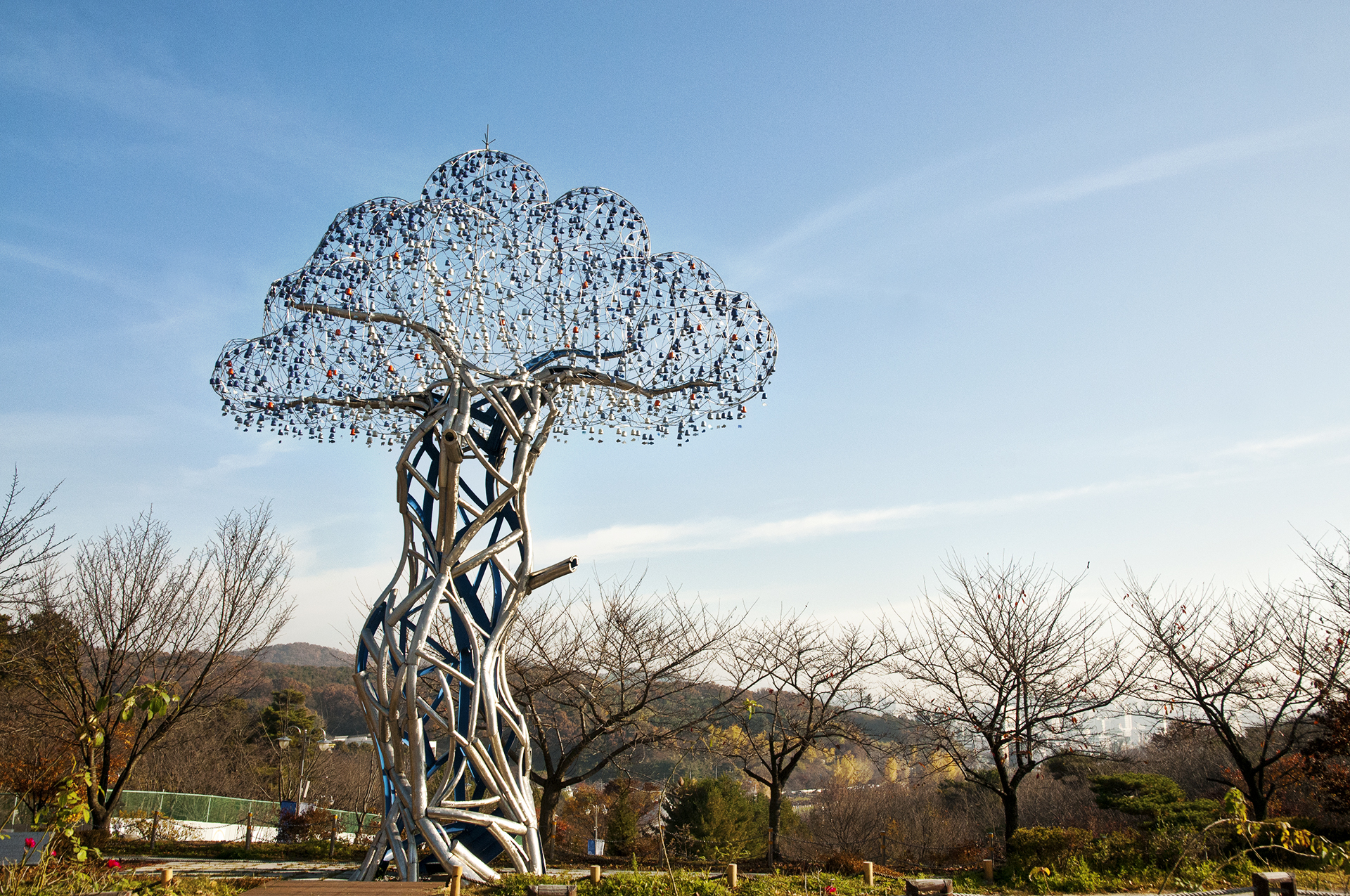 마치 구름이 나무에 걸려있는 형상의 구조물에 2,007개의 도자풍경을 매달아 바람에 의해 소리가 나는 자연의 악기라고 한다.