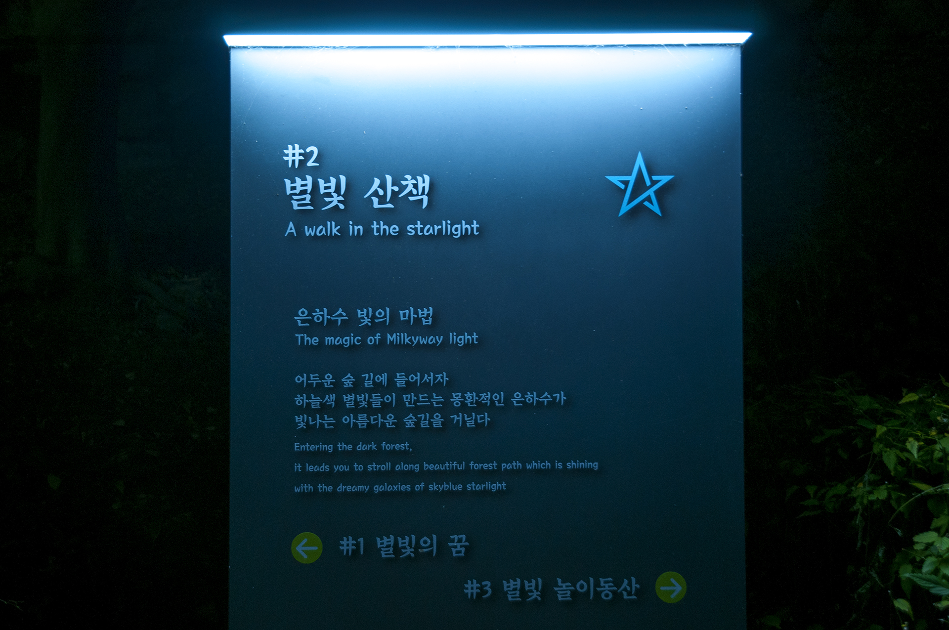 나중에 돌아와 알게 되었지만 무장애나눔길에서도 '별 헤는 밤'이라는 주제로 조명경관을 볼수 있고, 수봉교를 건너 망배단 가는 길에도 '탄생의 별'이라는 주제로 수봉 별마루가 진행되고 있다.