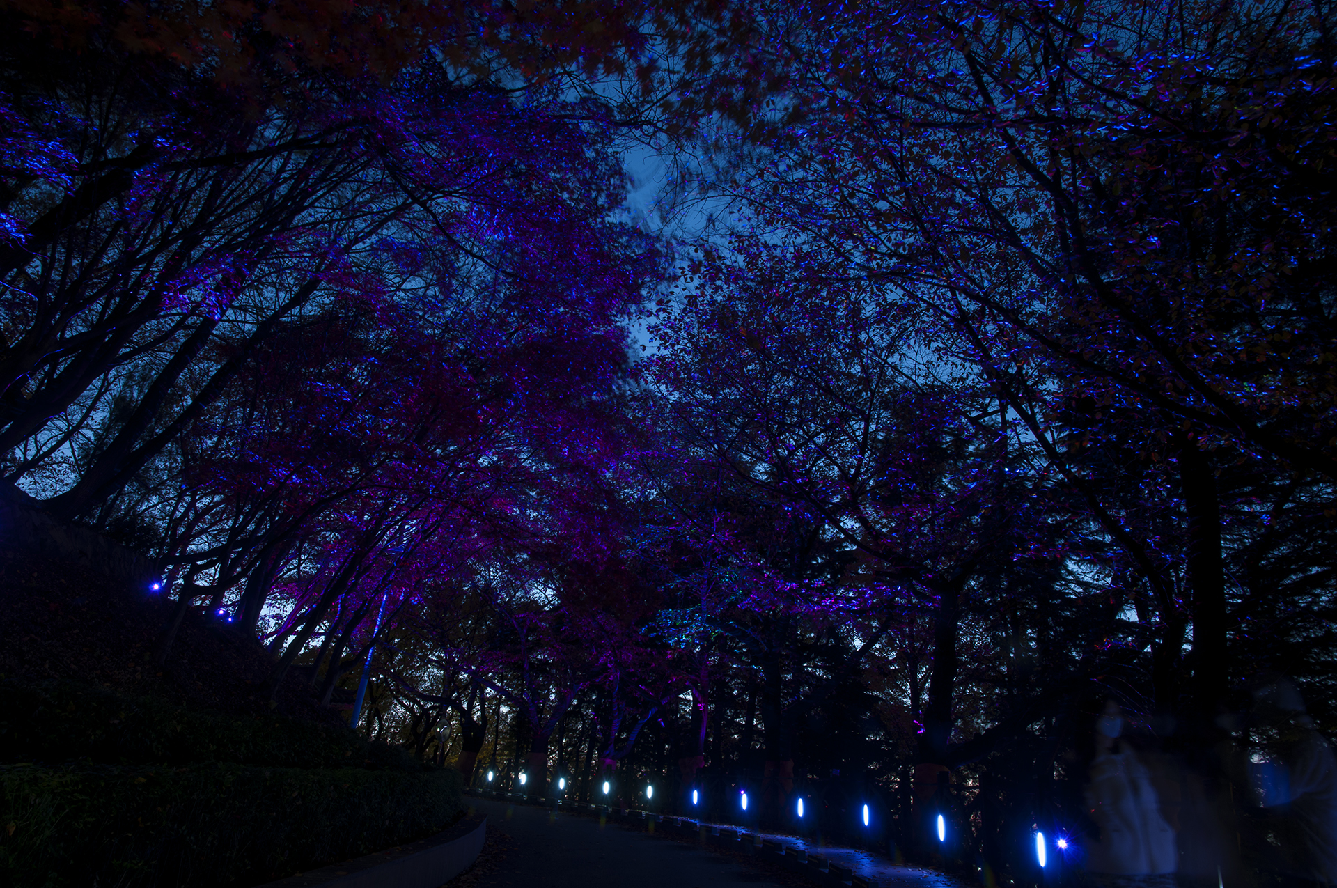 몇 안남은 나뭇잎을 달고 있는 나무마저도 멋스럽게 보이는 조명의 효과
