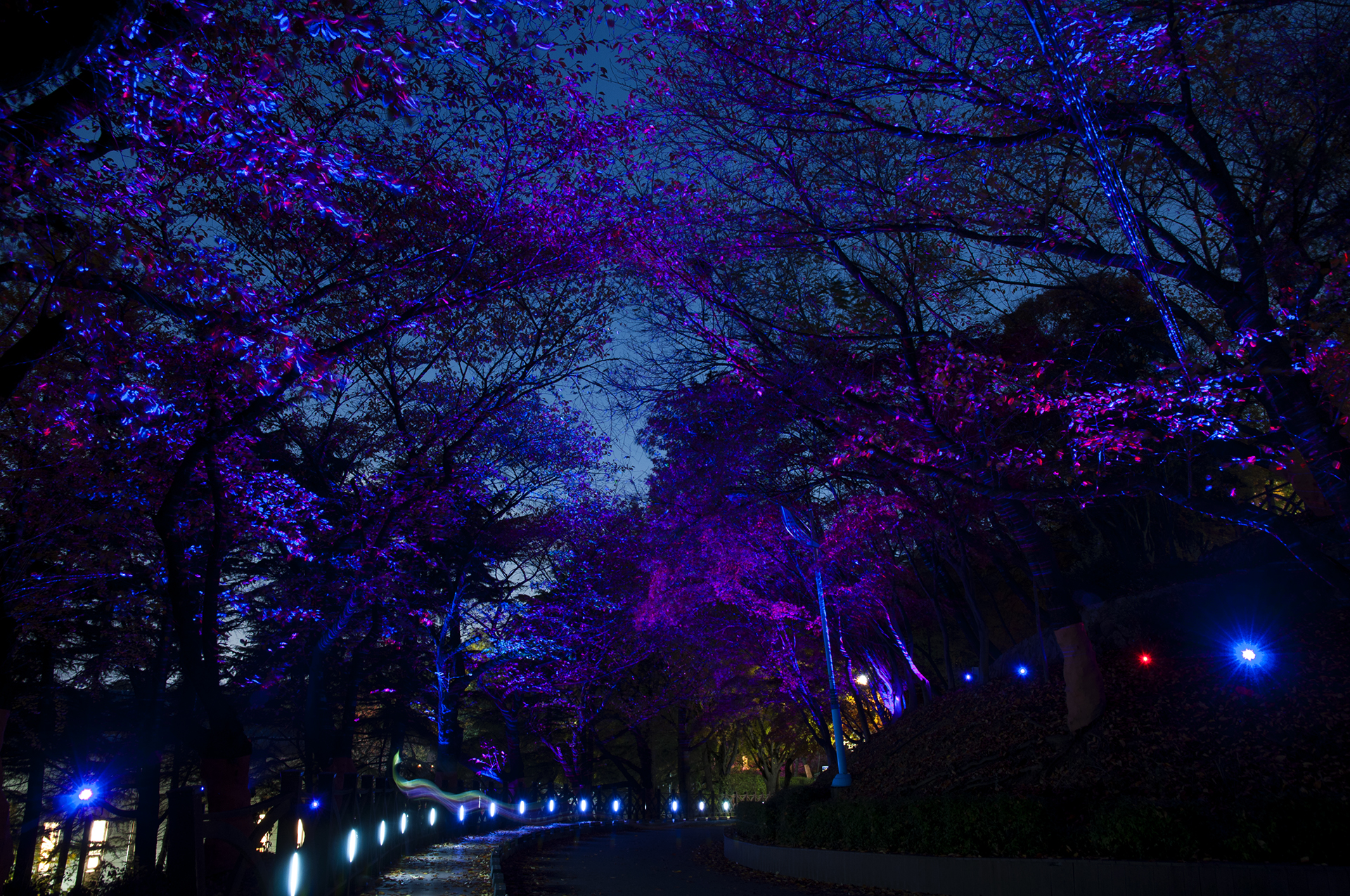 아름다운 조명길이 이어지고