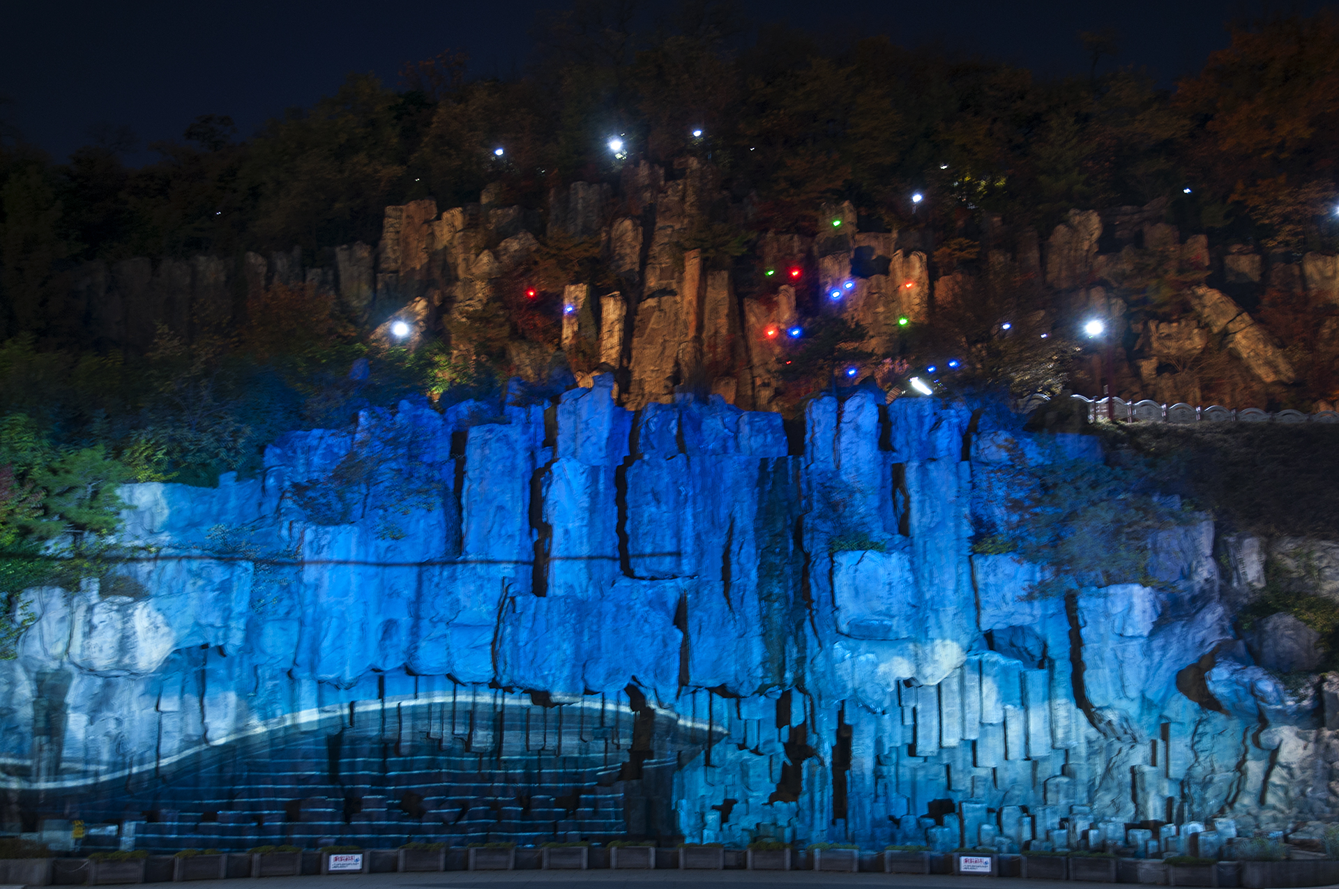 계단을 이용해 아래로 내려와 바라본 인공폭포