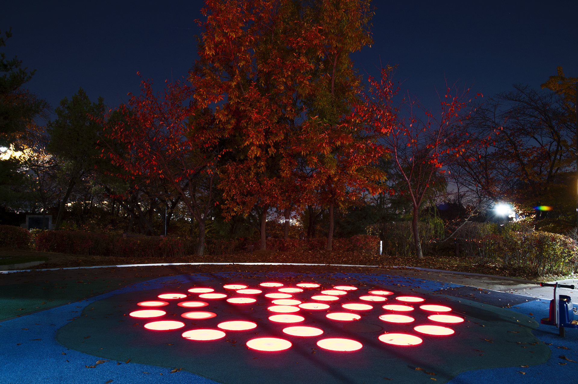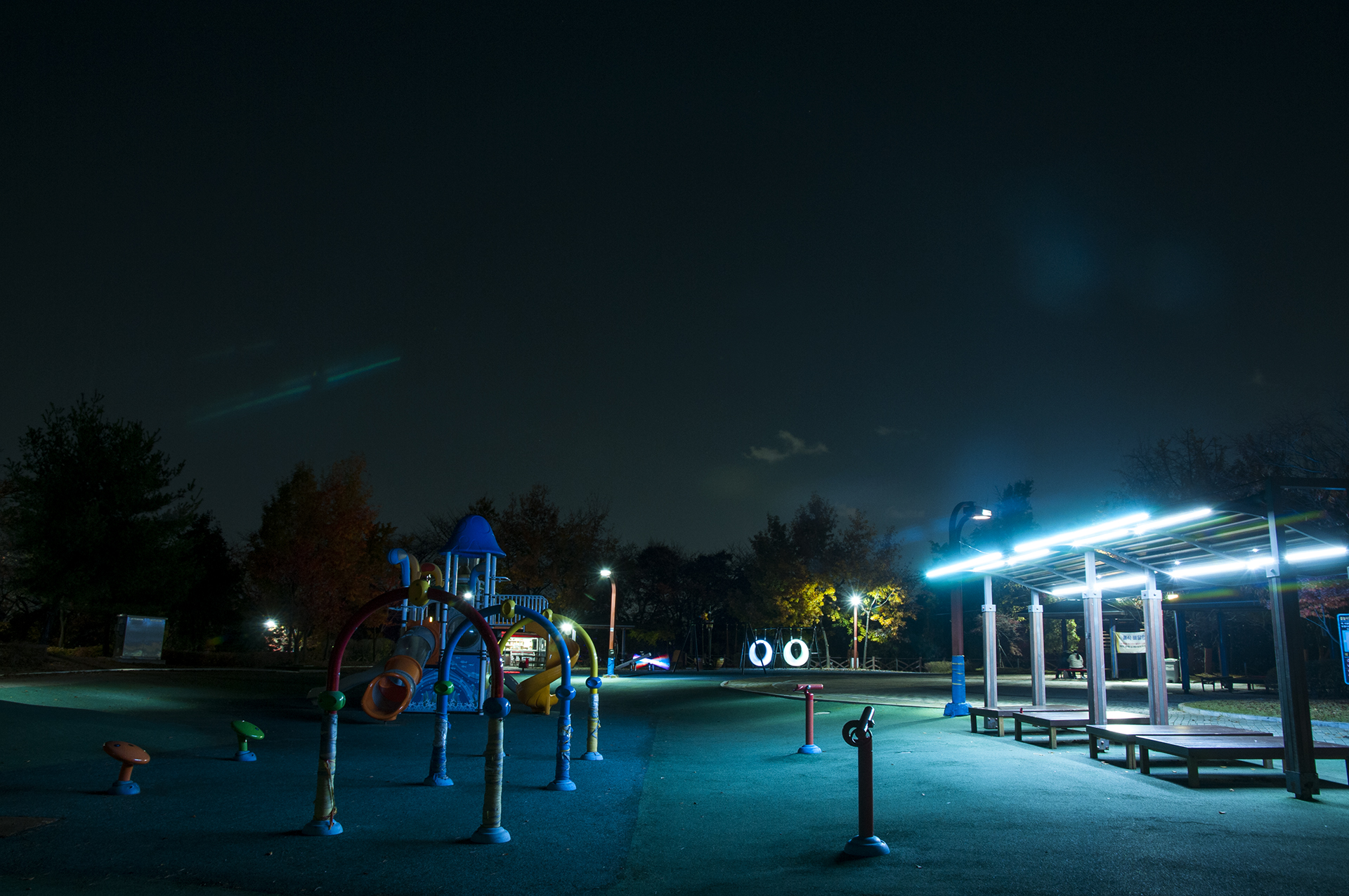 그네와 시소에는 조명이 들어와 사진찍기에 좋은 곳이다.