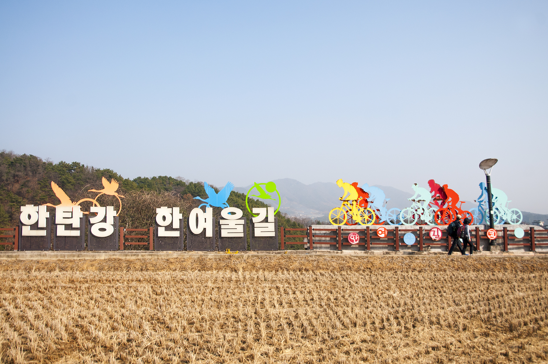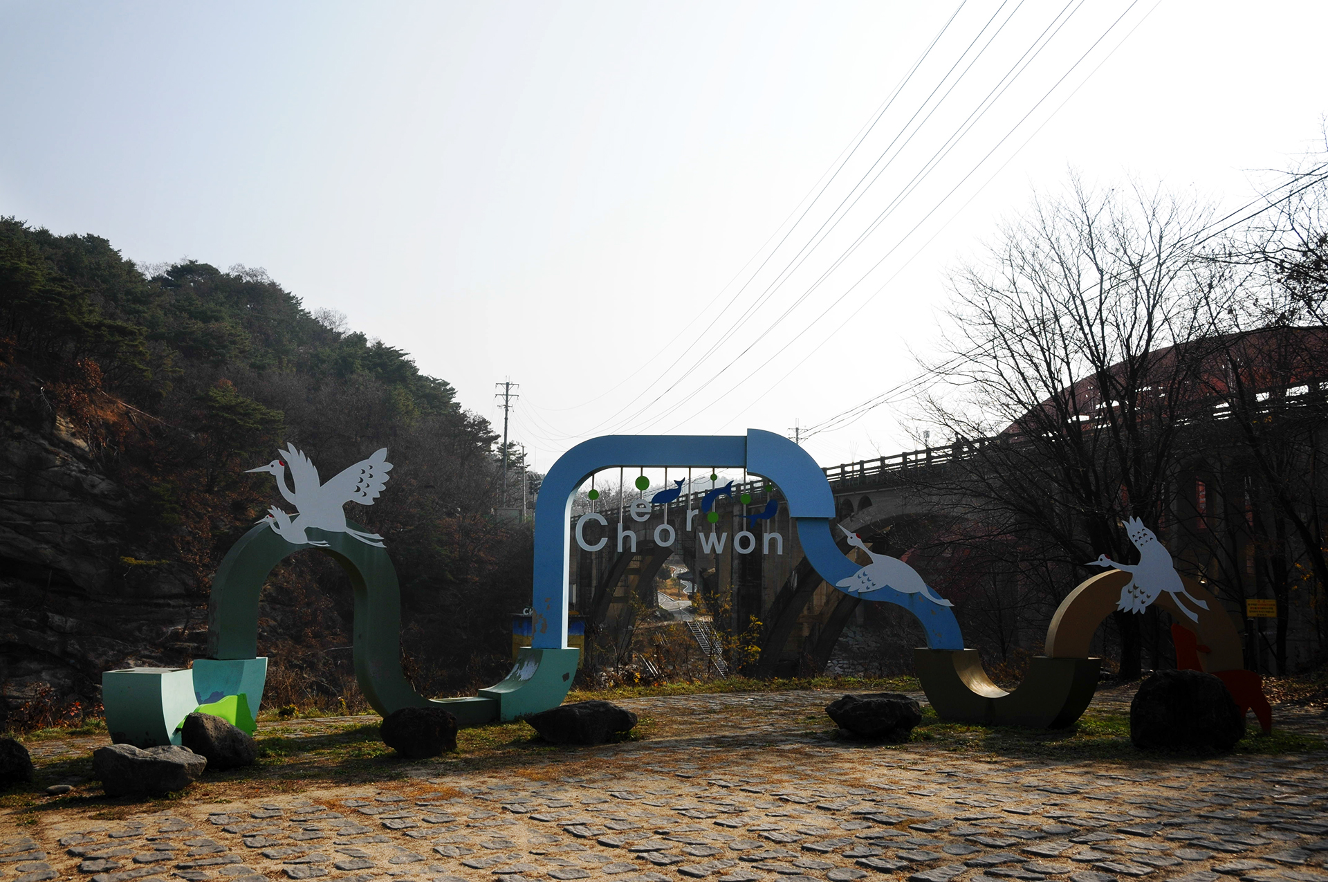 승일교에서 내려오면 철원의 상징물과 그 뒤로 승일교가 보인다. 오늘 트레킹의 시작은 승일교 아래를 통과해서 고석정으로 갈 예정이다.