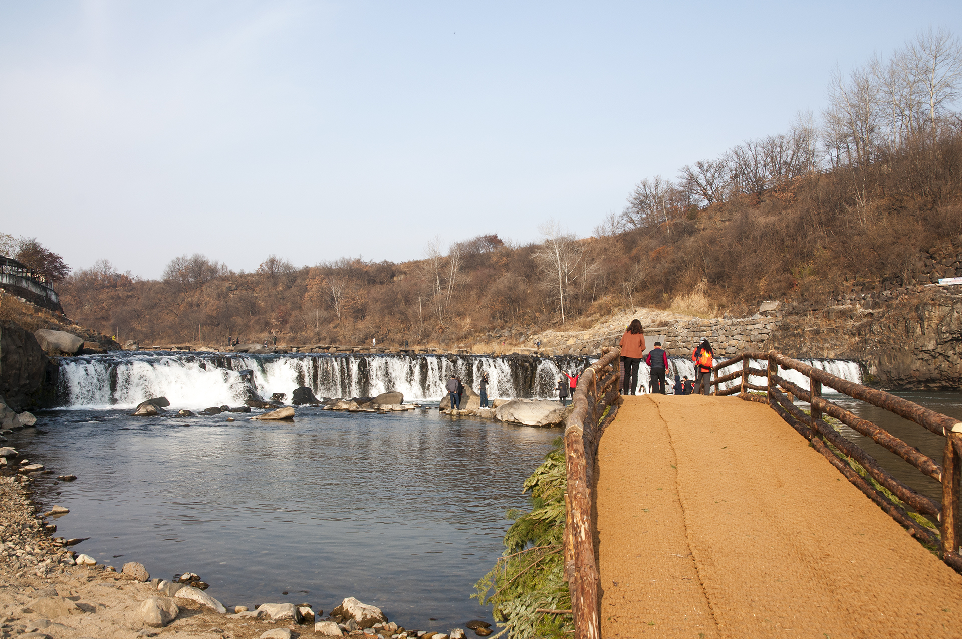 이 섶다리는 없었던것 같은데 방문객들이 가까이서 폭포를 볼수있게 새로 만든것 같다. 걸을때마다 출렁출렁, 엄청 폭신한 느낌이다.