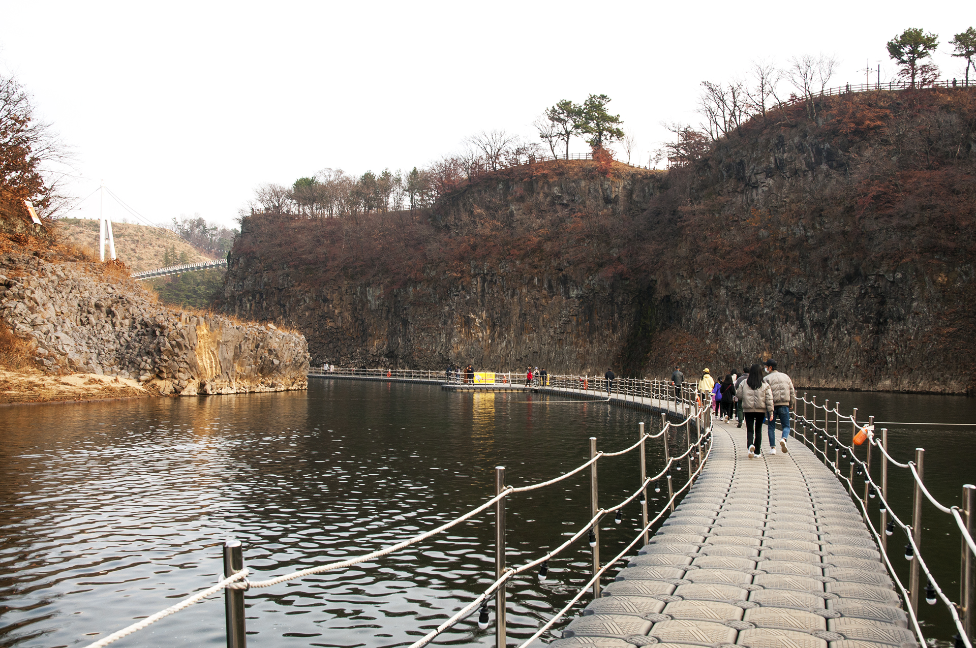 부교가 끝나는 지점에 도착해서 돌아본 모습