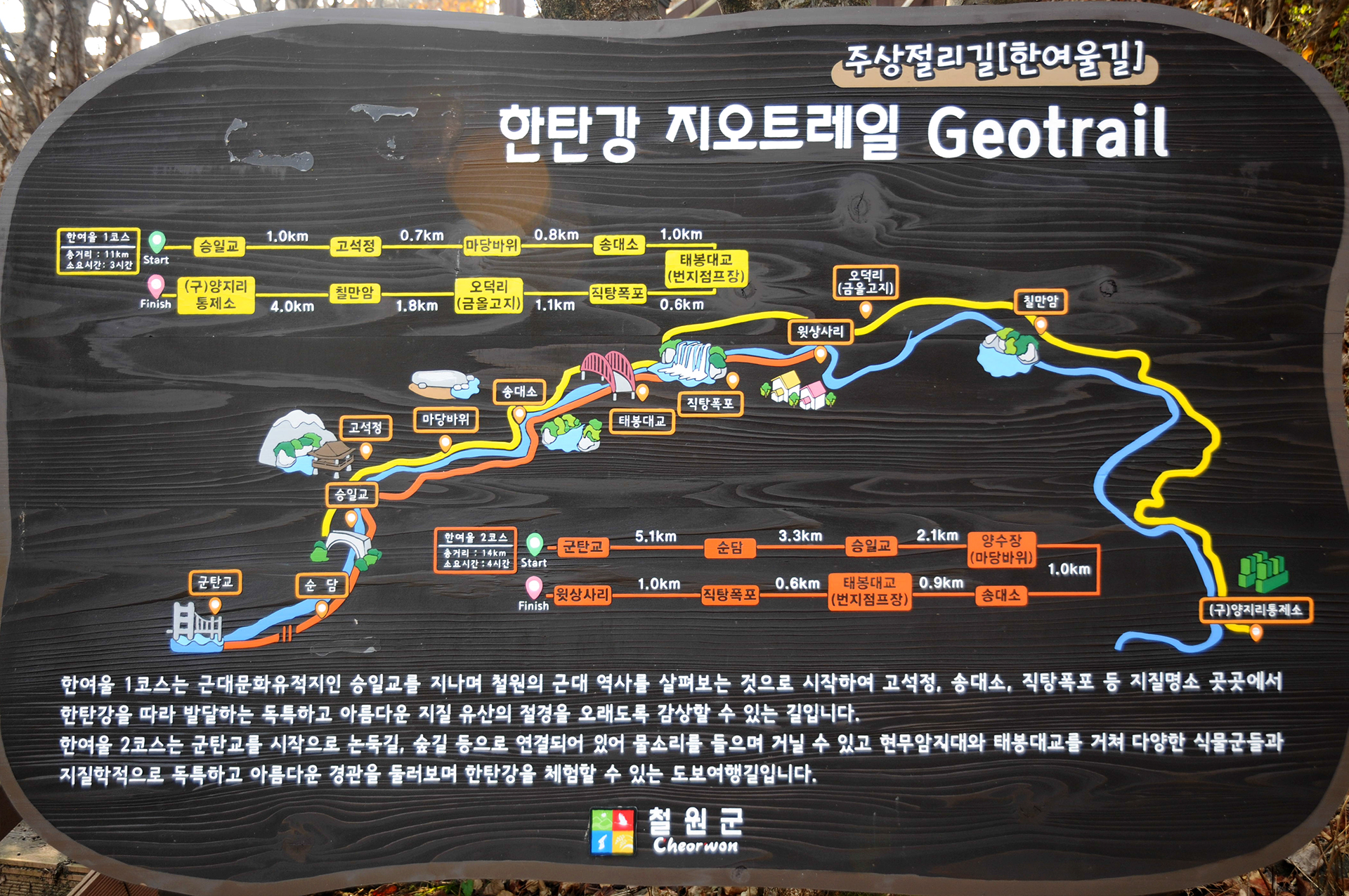 * 코스 : 태봉대교 - 송대소(은하수교) - 승일교 - 고석정 - 순담