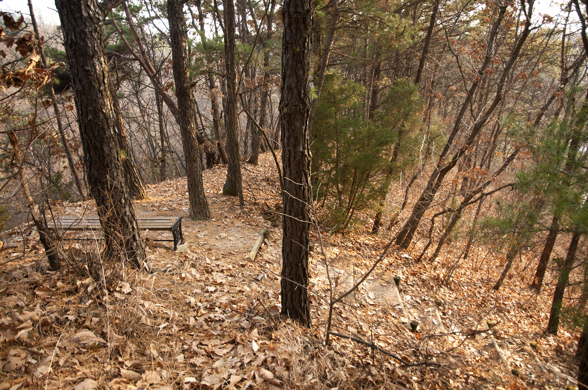전망대에서 의자가 있는 이곳까지는 정비가 되지않은 길이라 등산객들이 임의로 내놓은 길인것 같았다.