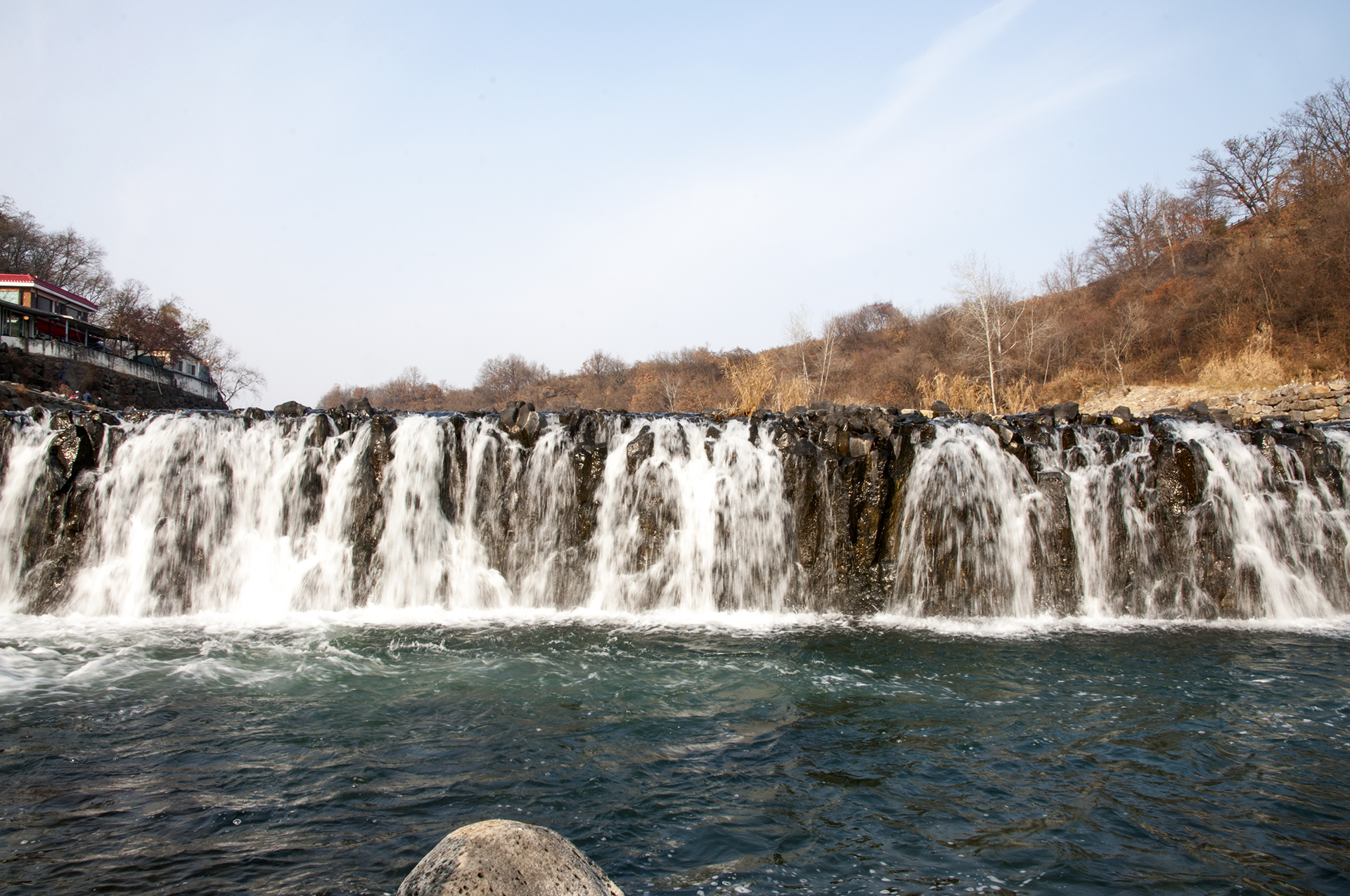 직탕폭포는 다른 폭포들과는 달리 하천면을 따라 넓고 평평하게 펼쳐져 있는 모습을 하고 있다.