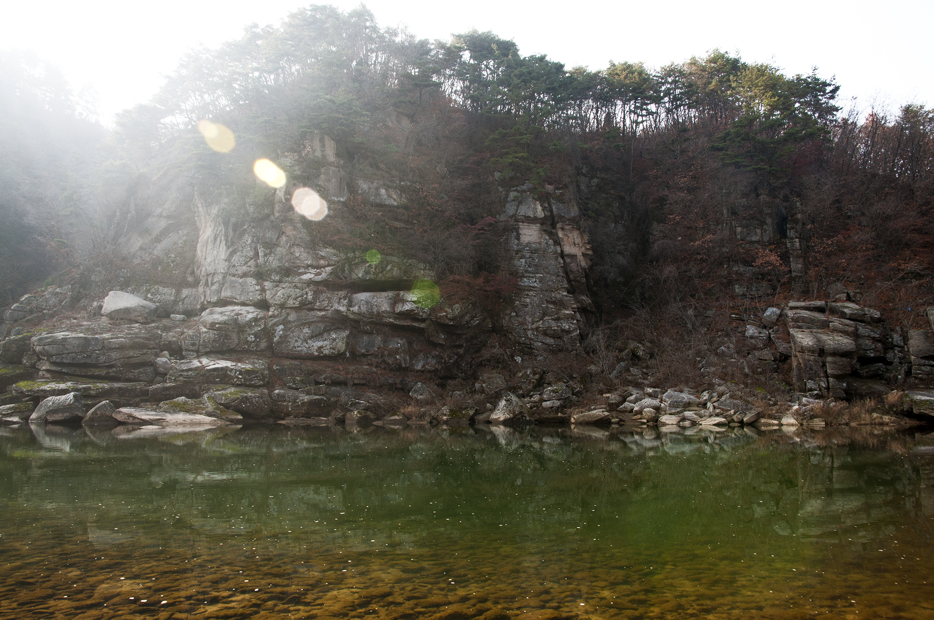 경치가 아름다워 순담계곡과 함께 철원9경중 하나로 꼽히는 고석정의 모습, 심한 미세먼지가 참 야속한 하루다.