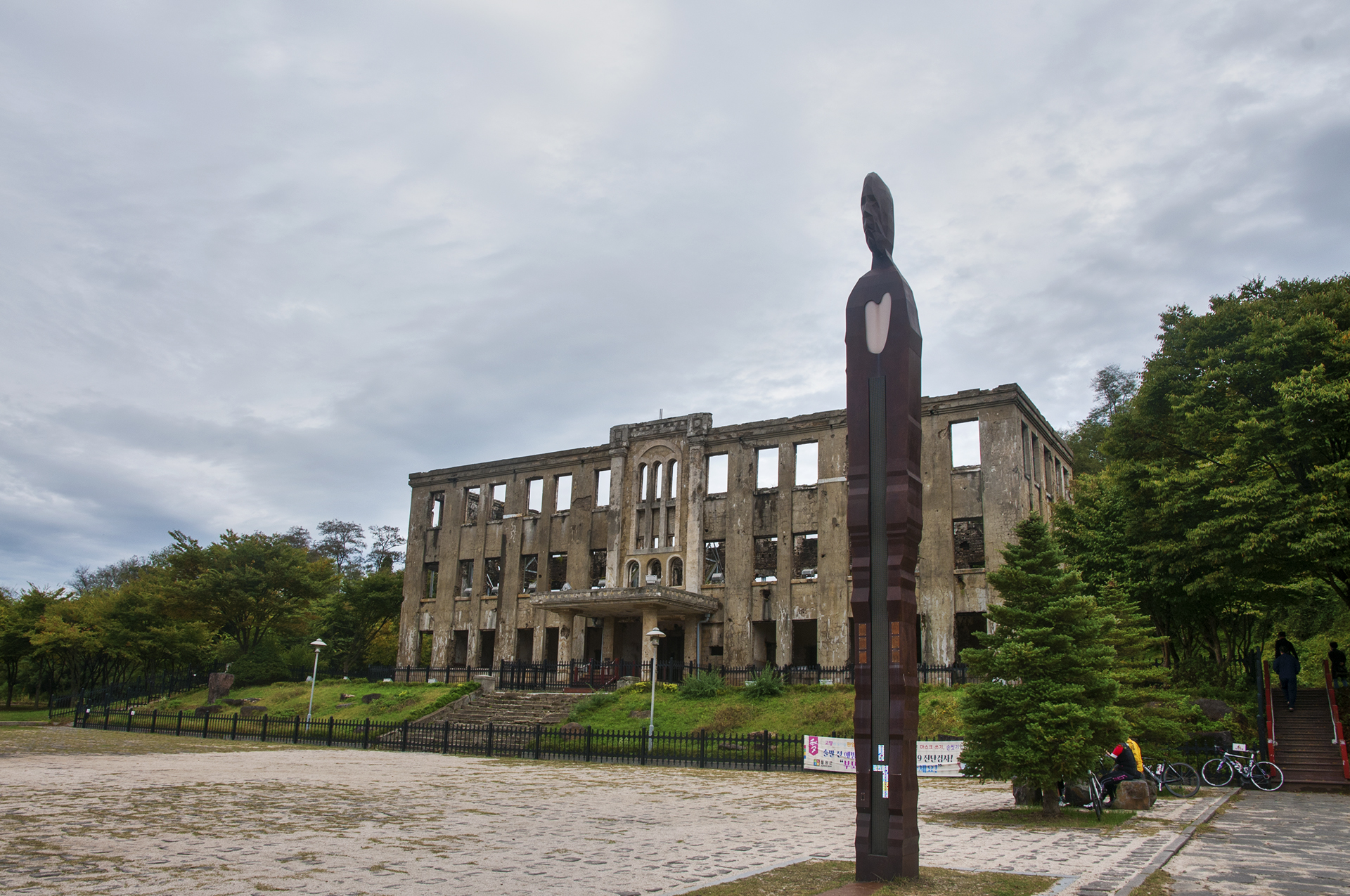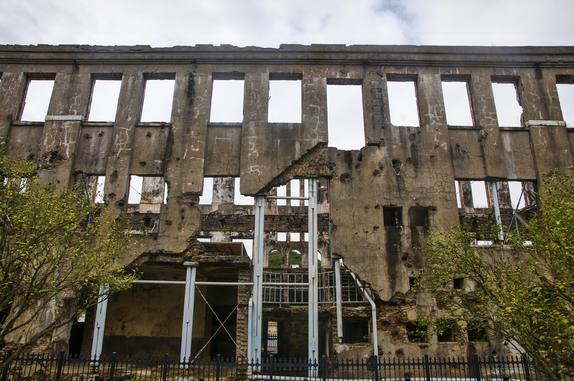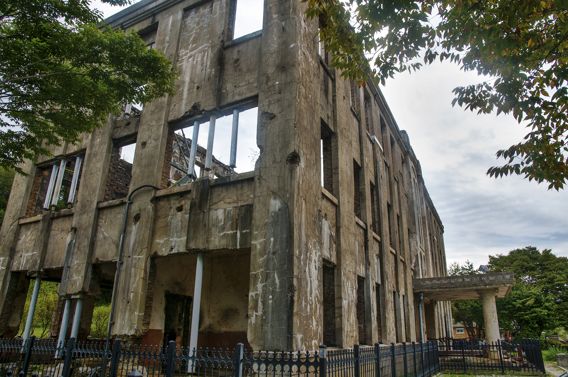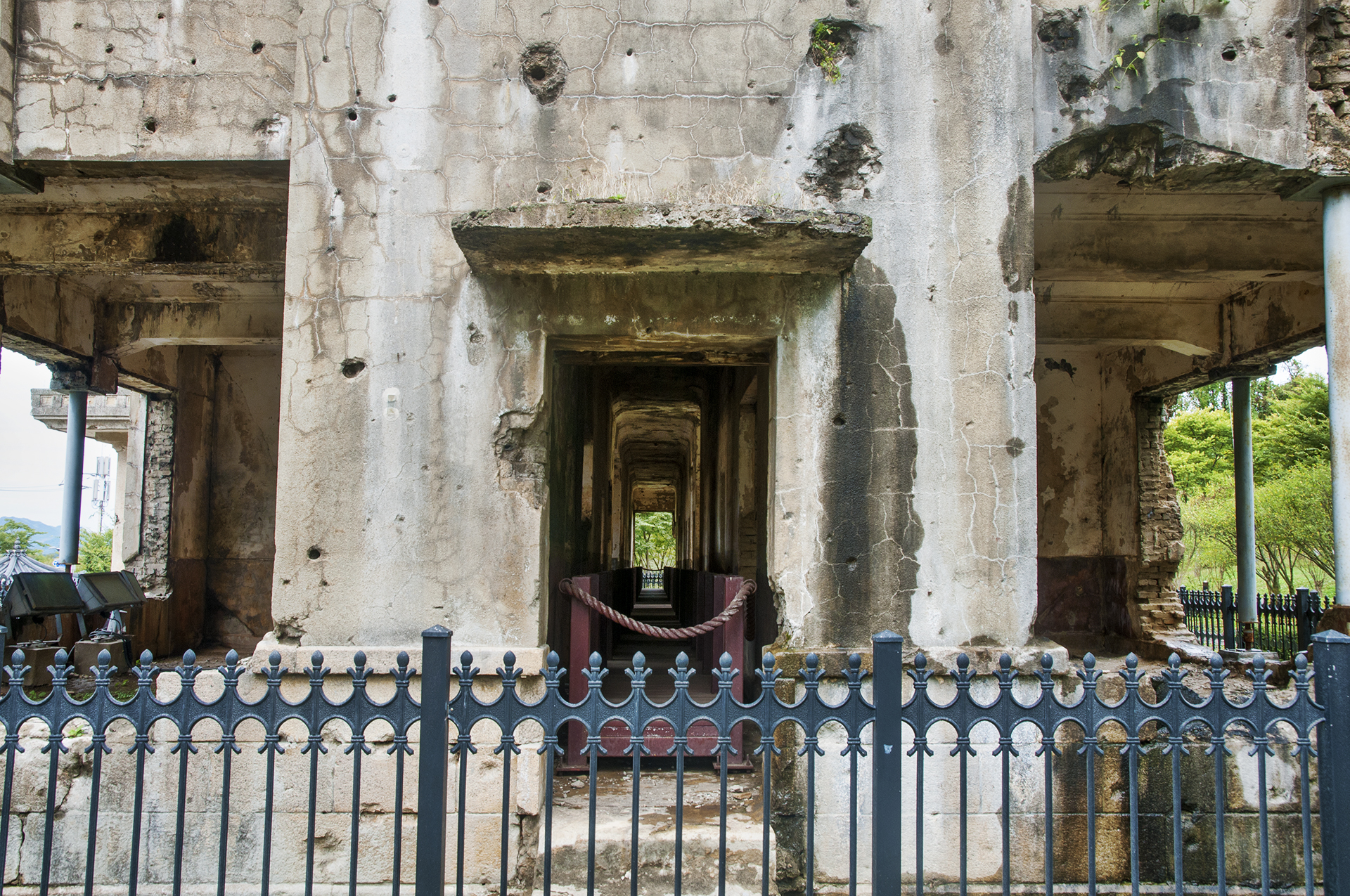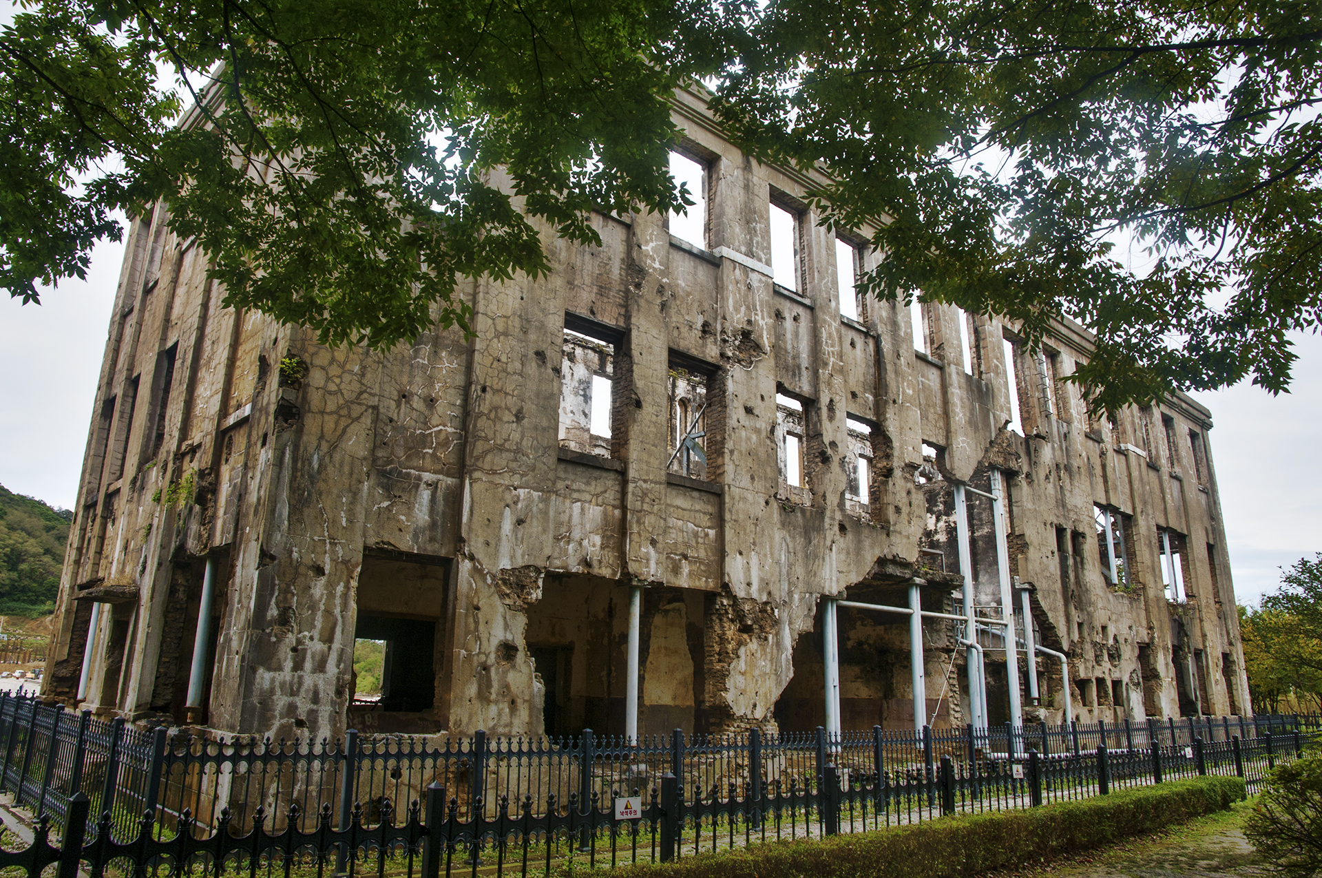 금방이라도 무너져 내릴듯한 건물은 철재구조물로 받쳐두어 전쟁의 상처만큼이나 힘겨워 보인다.