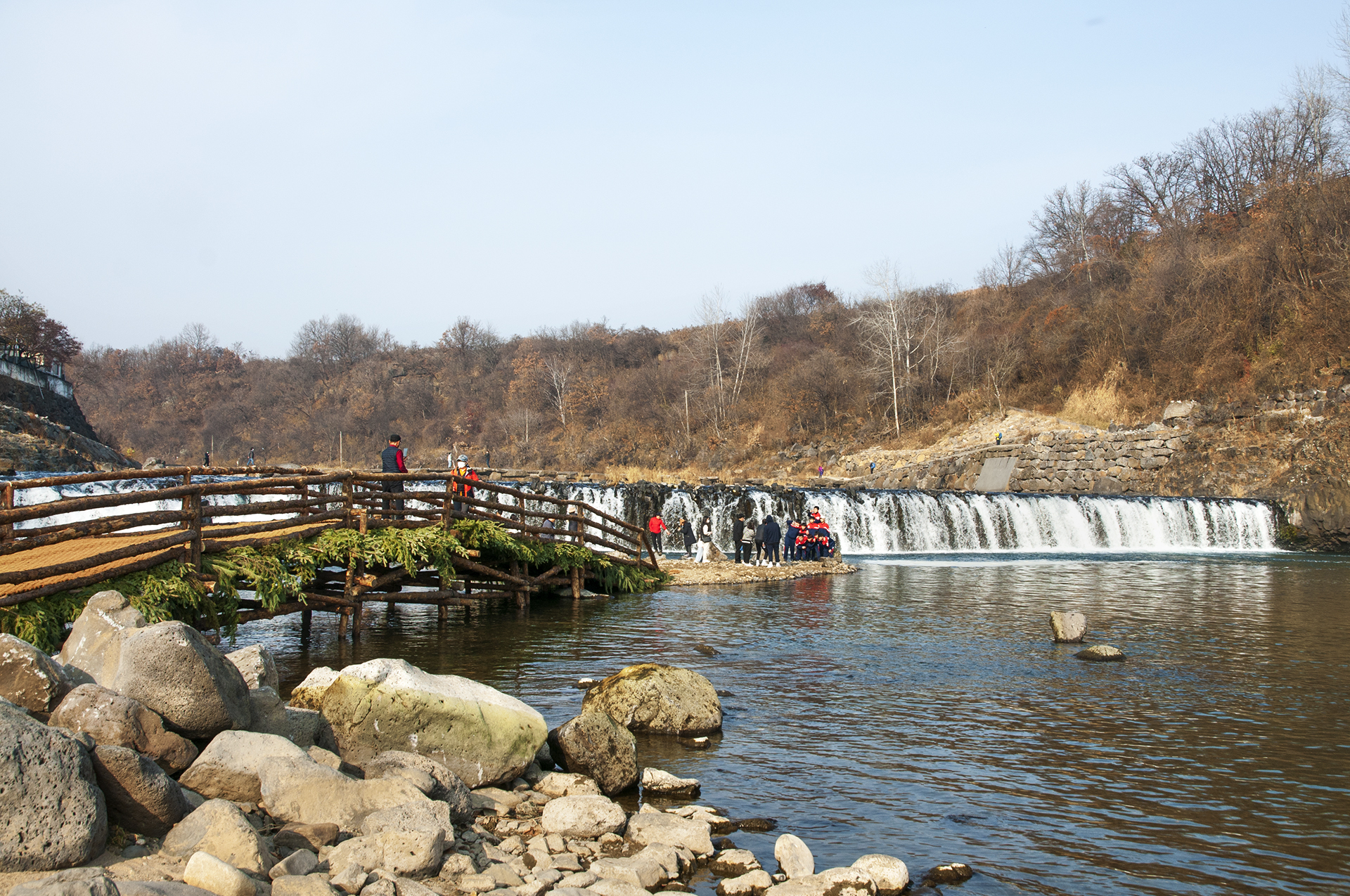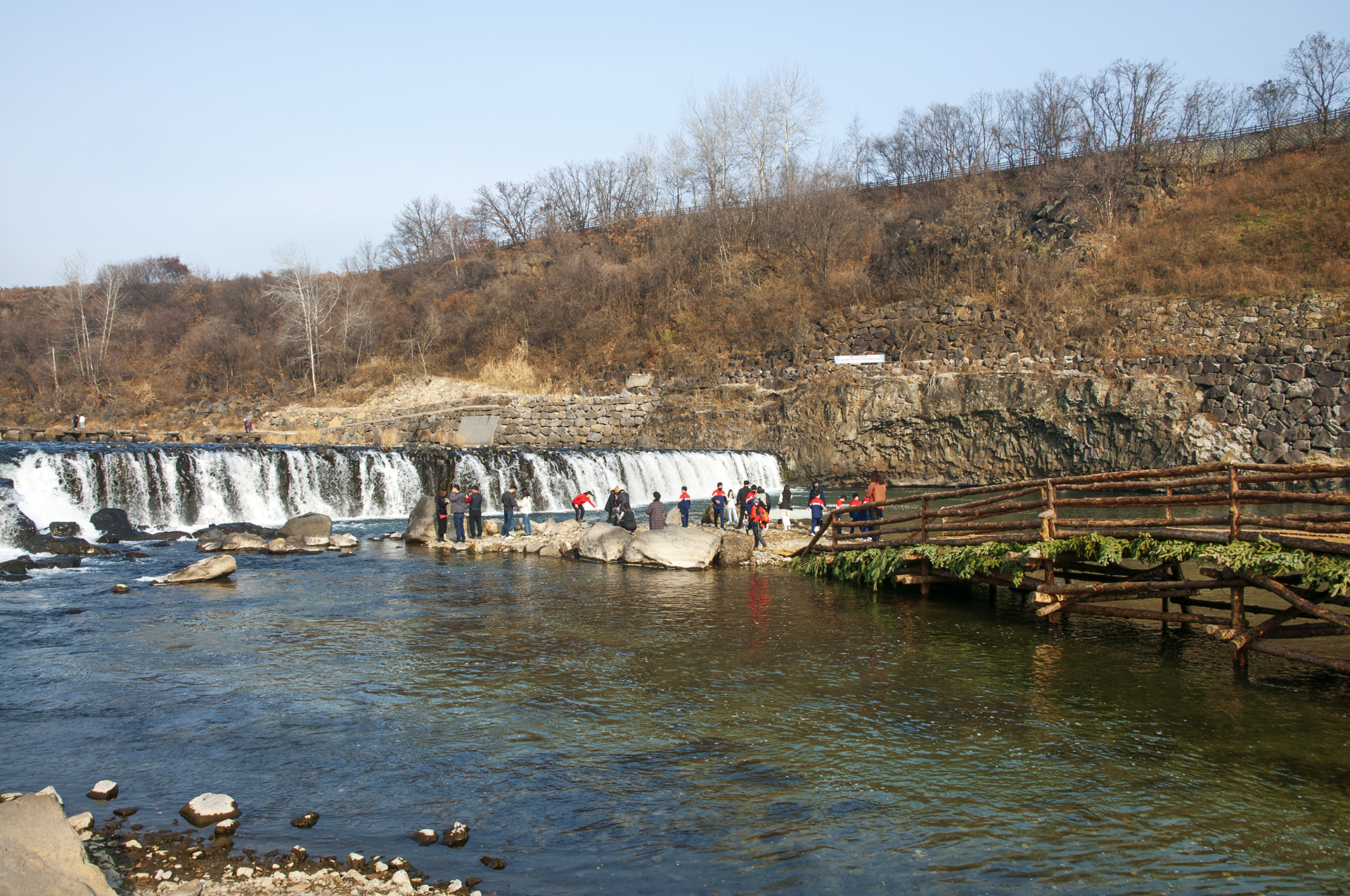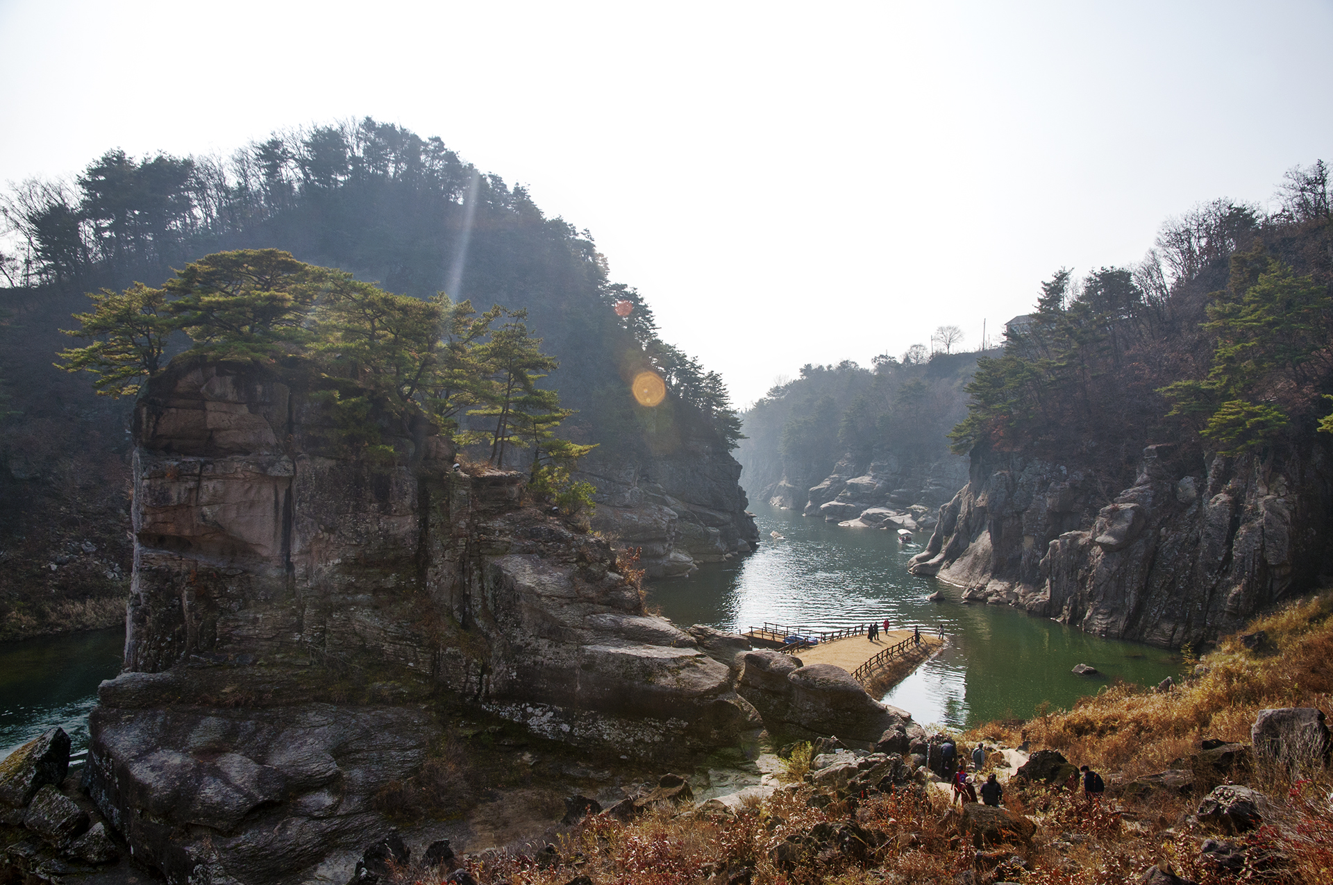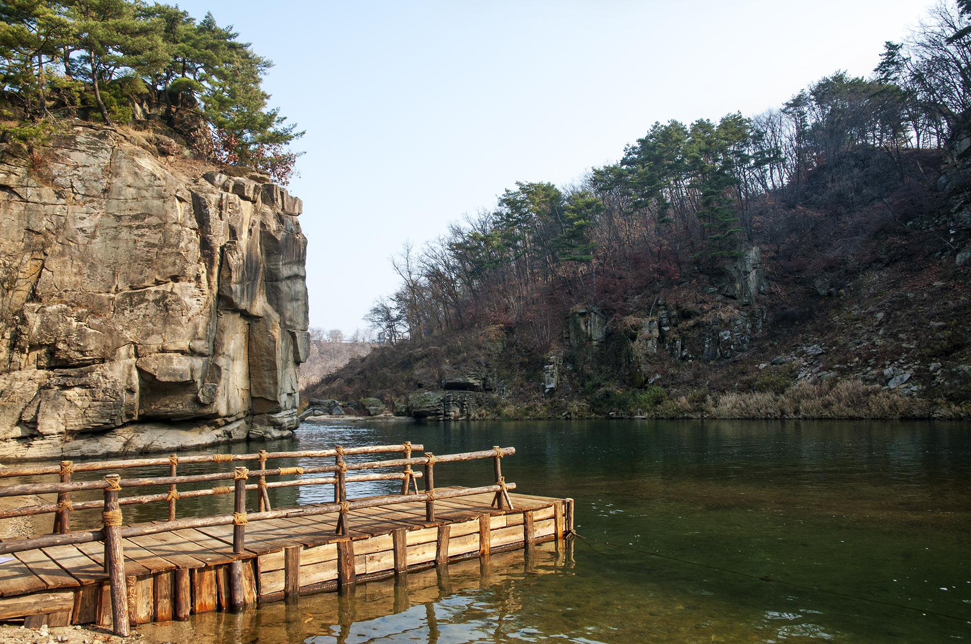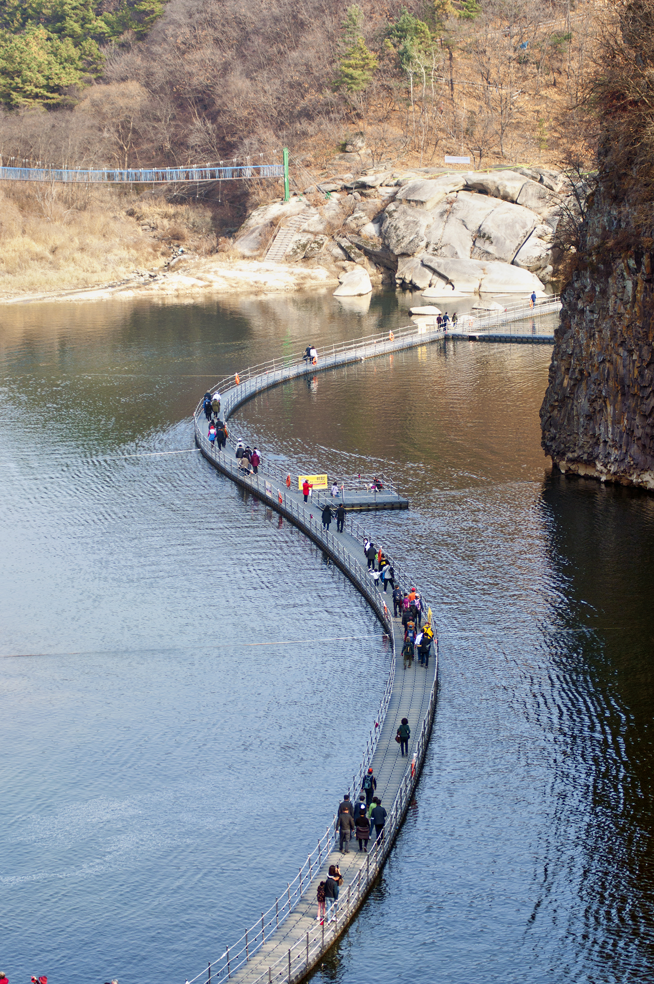 고석정 방향인 한탄강의 모습, 아직 완성되지 않은 물윗길 부교가 보인다.