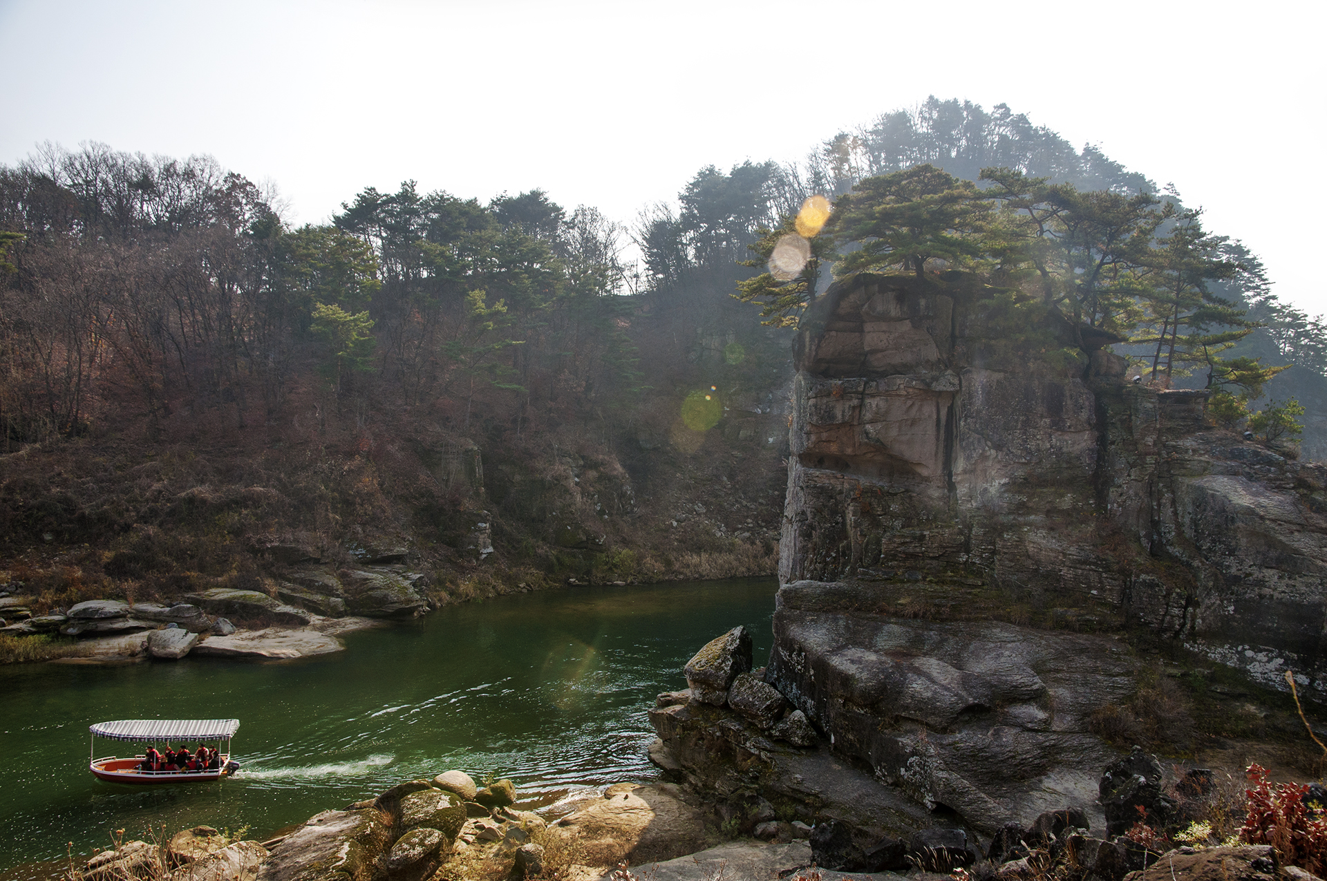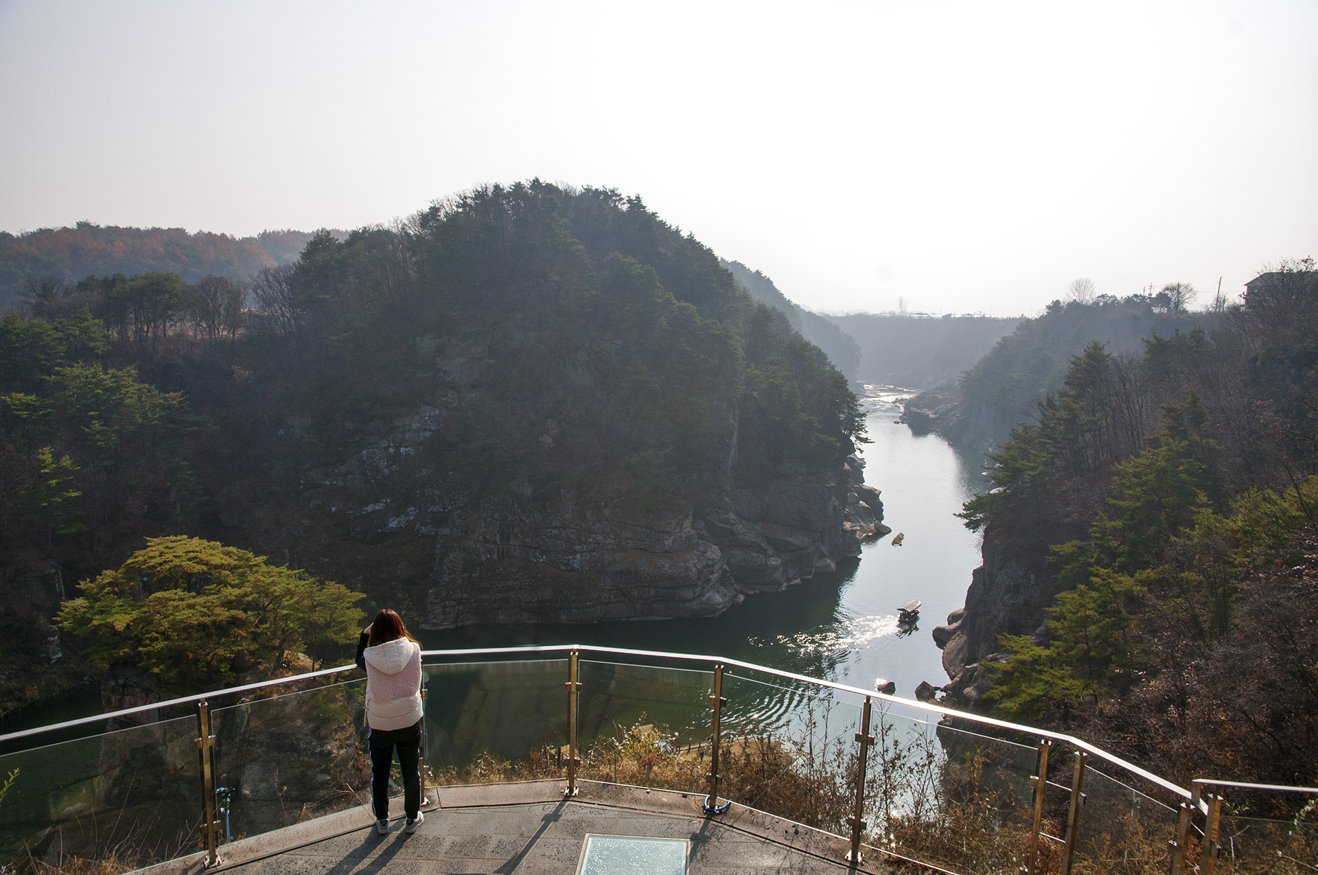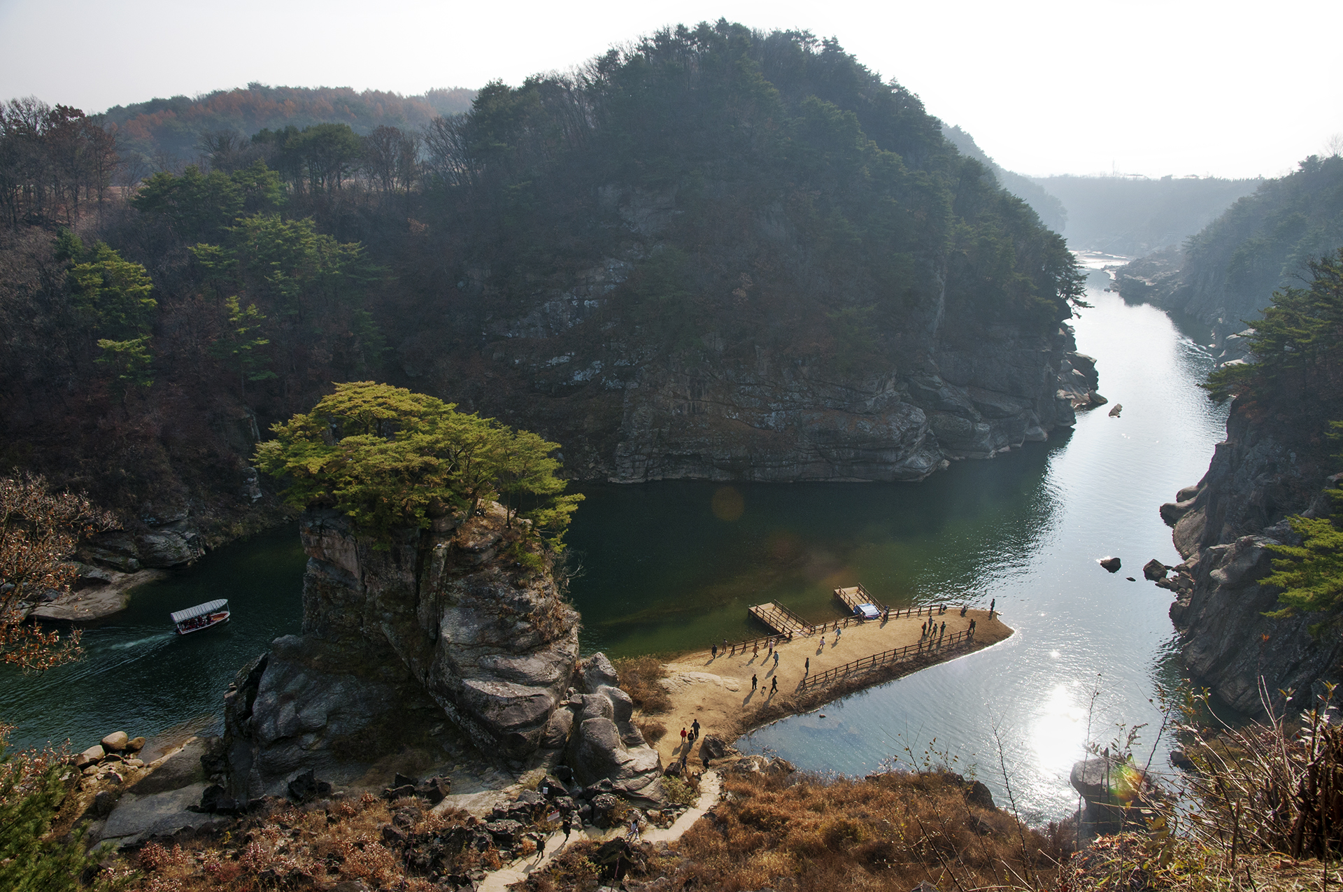 한여울길 1코스를 걷던 중 담았던 사진으로 배를 타고 왕복하는 구간이 그리 길지는 않았다.
