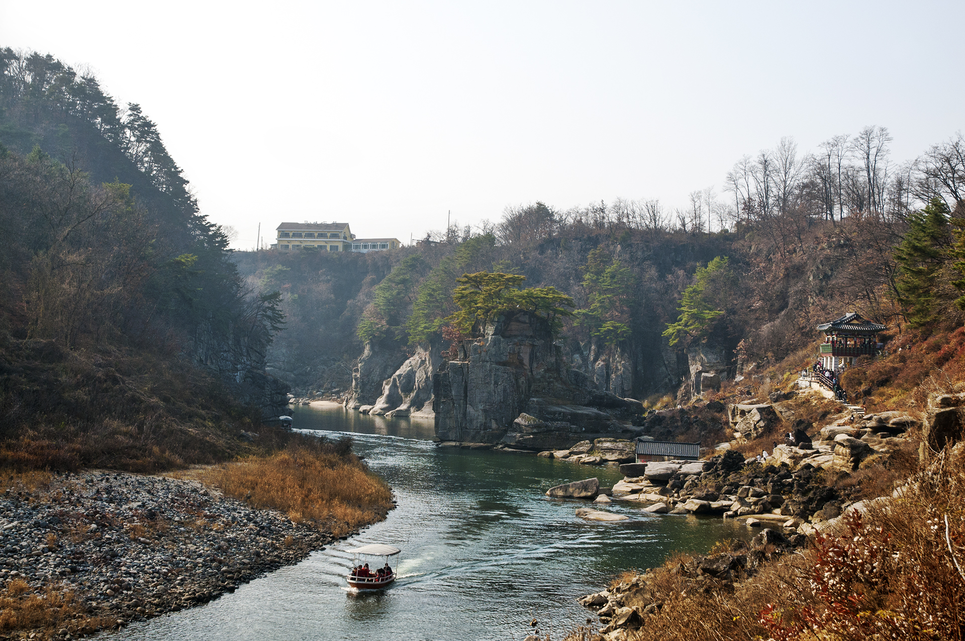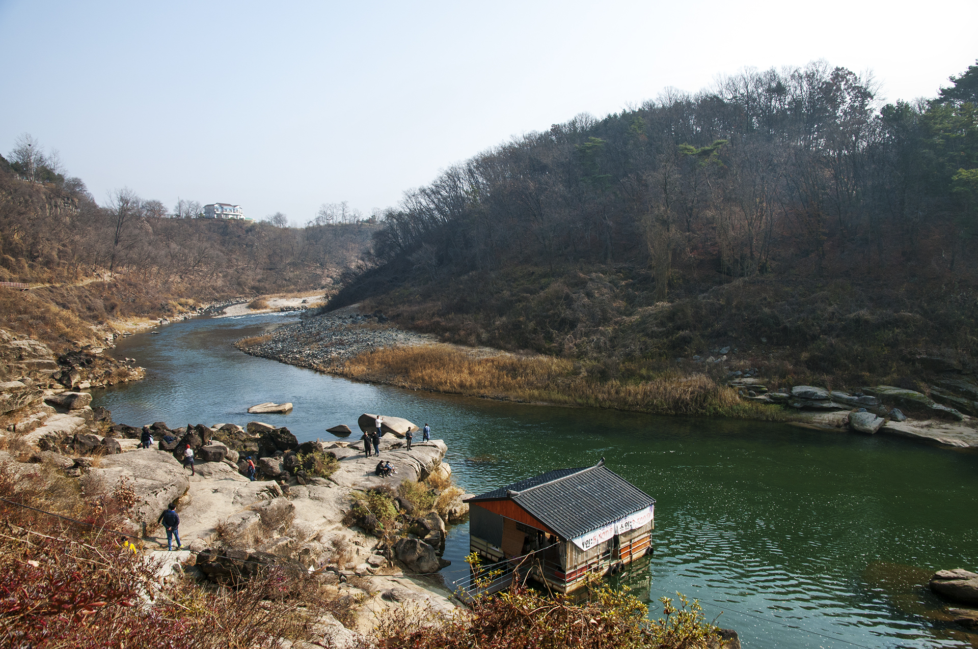 물위에 떠있는 집처럼 지어진 선착장에서 배를 타고 한탄강 직접 돌아볼수도 있다.
