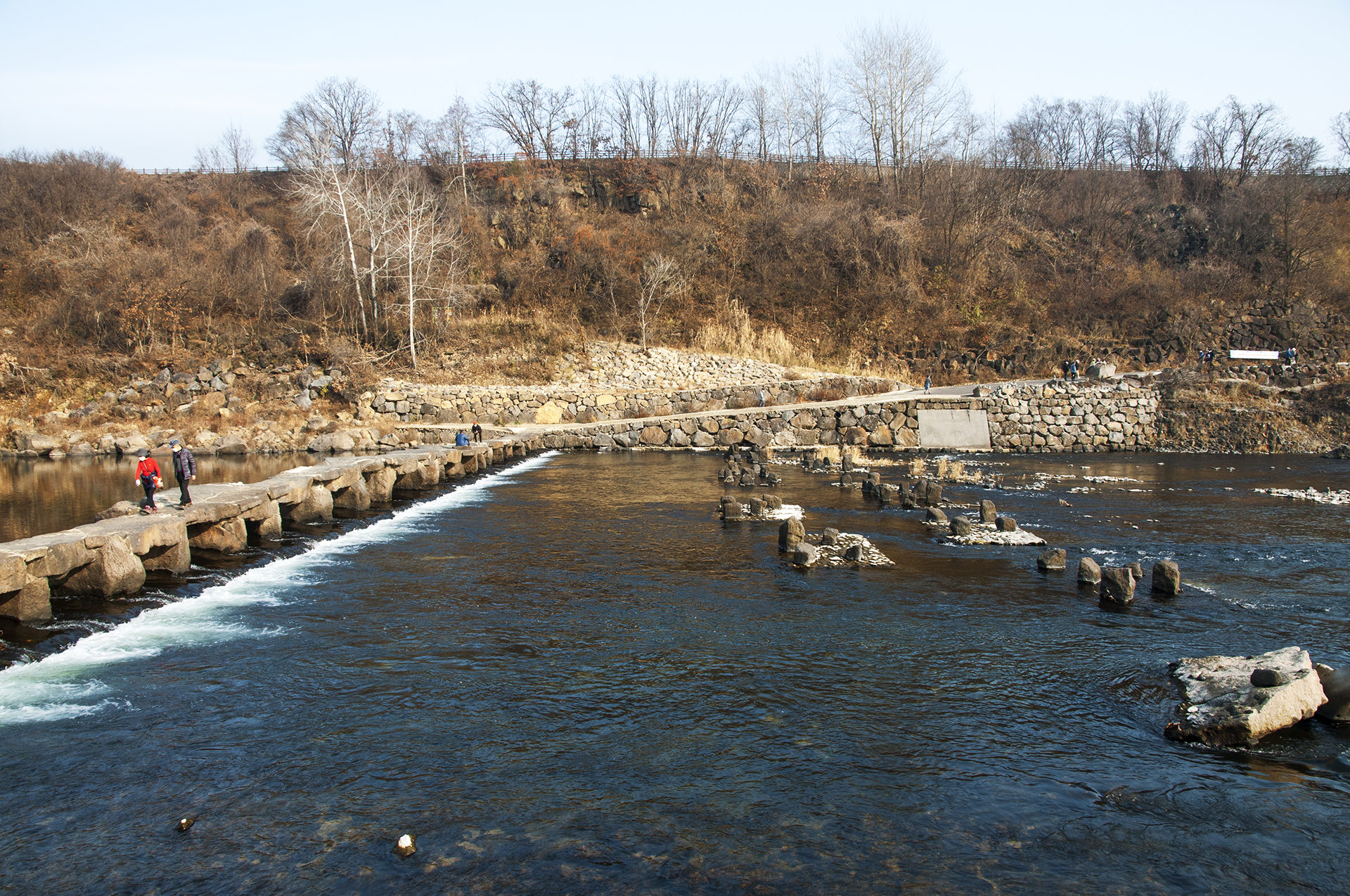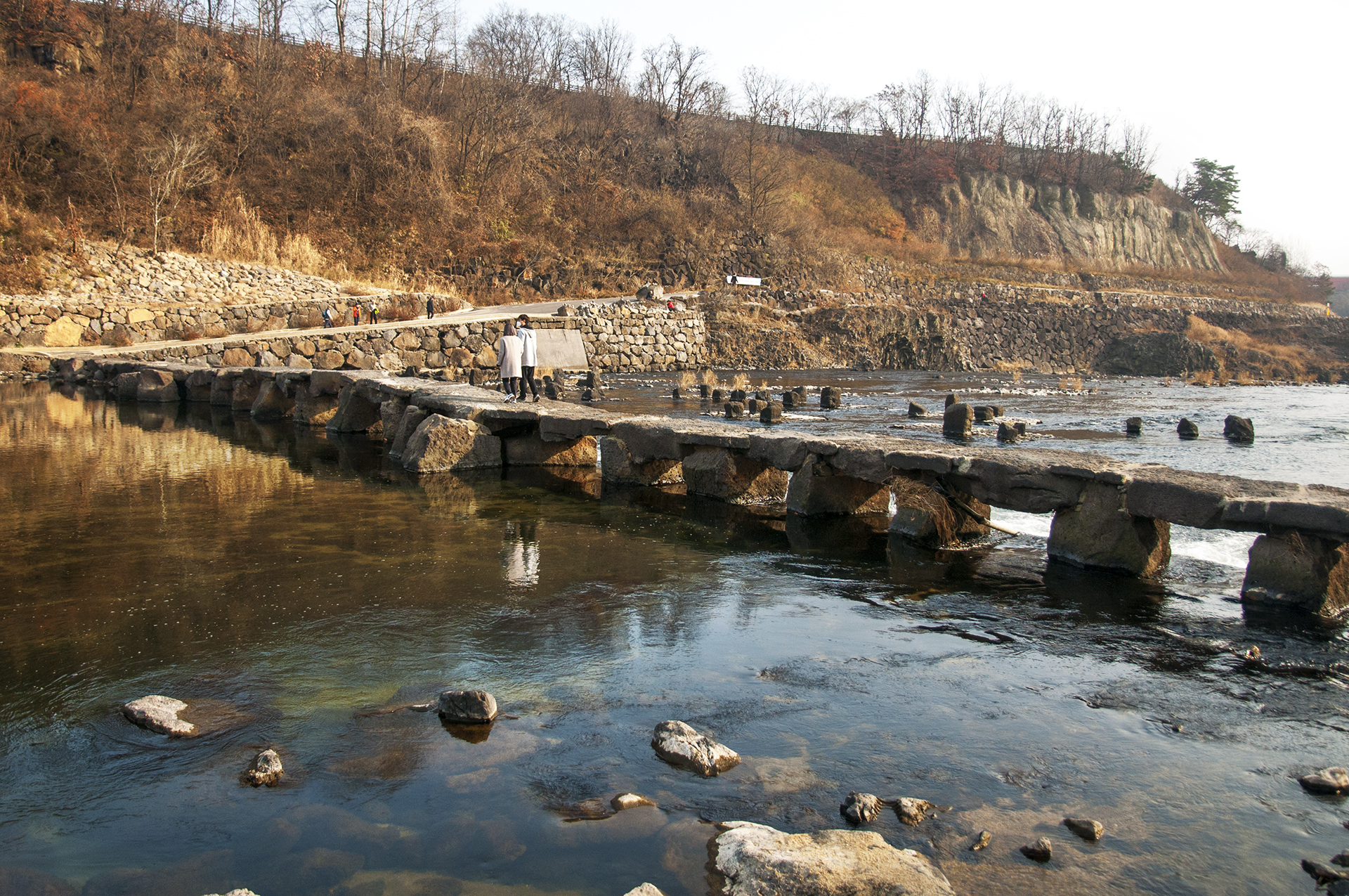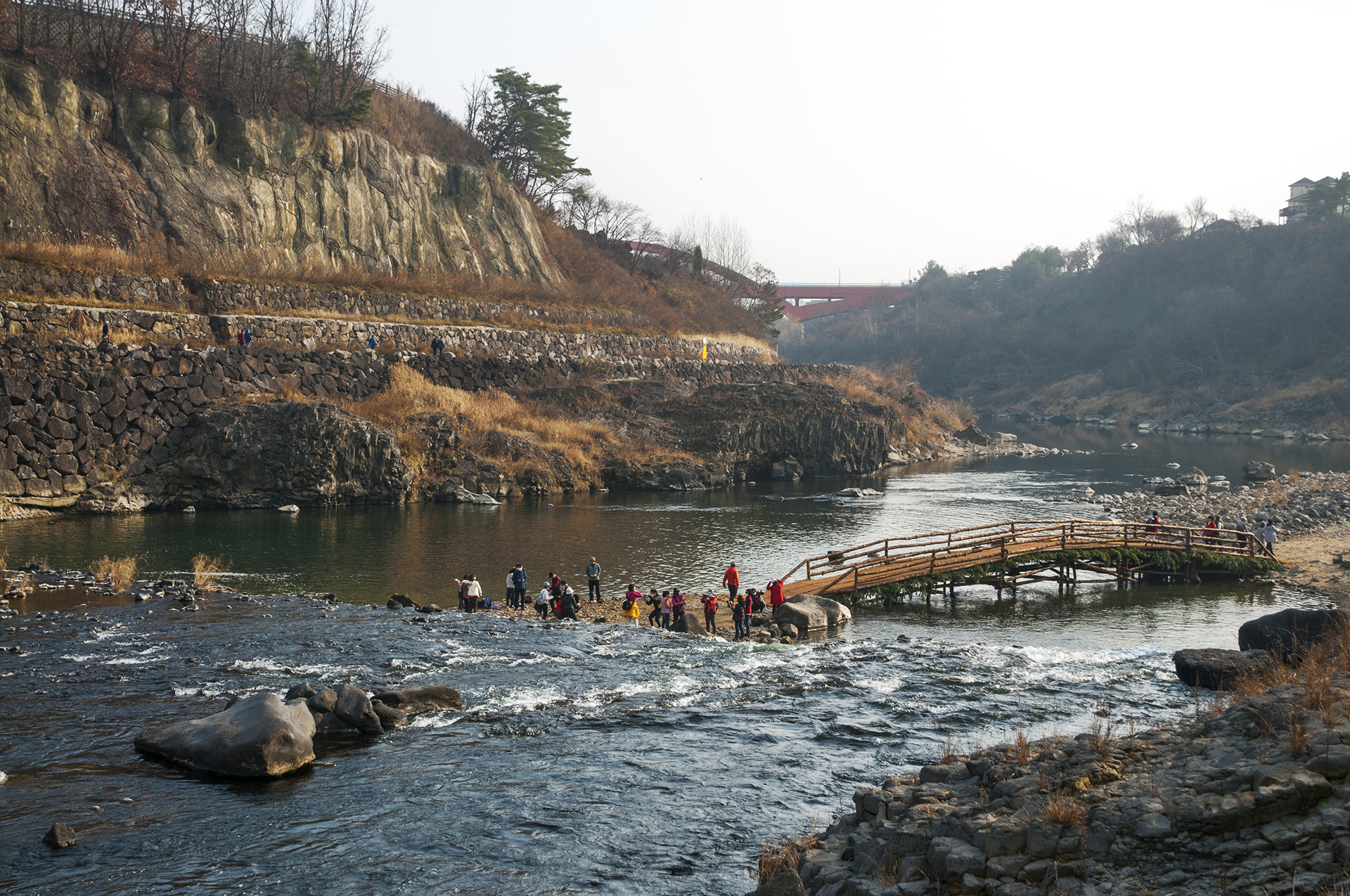 현무암 돌다리를 이용해 건너편으로 갈수 있다.