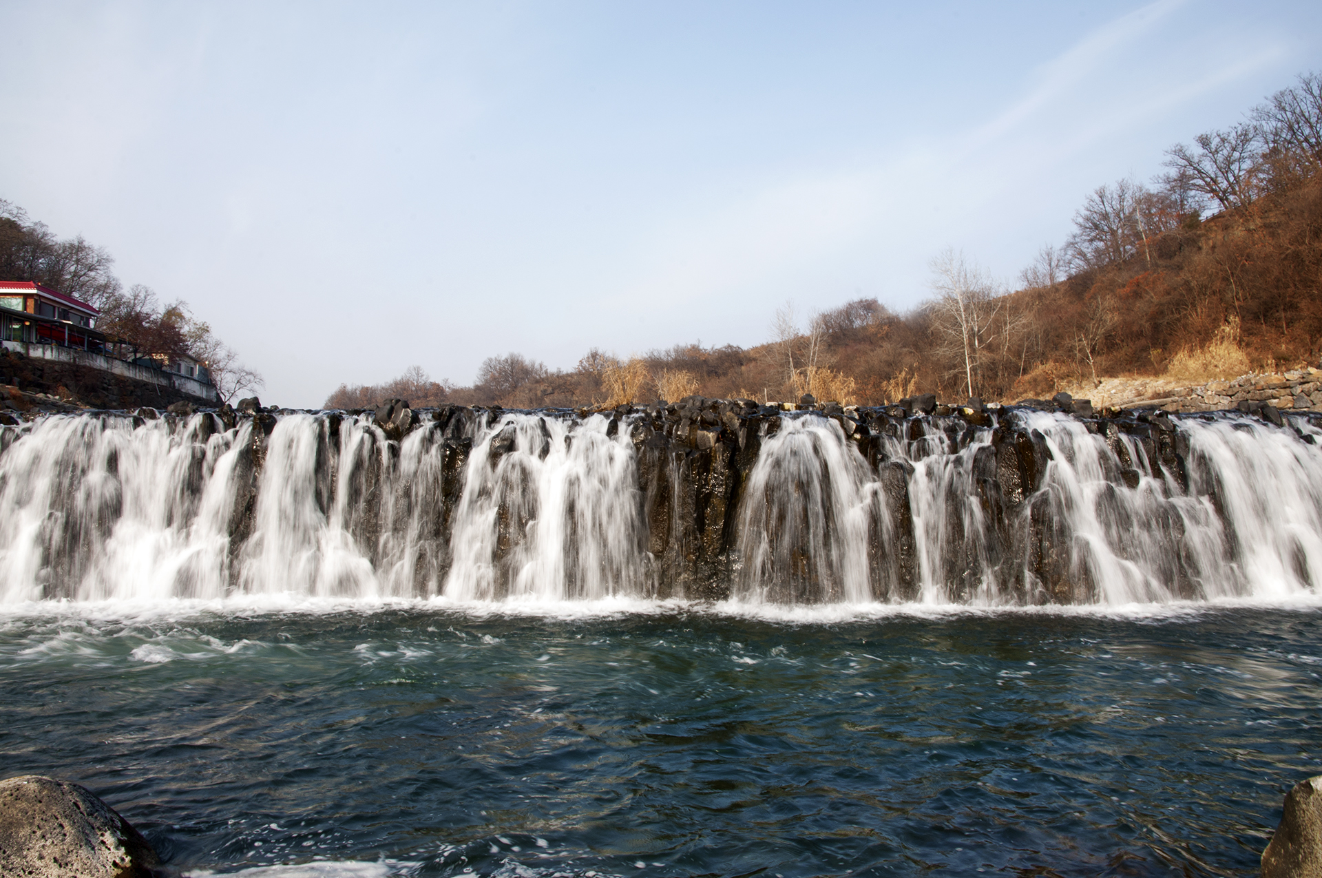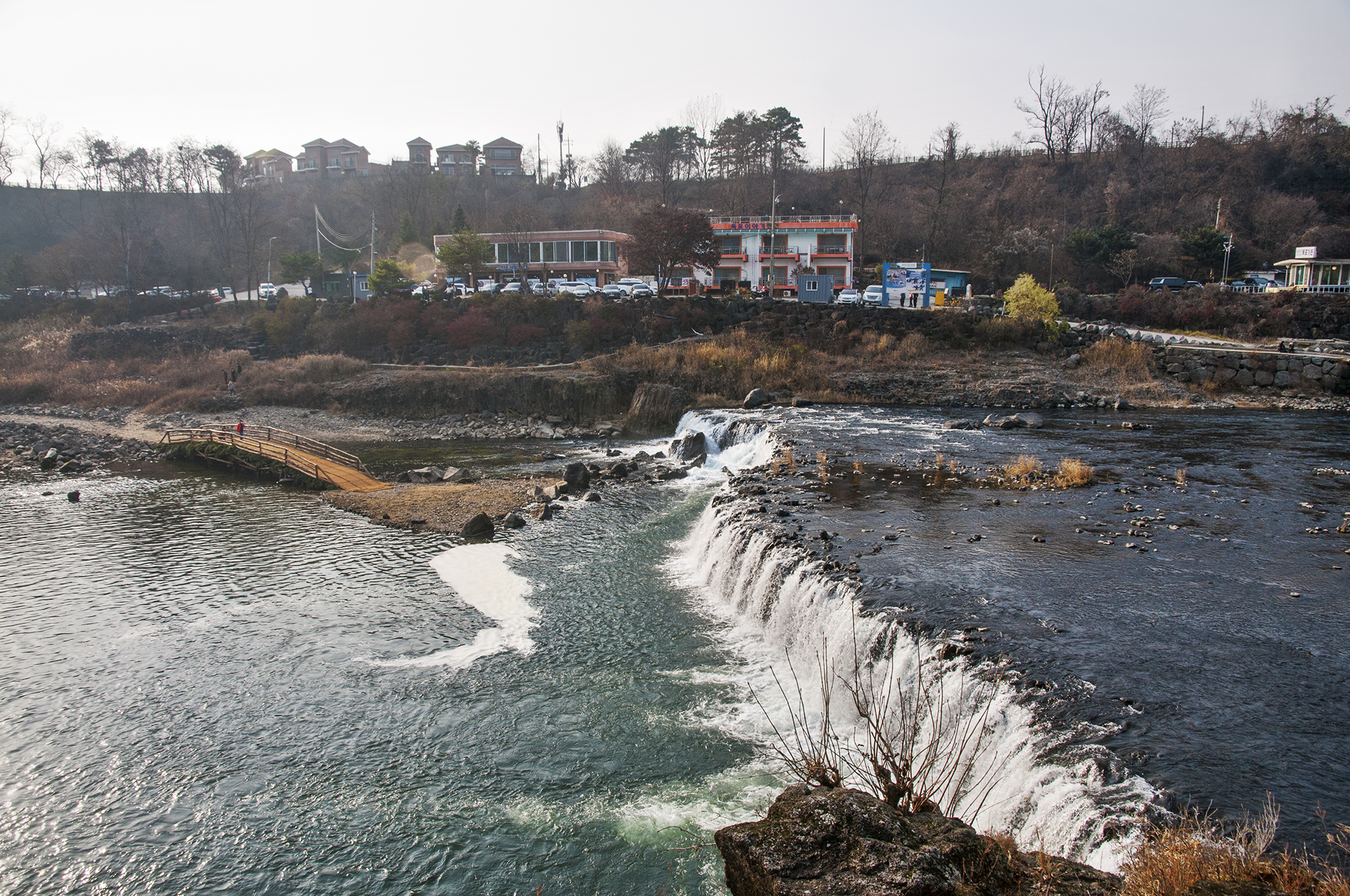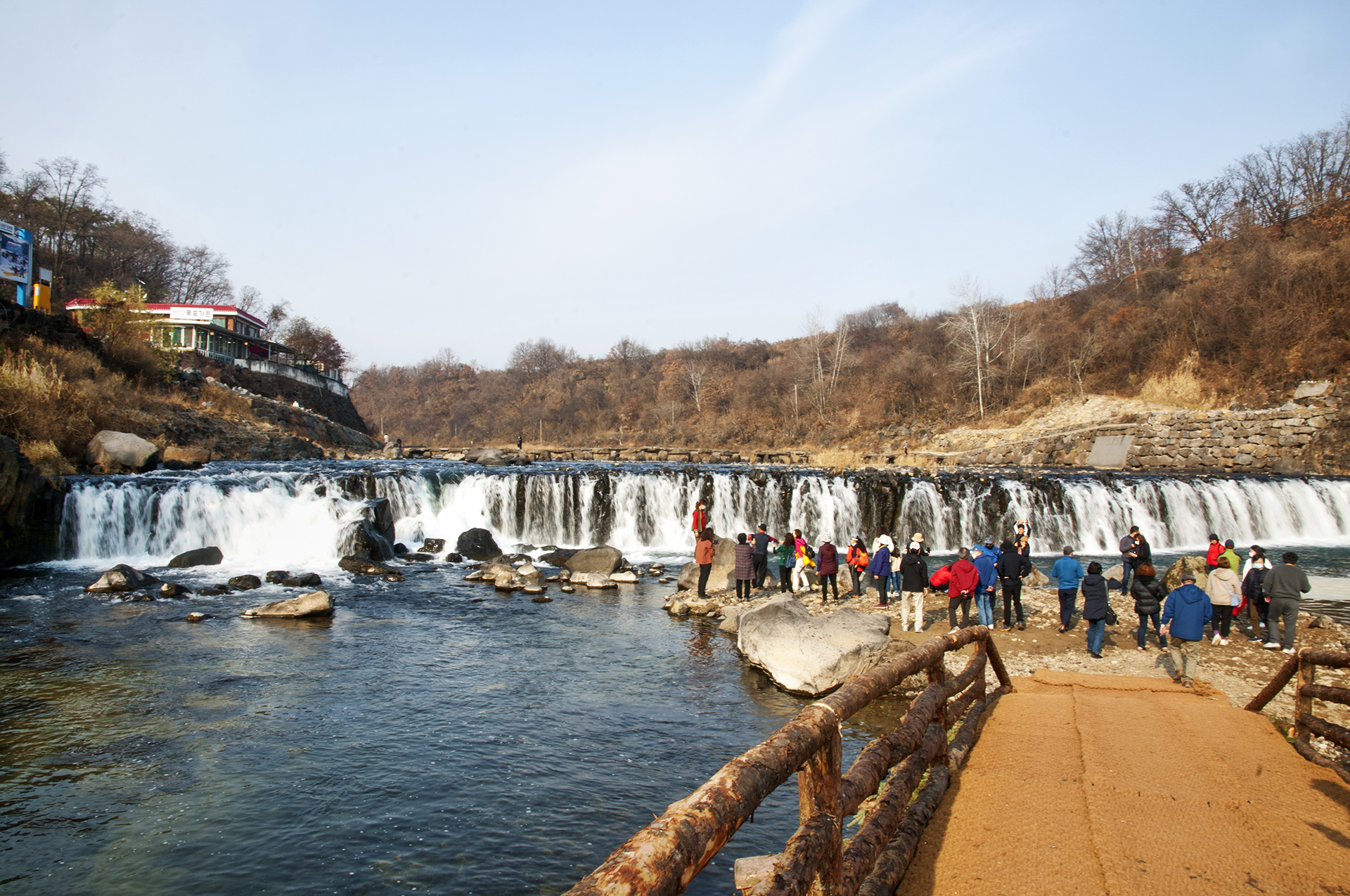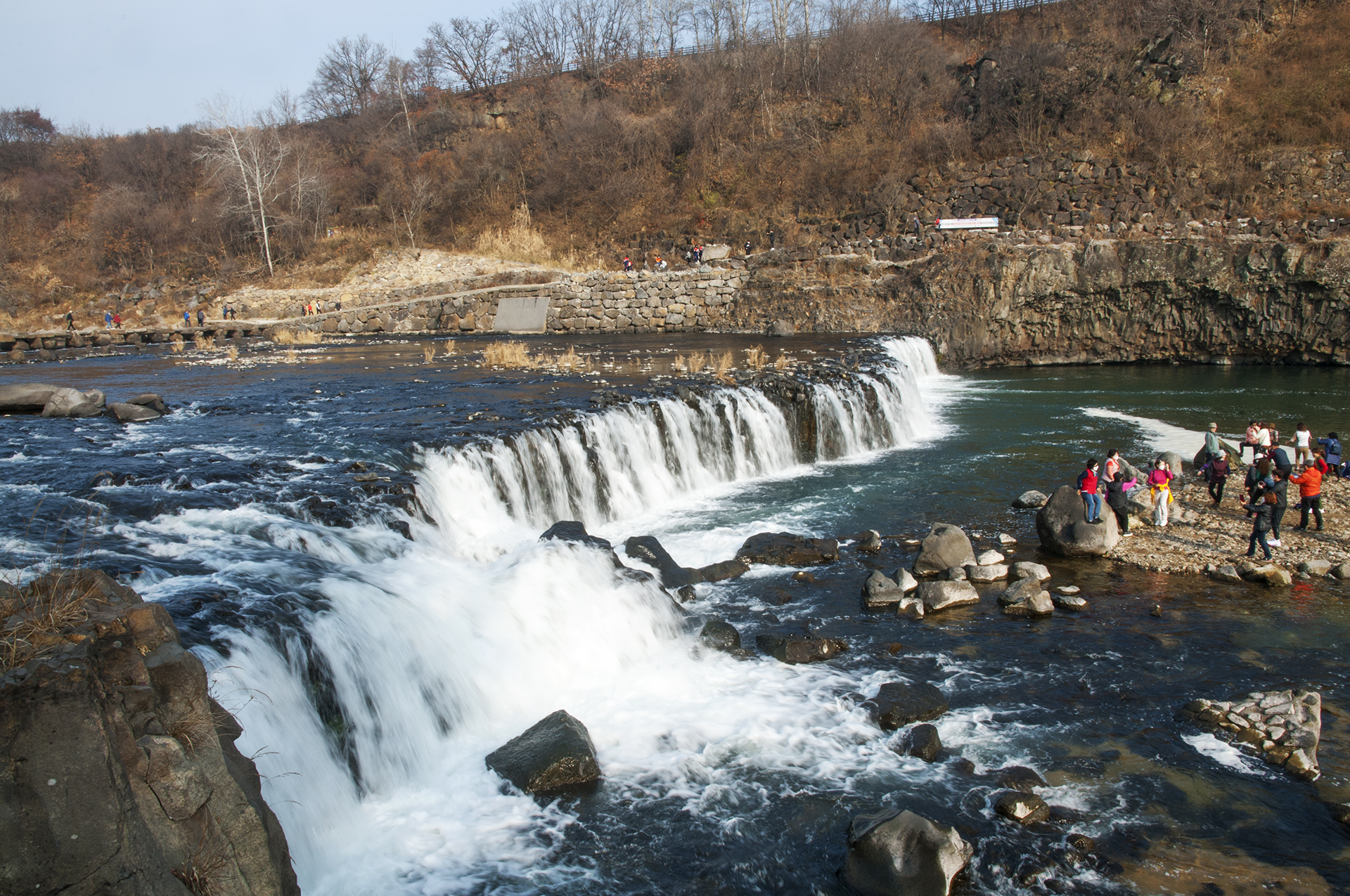 높이는 약 3m에 불과하지만 너부는 약 80여m에 이르는데, 폭포의 모든 면에서 물이 떨어지는 것을 관찰할 수 있다.