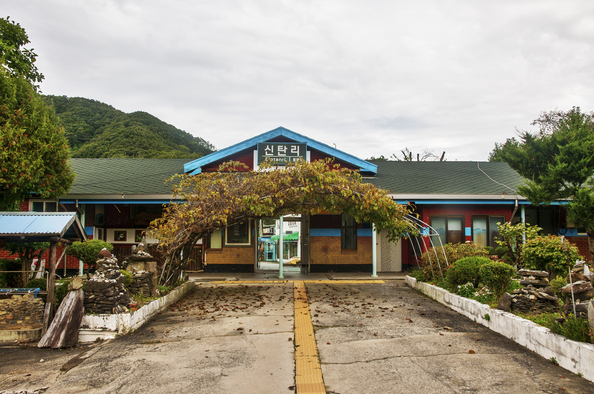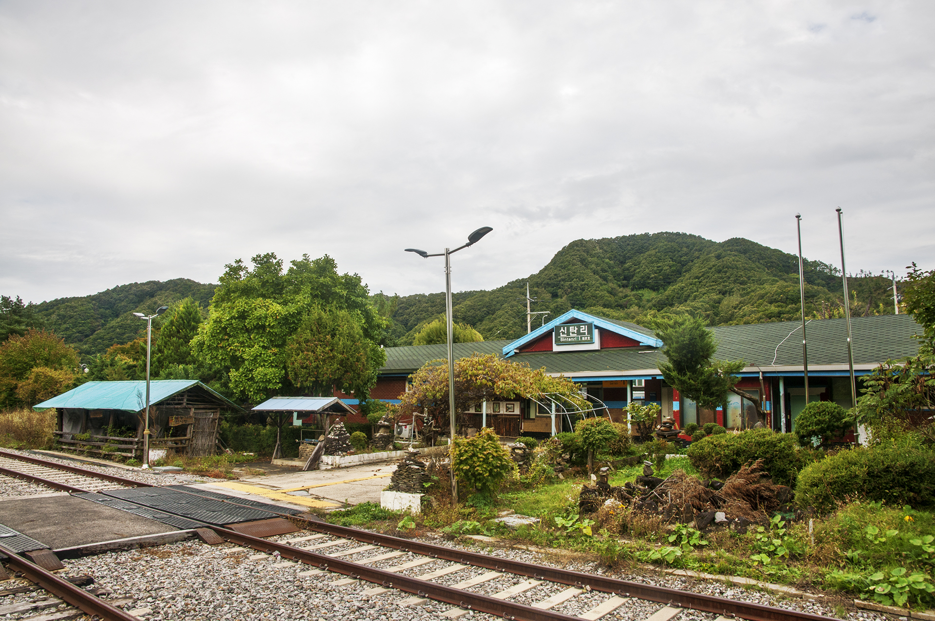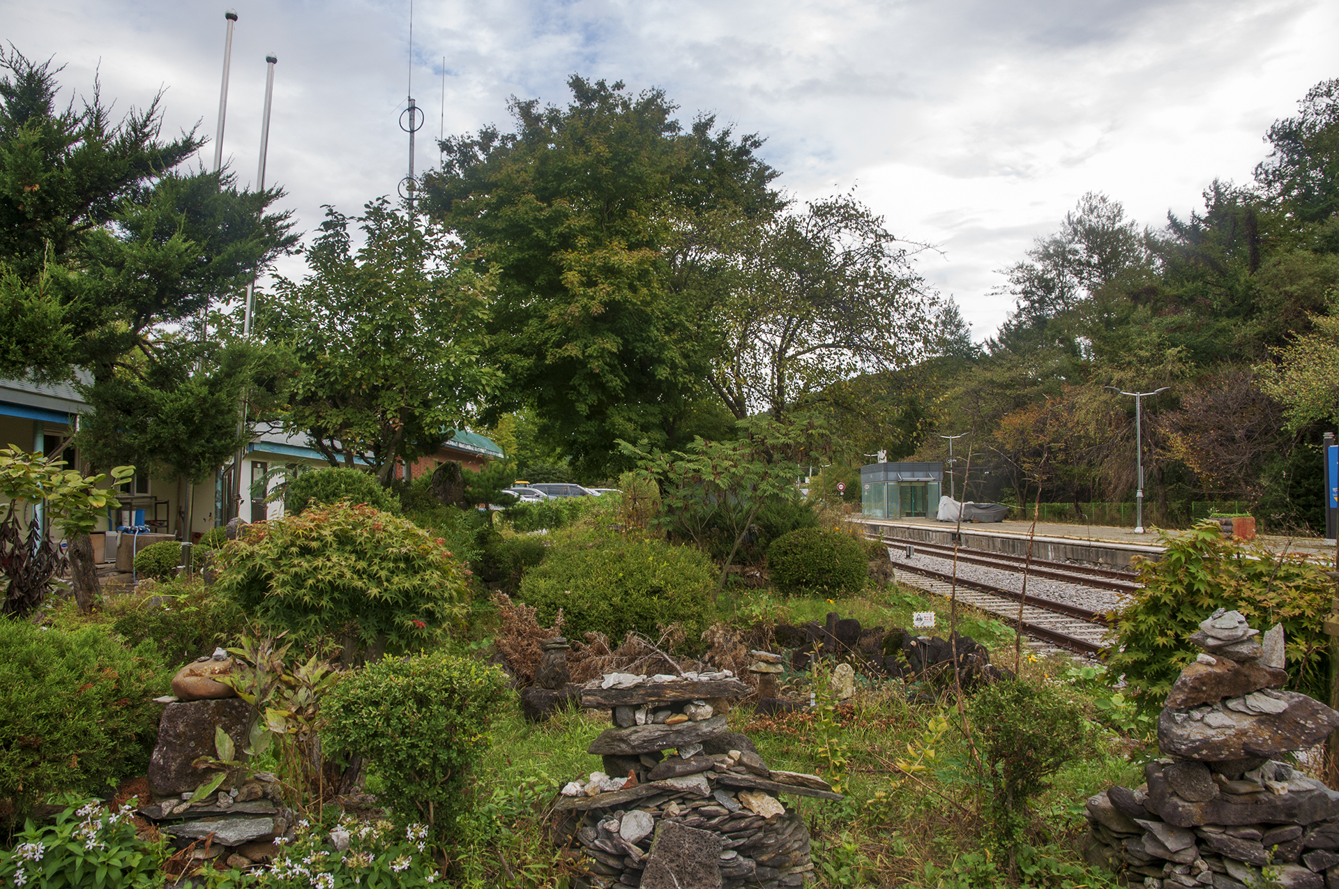 양쪽으로 여러 돌탑들과 오리솟대도 있어 폐역의 운치를 더해준다.