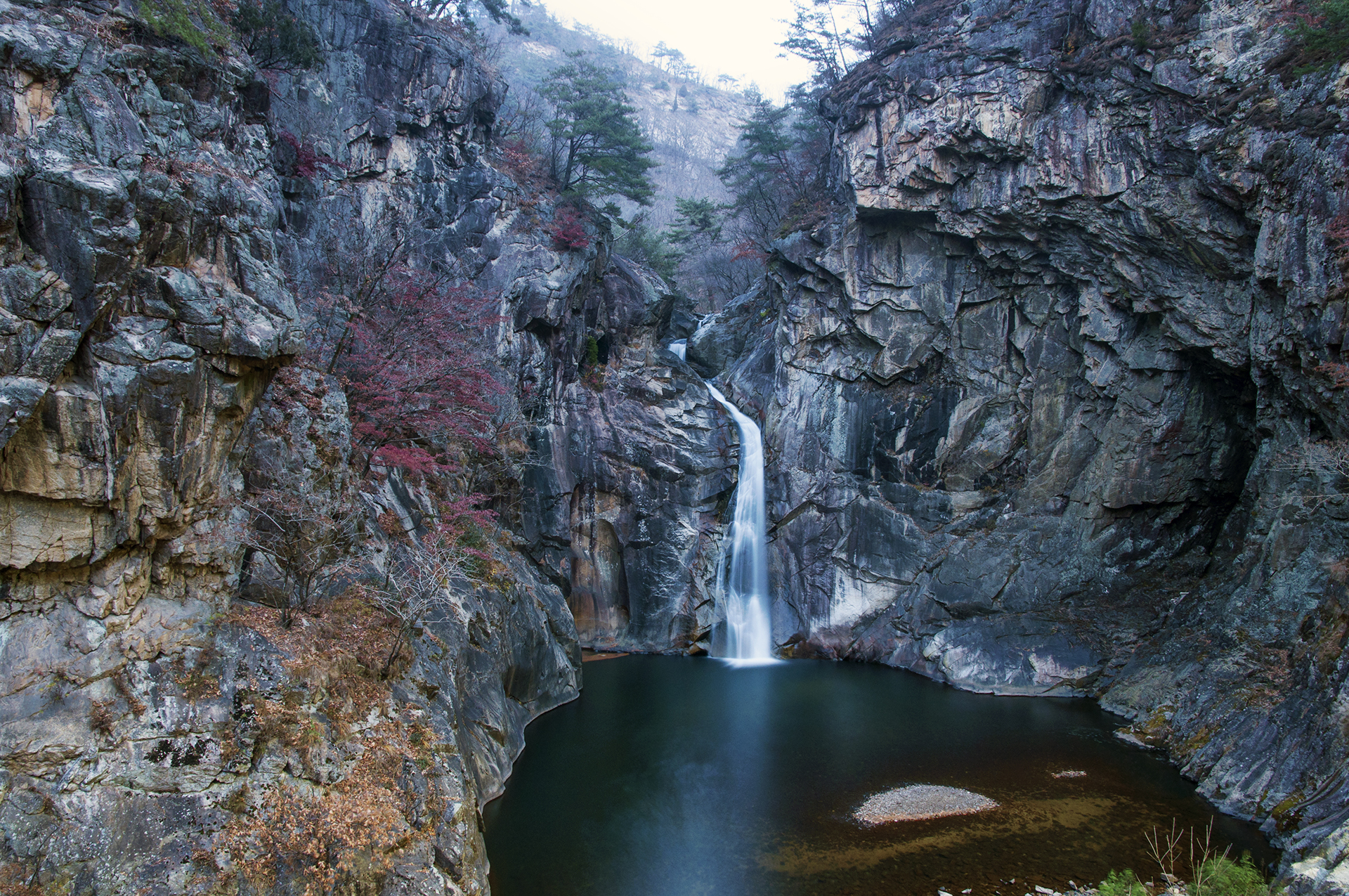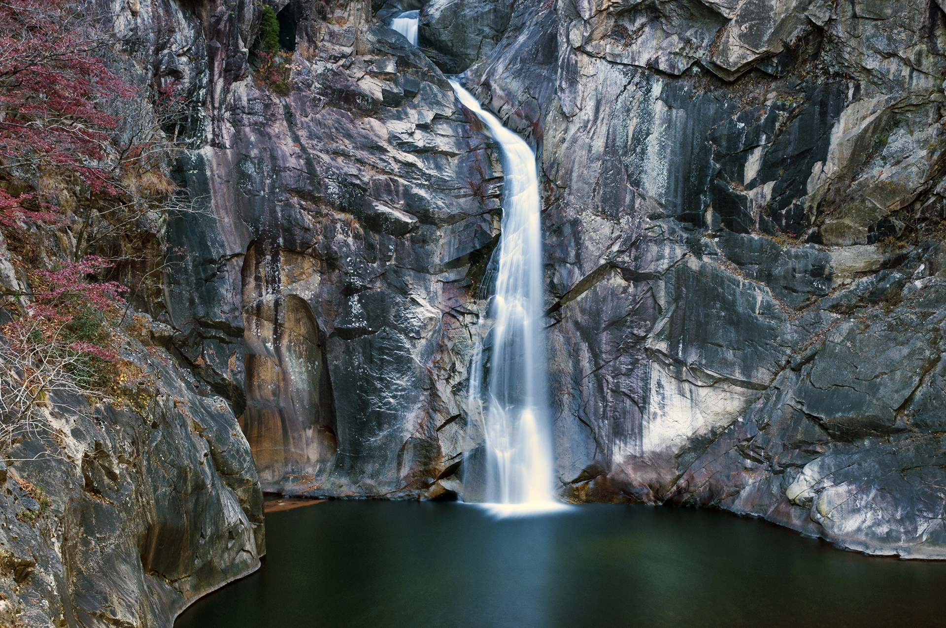 삼부연폭포는 명성산(870m) 중턱의 화강암 지대에 위치한 20m 높이의 3단 폭포로 화강암이 오랜 기간 깎여져 만들어졌다.